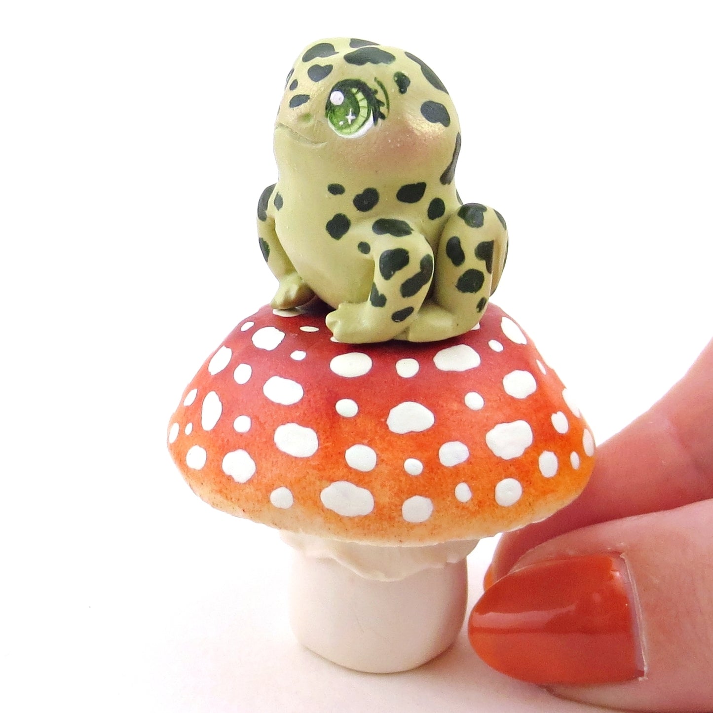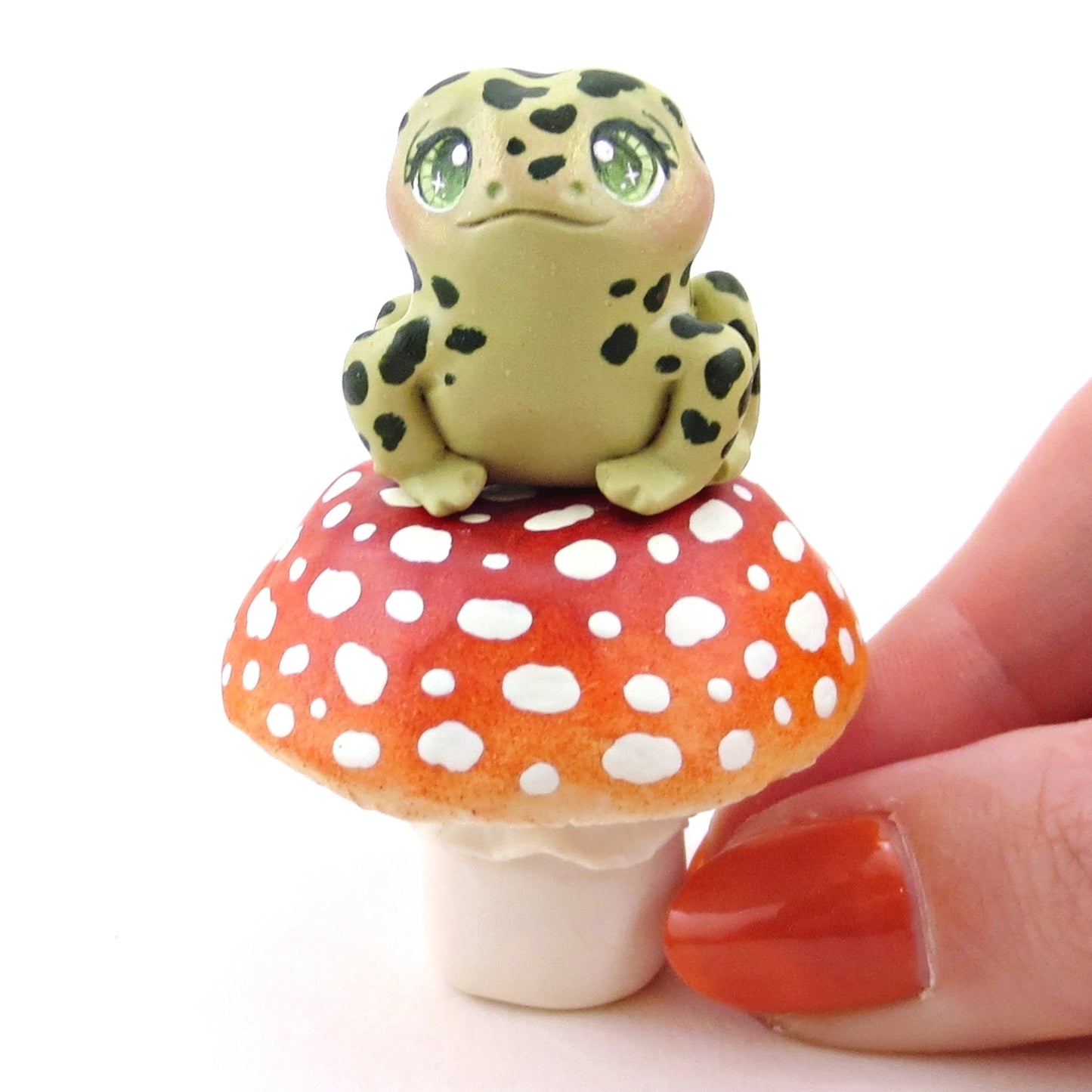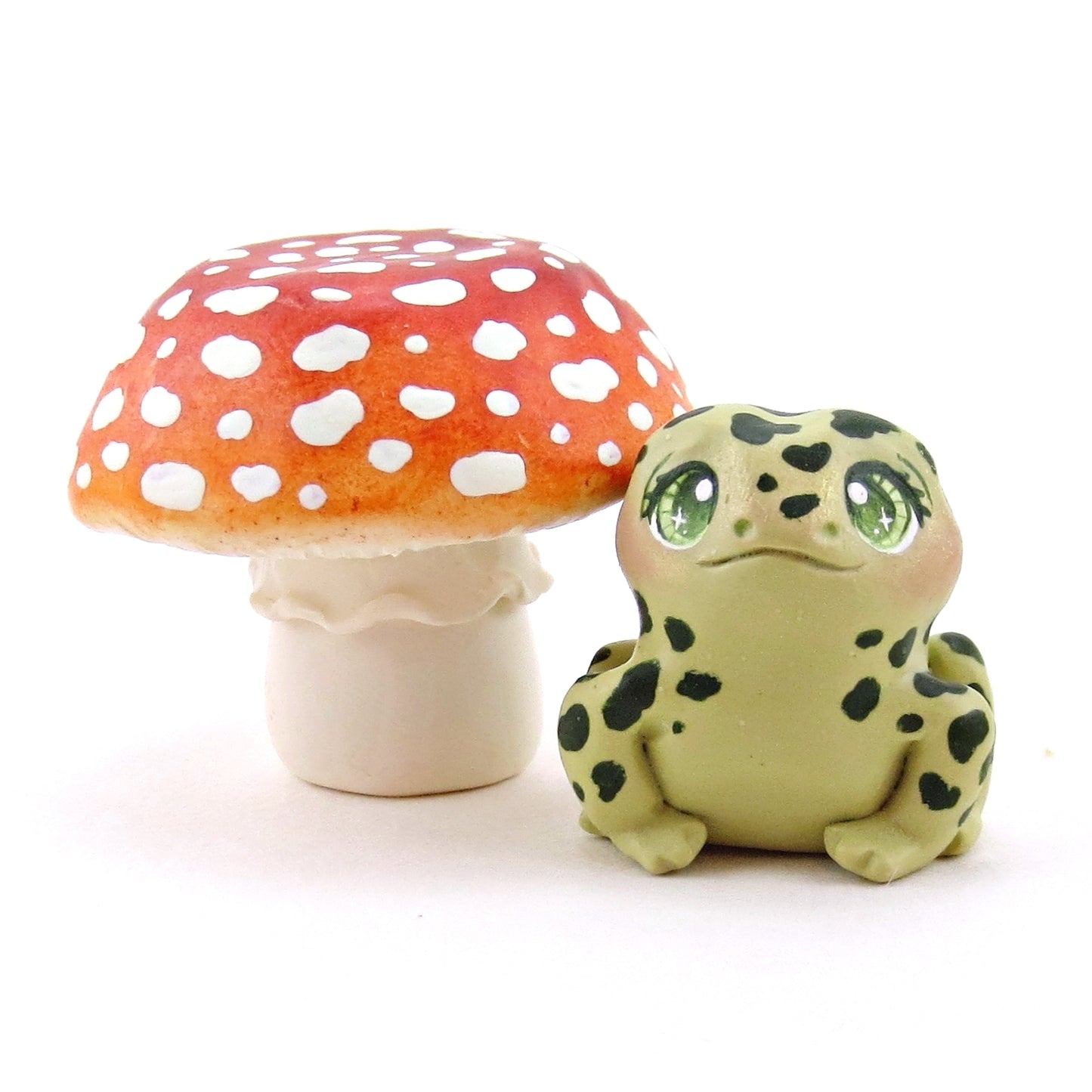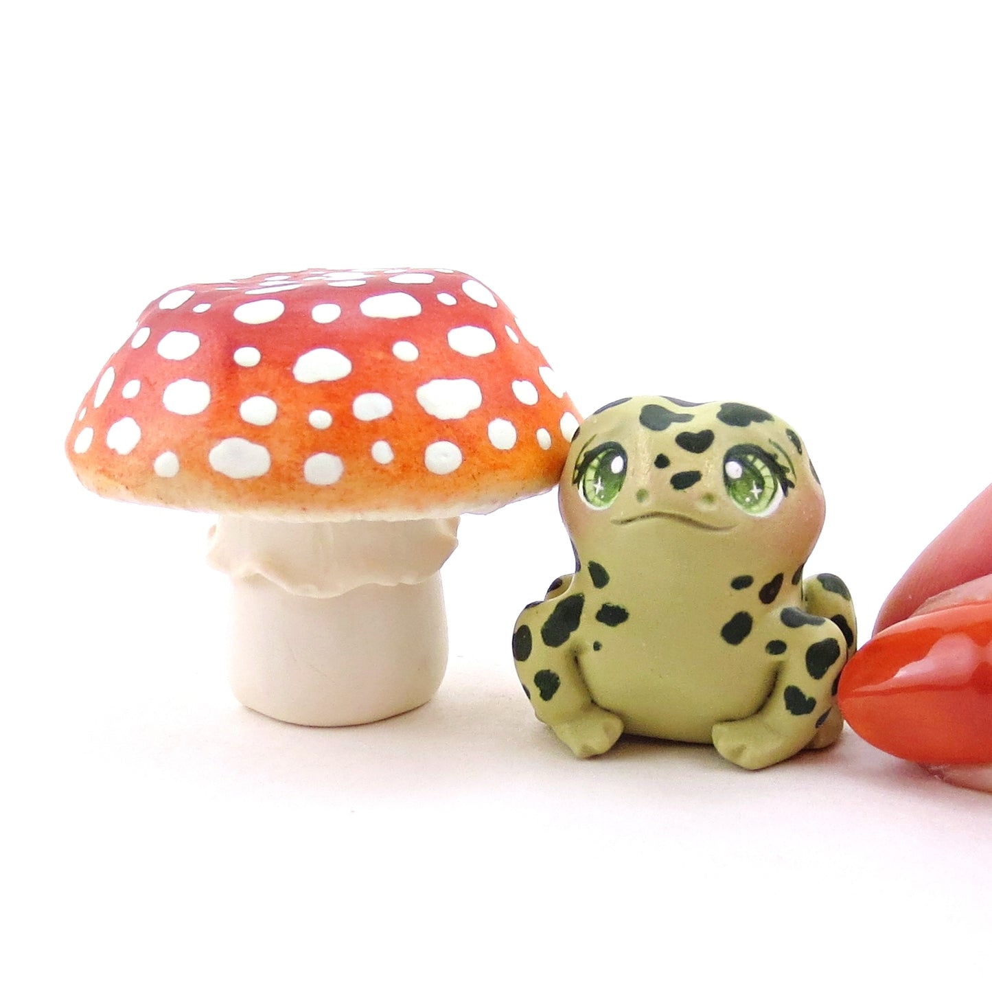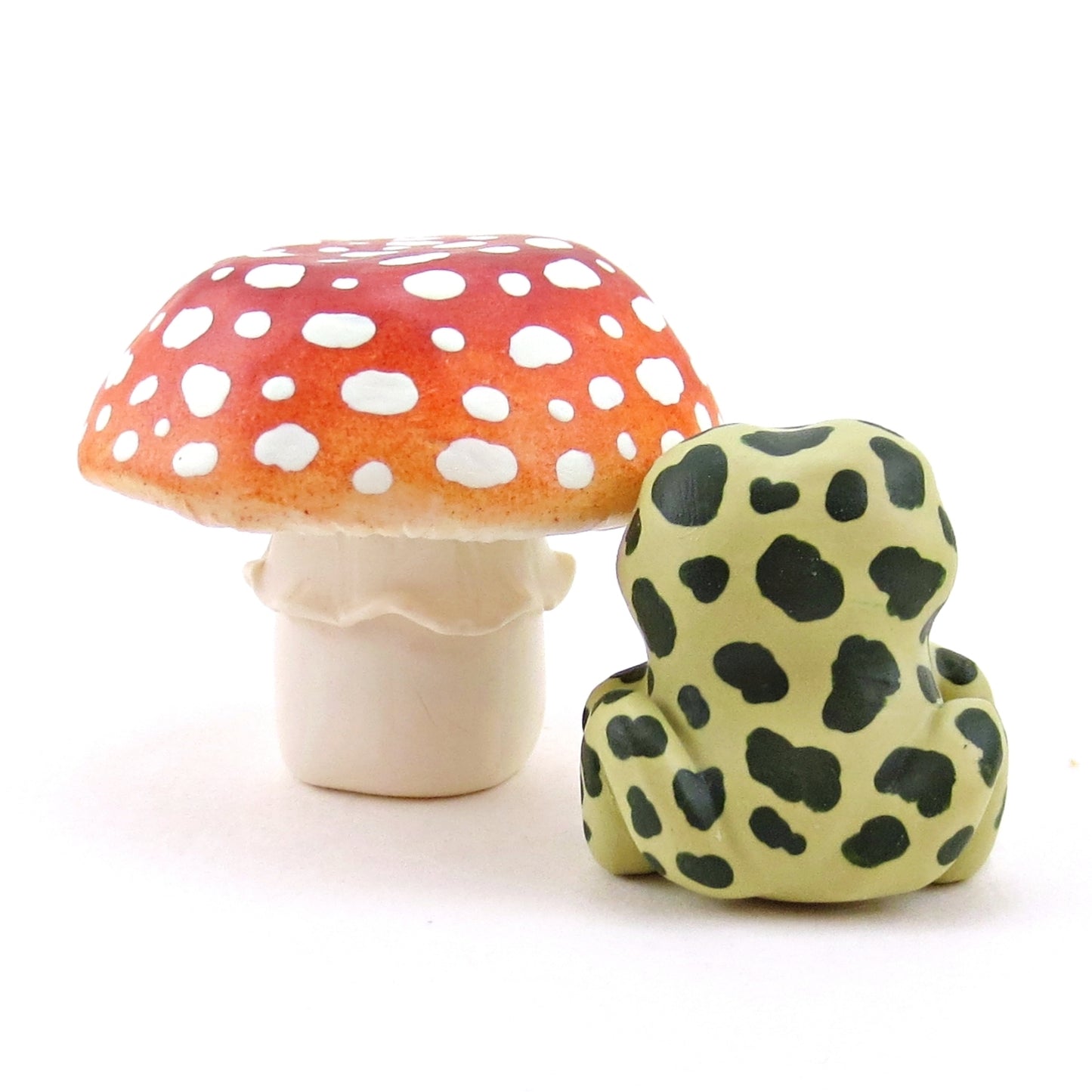 Mushroom and Frog Figurine Set - Polymer Clay Animals Fall and Halloween Collection