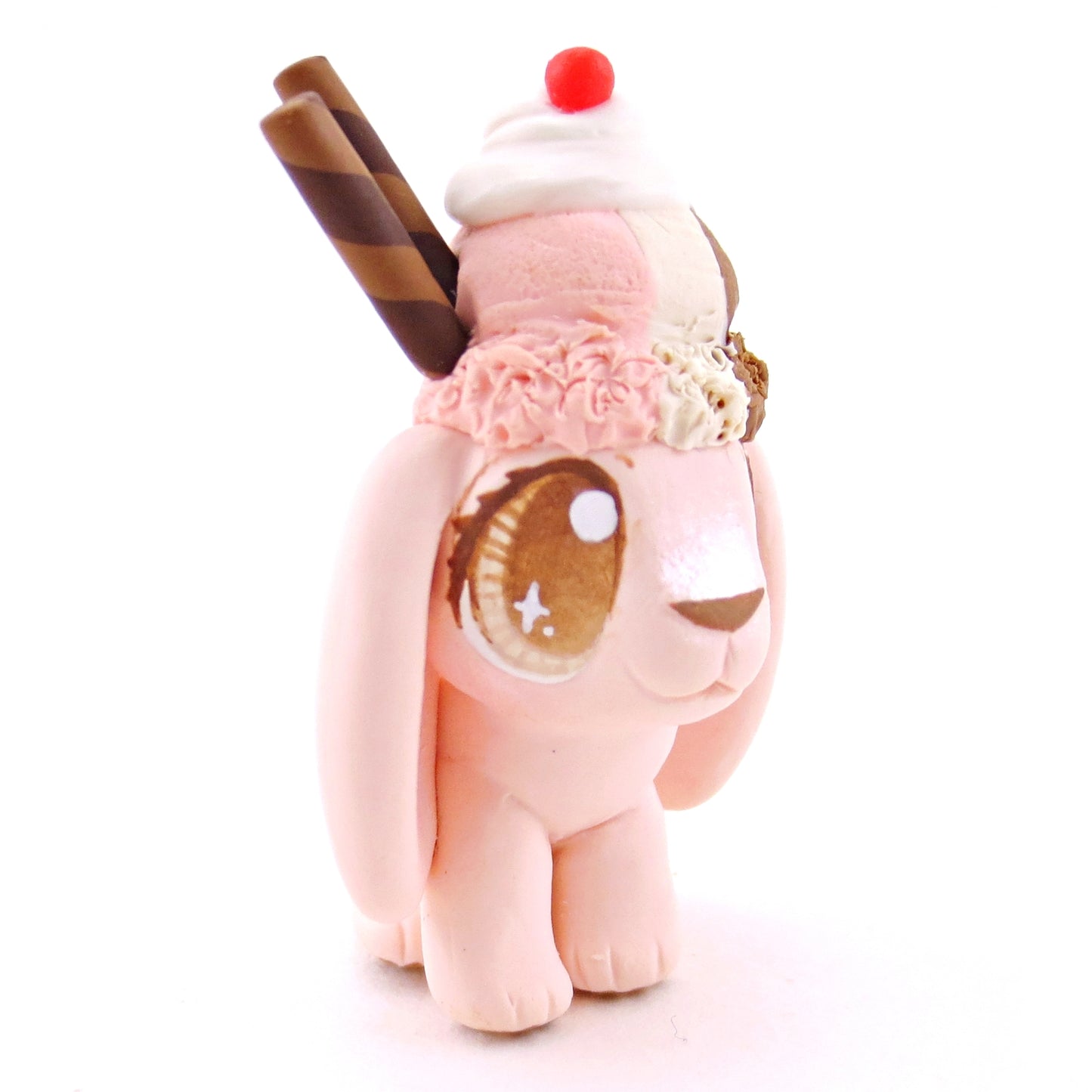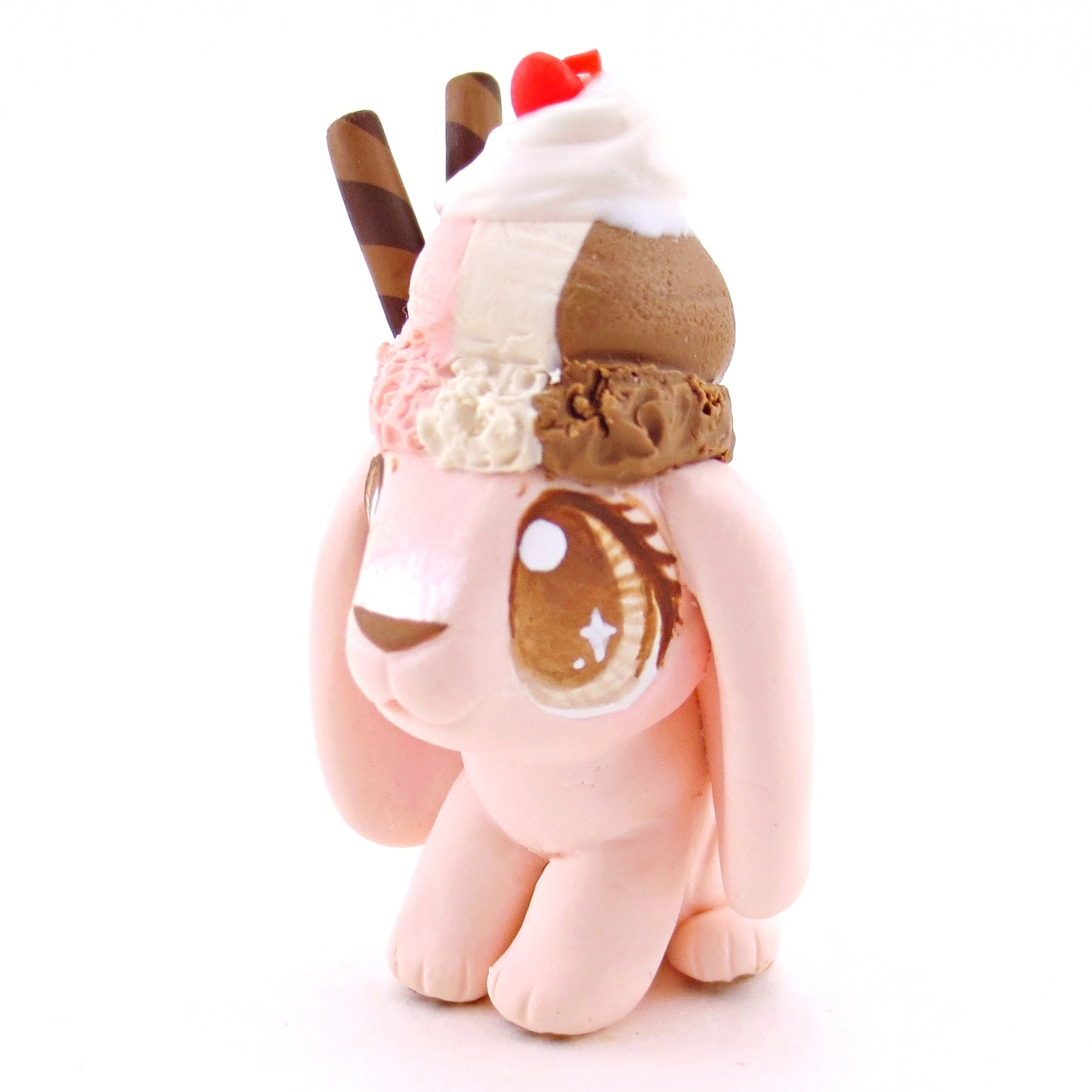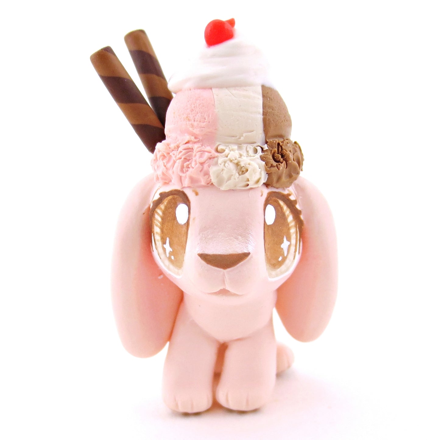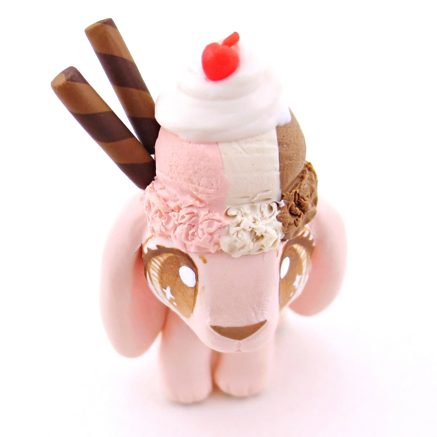 Neapolitan Ice Cream Holland Lop Figurine - Polymer Clay Food and Dessert Animals