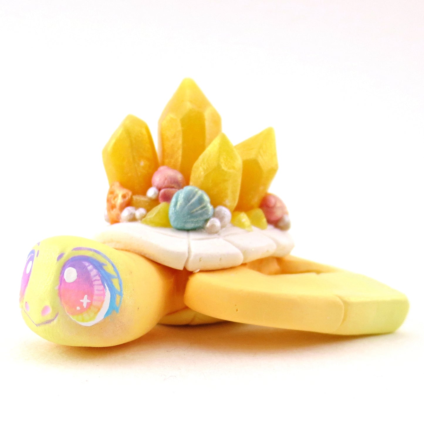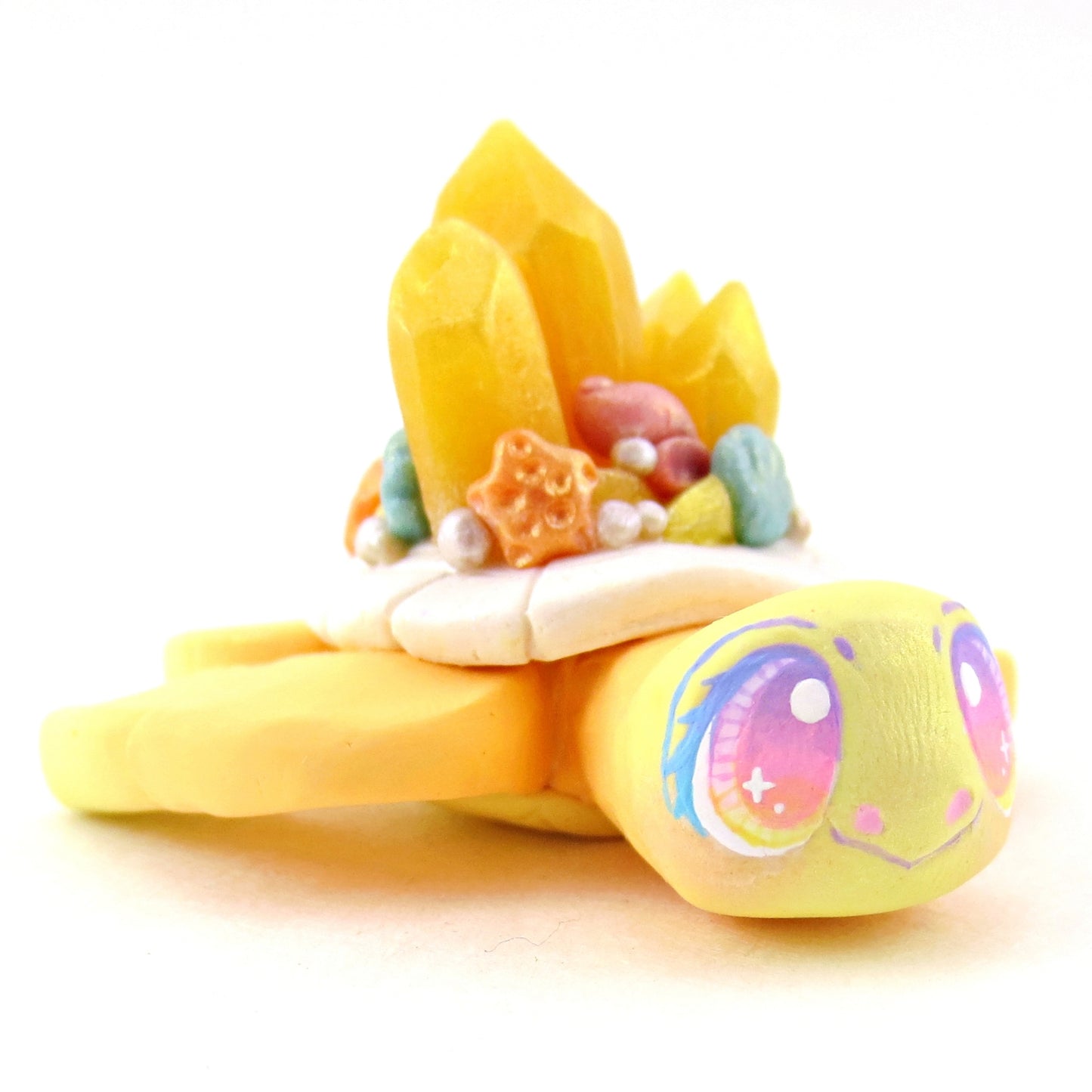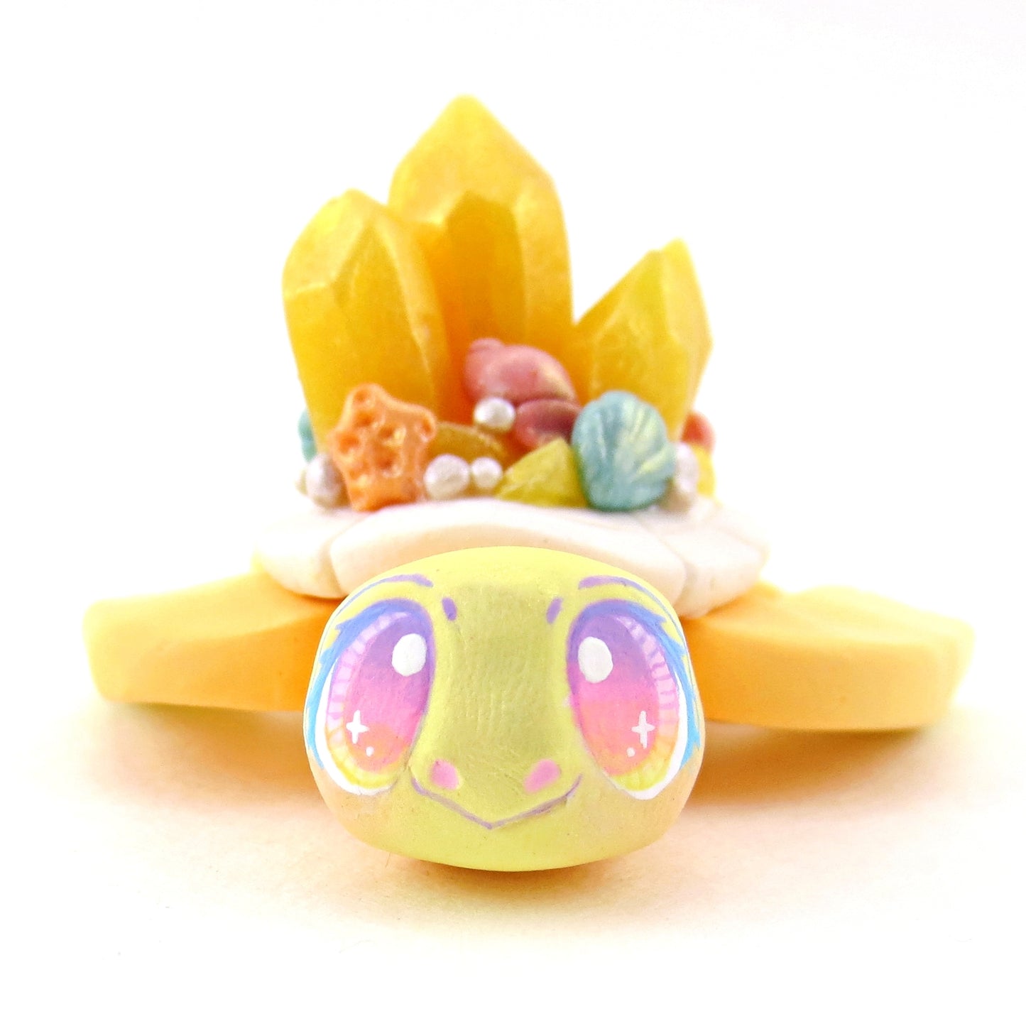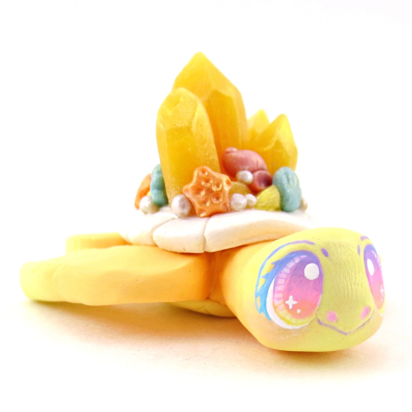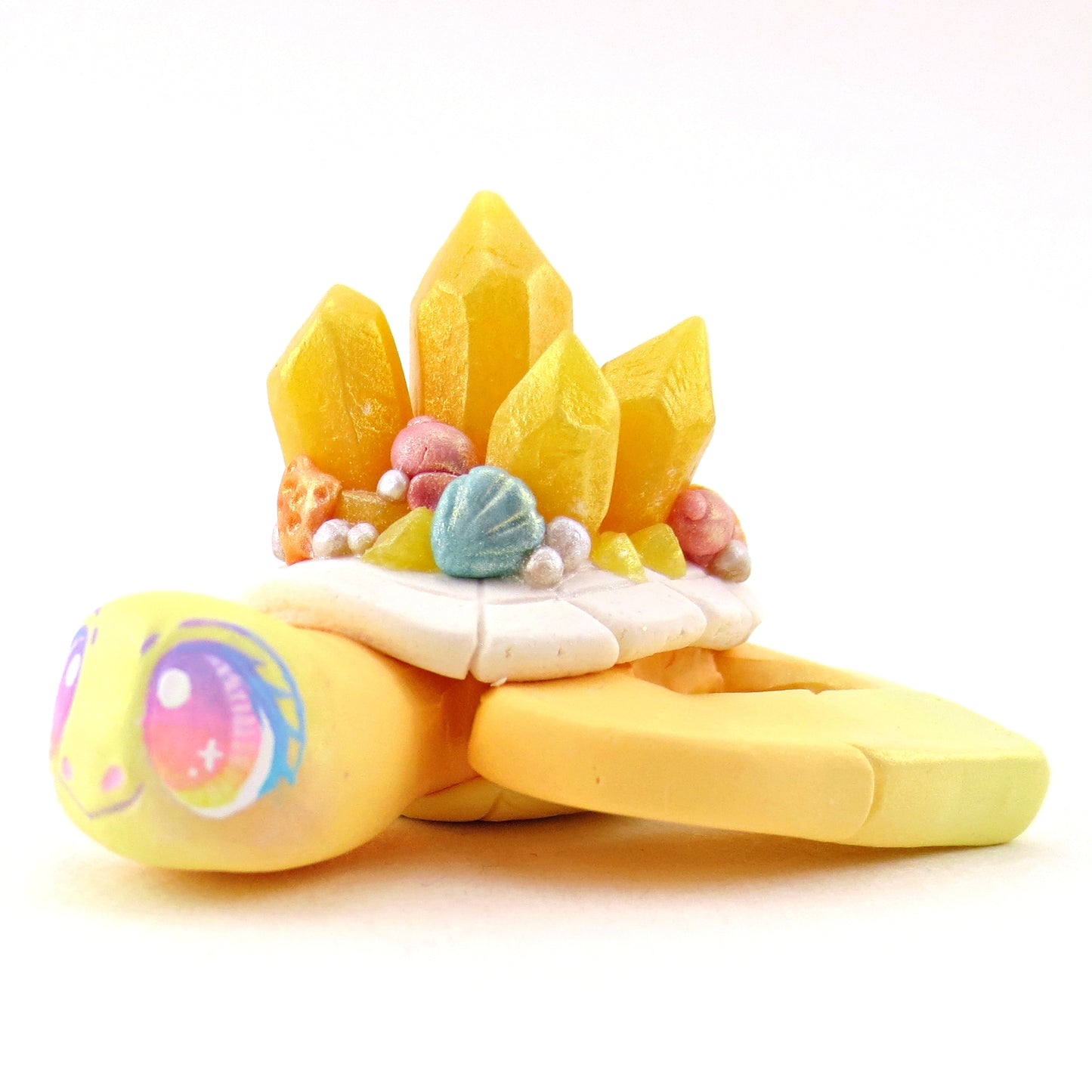 Orange and Yellow Crystal Seashell Turtle Figurine - Polymer Clay Celestial Sea Animals