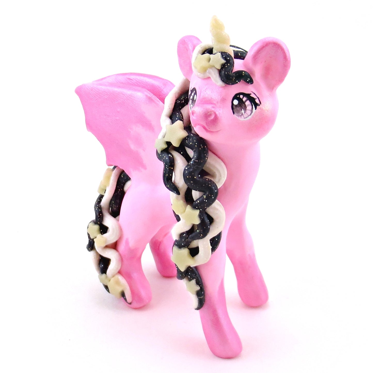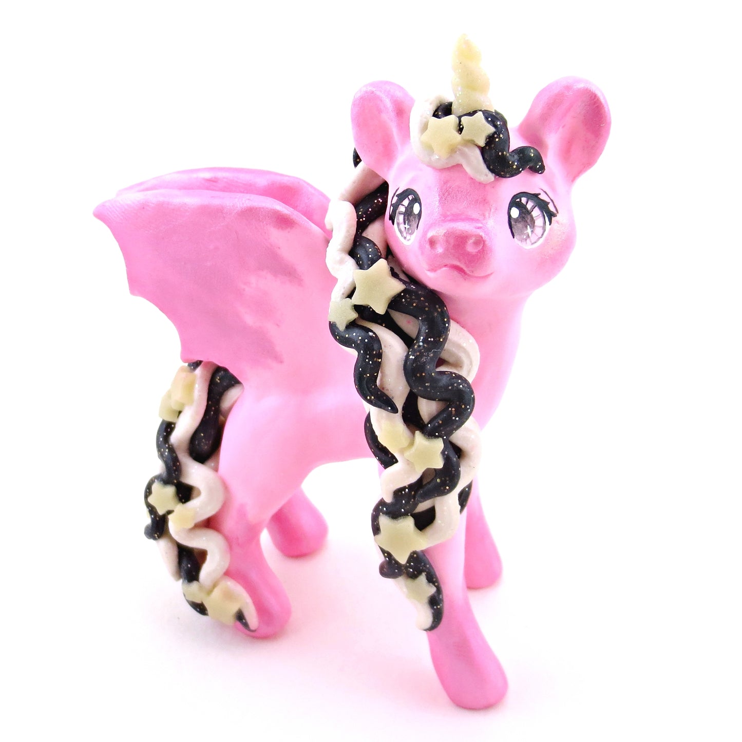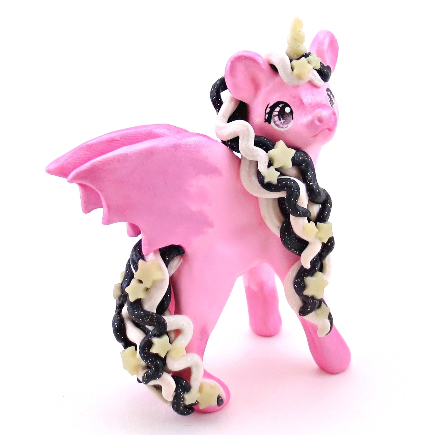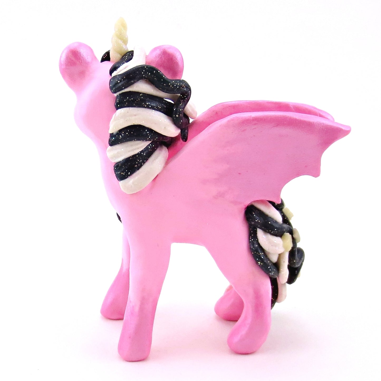"Pastel Halloween" Pink Baticorn Unicorn Figurine - Polymer Clay Animals Fall and Halloween Collection