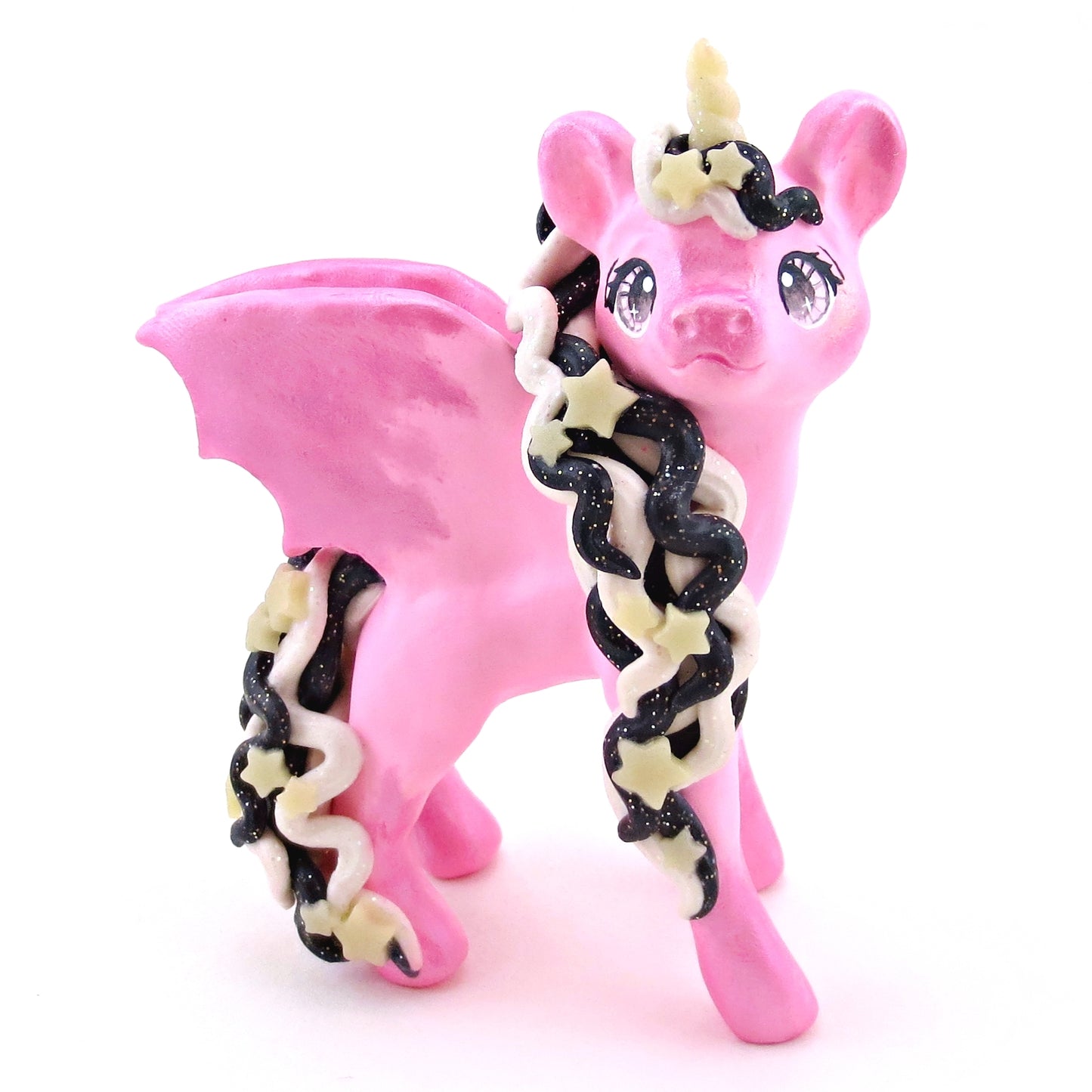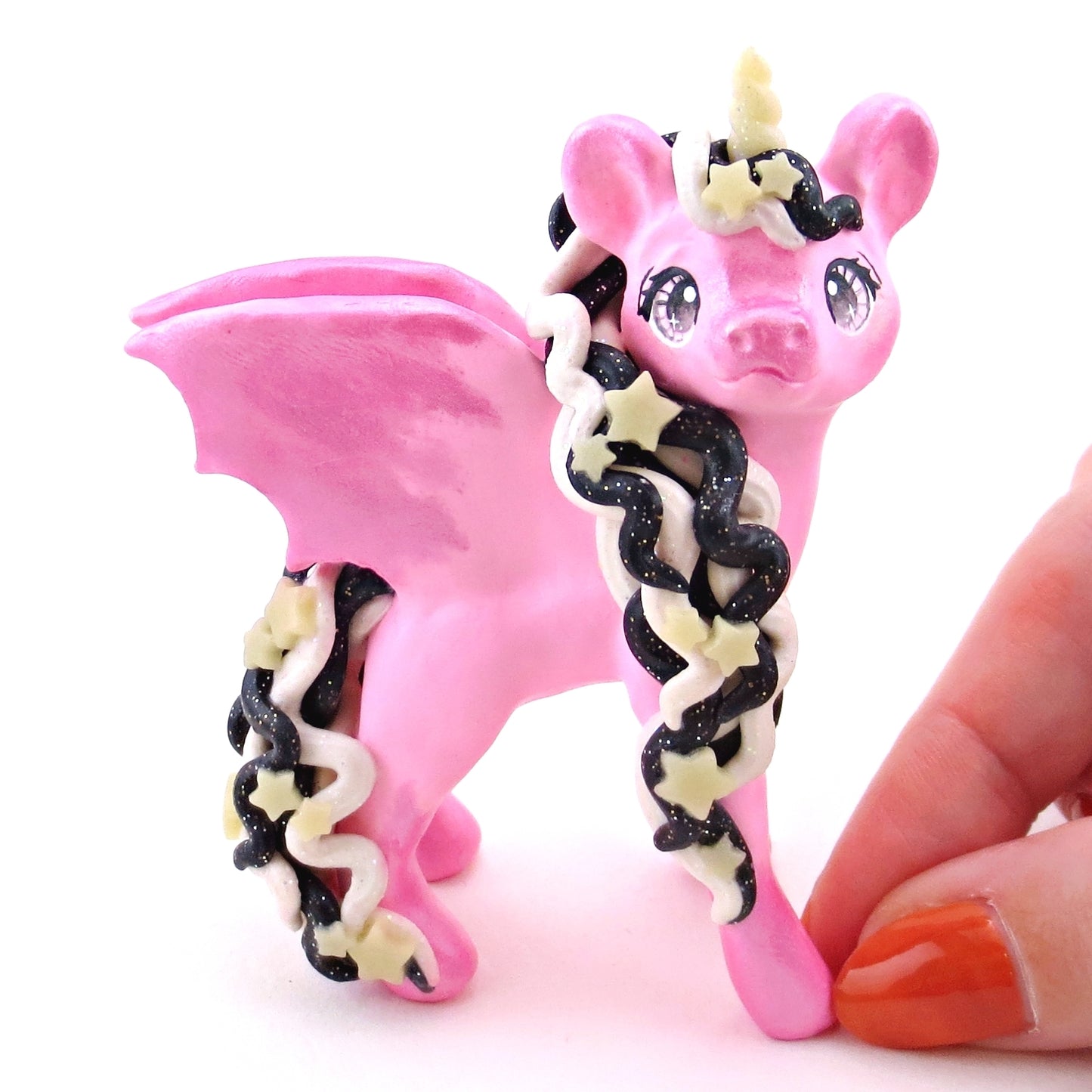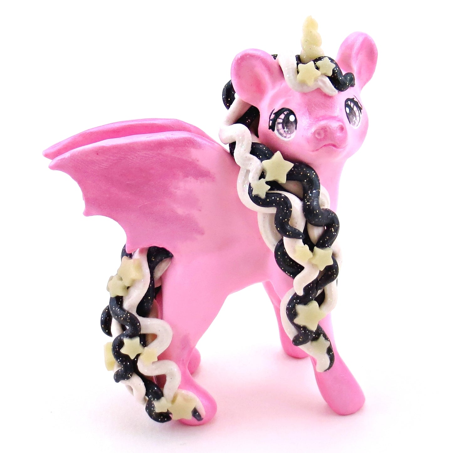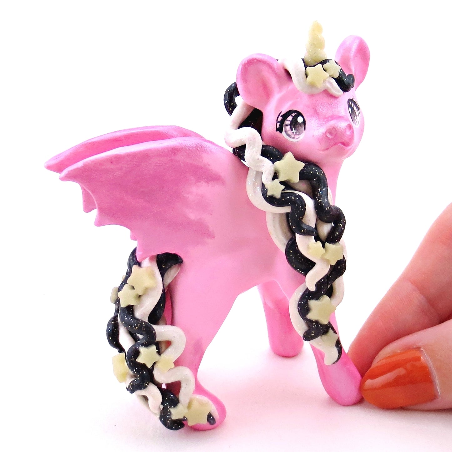 "Pastel Halloween" Pink Baticorn Unicorn Figurine - Polymer Clay Animals Fall and Halloween Collection