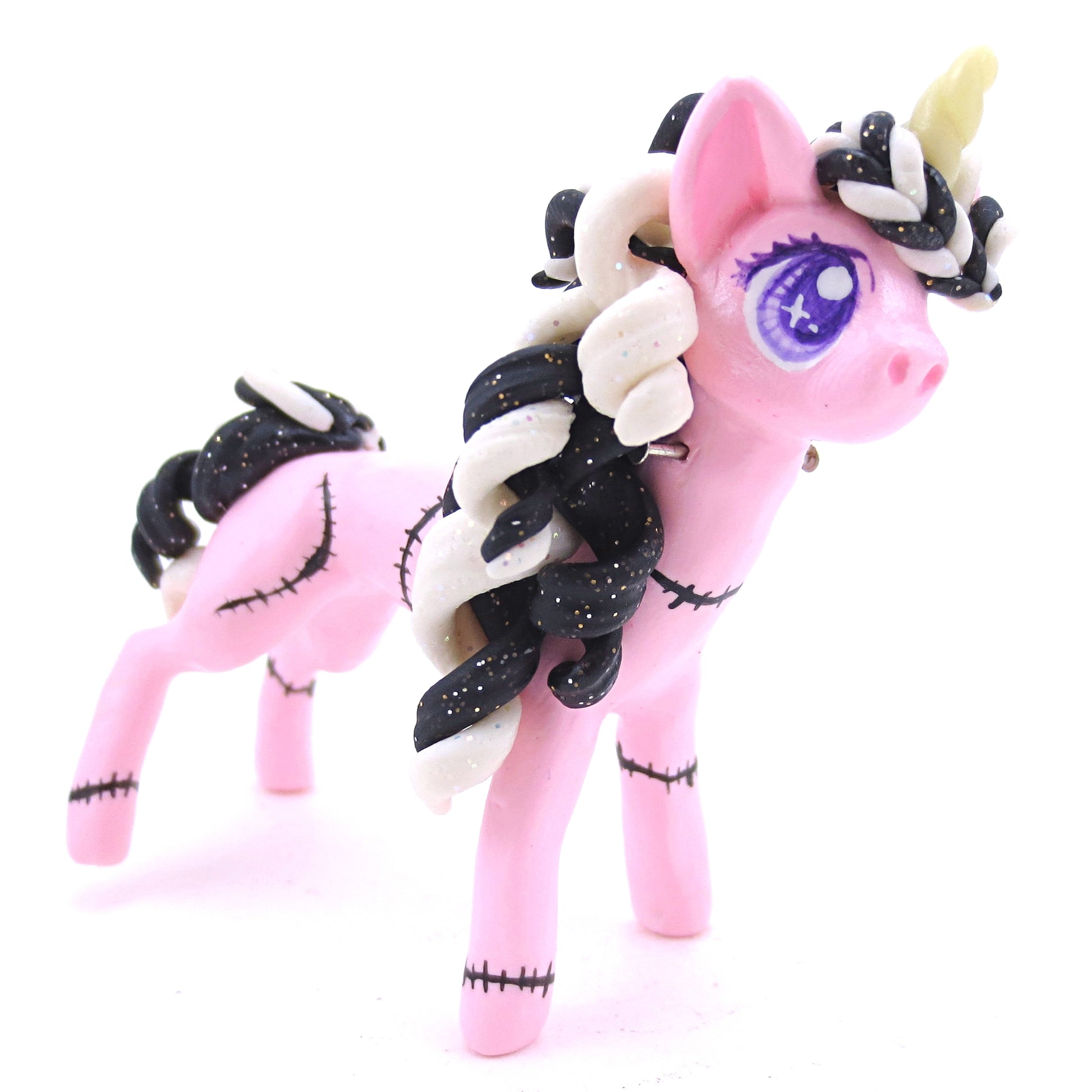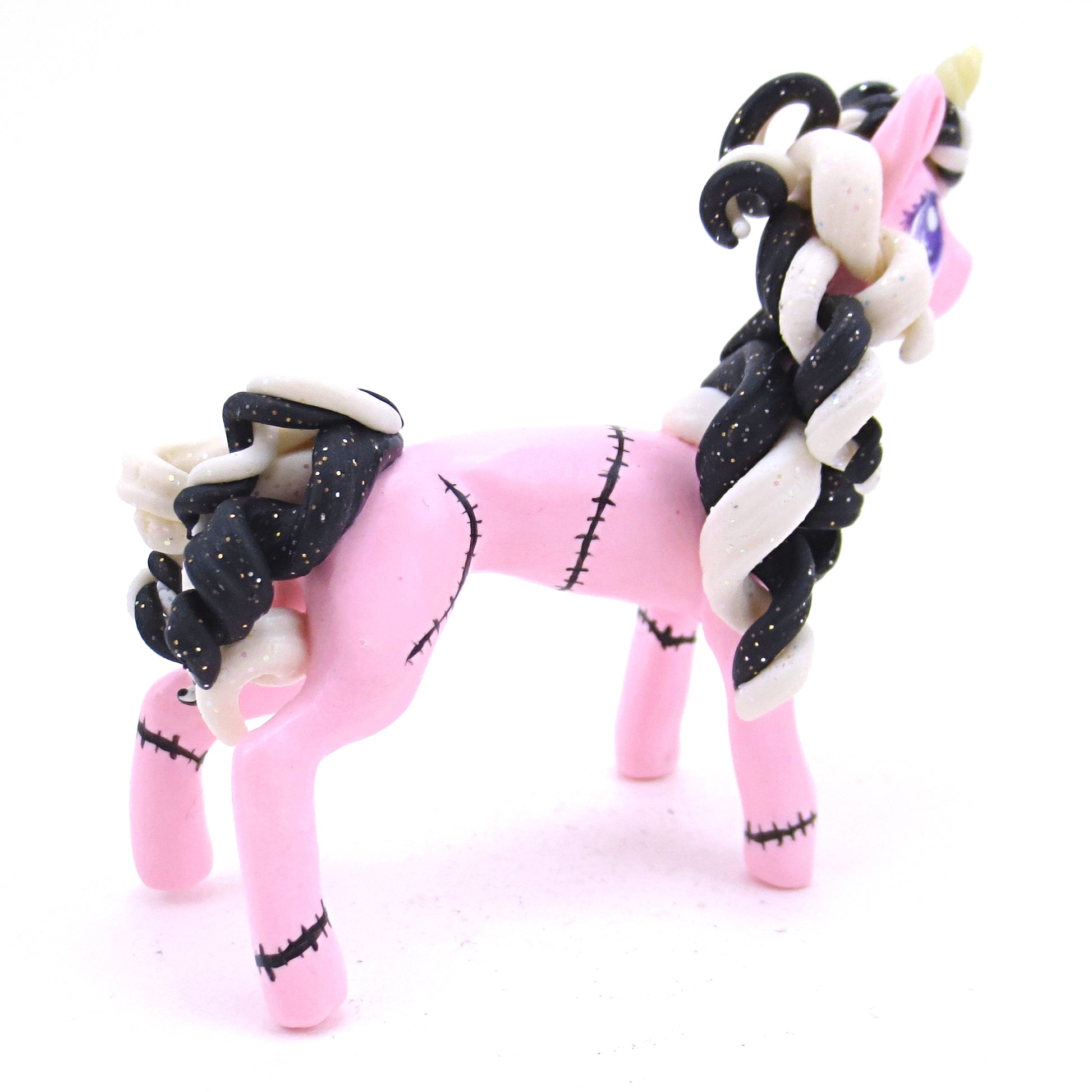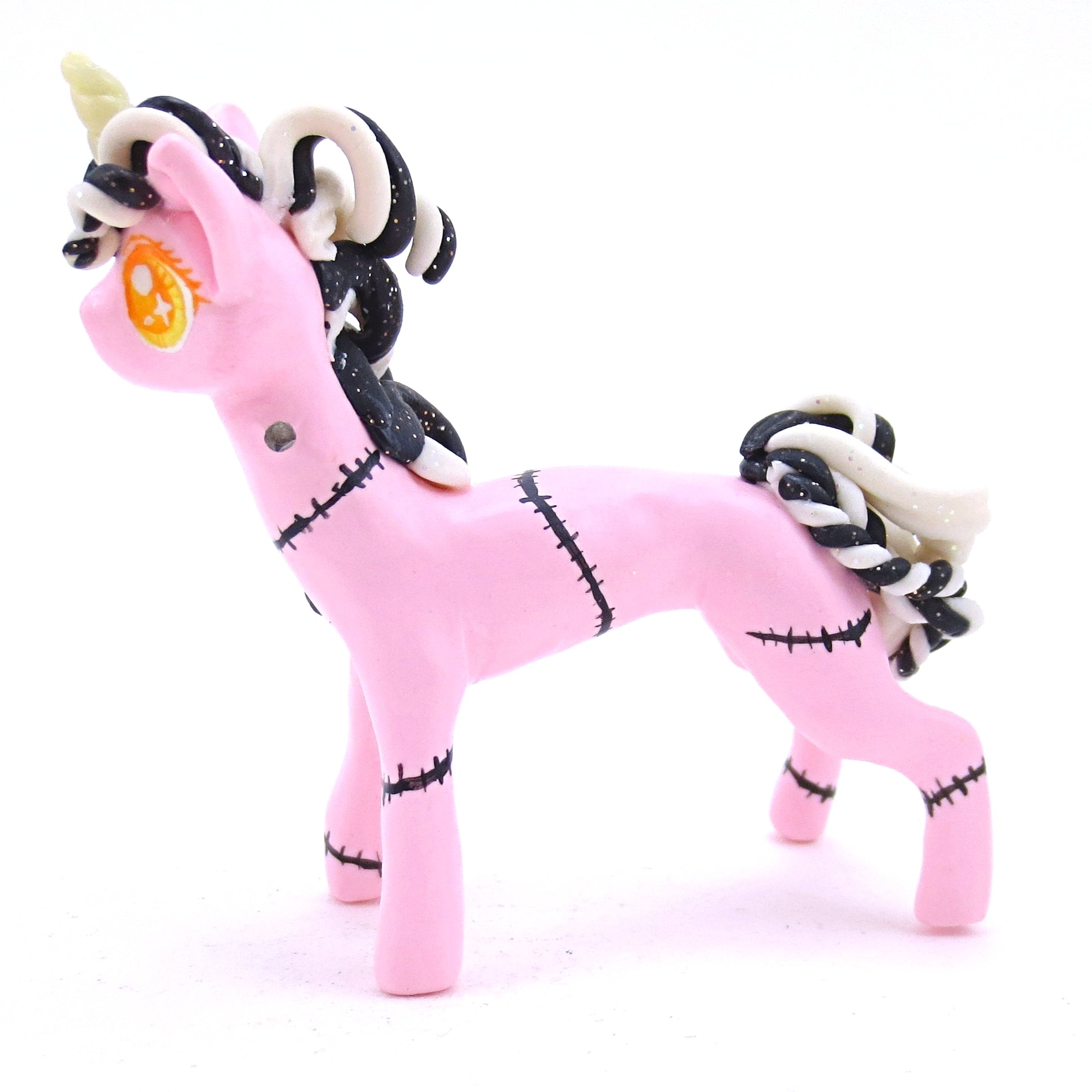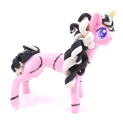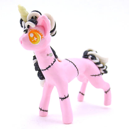Pastel Pink Frankenunicorn Figurine - Polymer Clay Halloween Animals