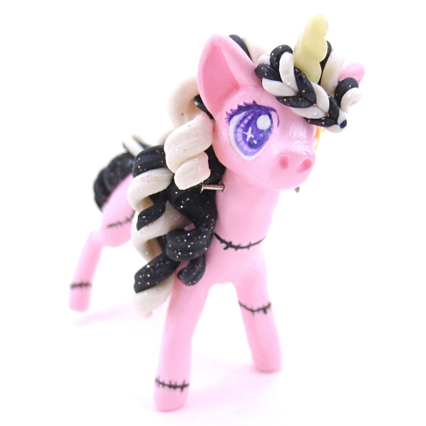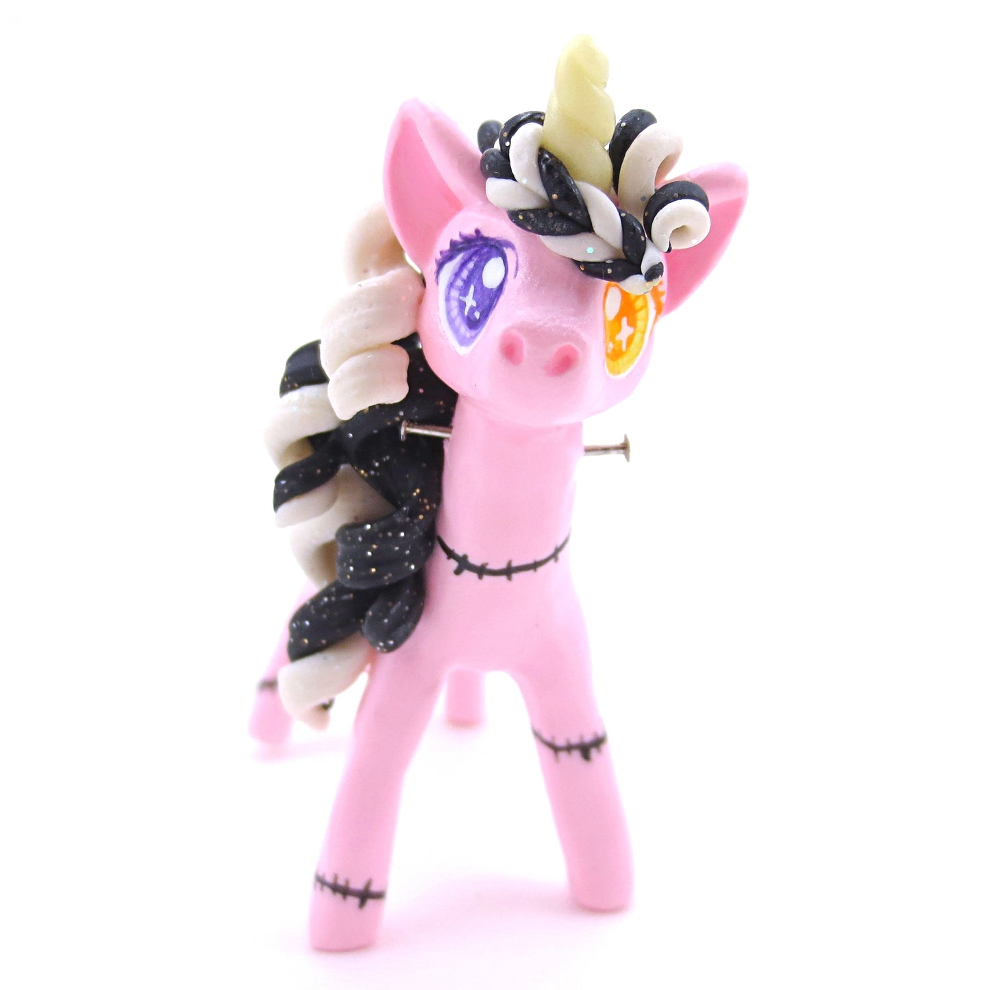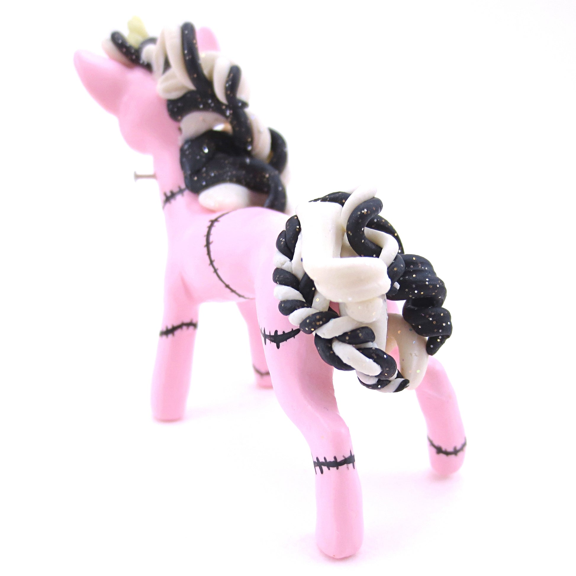 Pastel Pink Frankenunicorn Figurine - Polymer Clay Halloween Animals