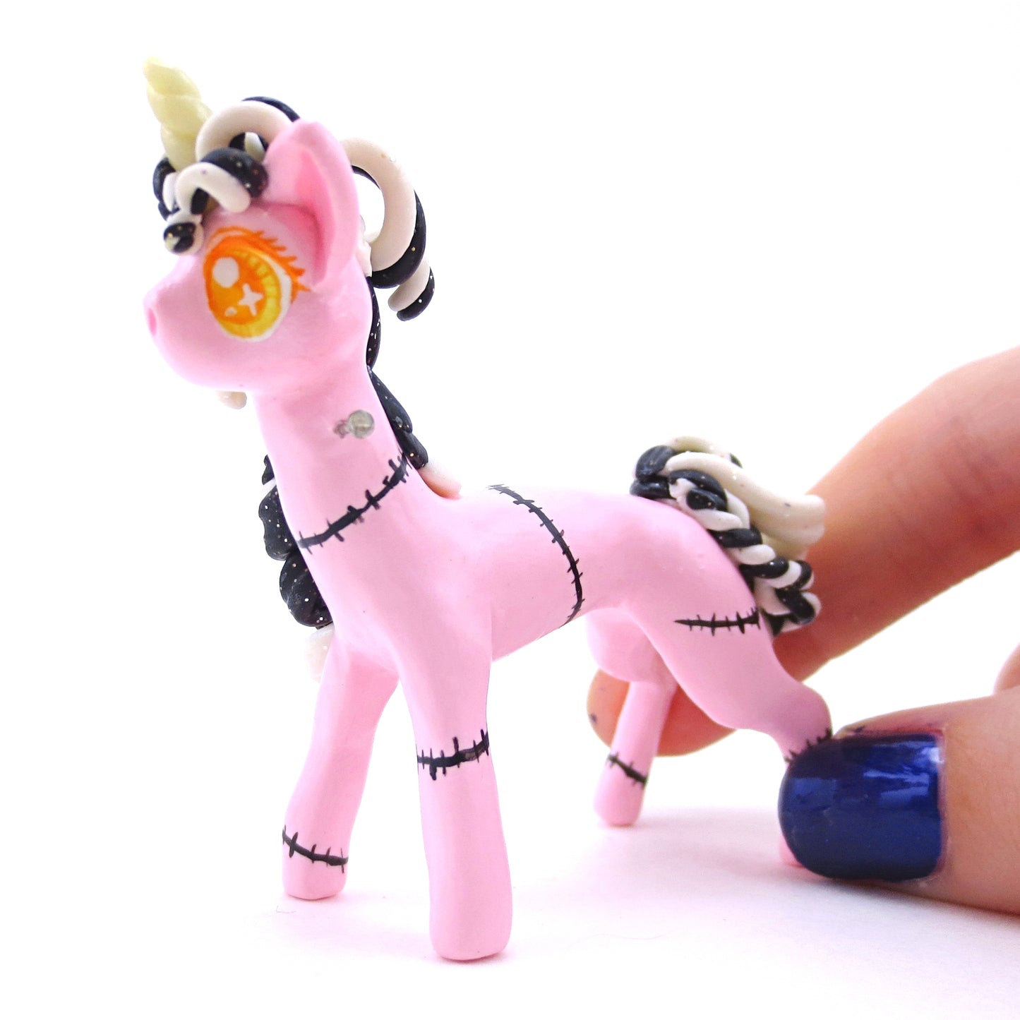 This little halloween unicorn figurine is hand-sculpted, hand-colored, and painted with kawaii details! She will arrived sealed to protect her paint and details.