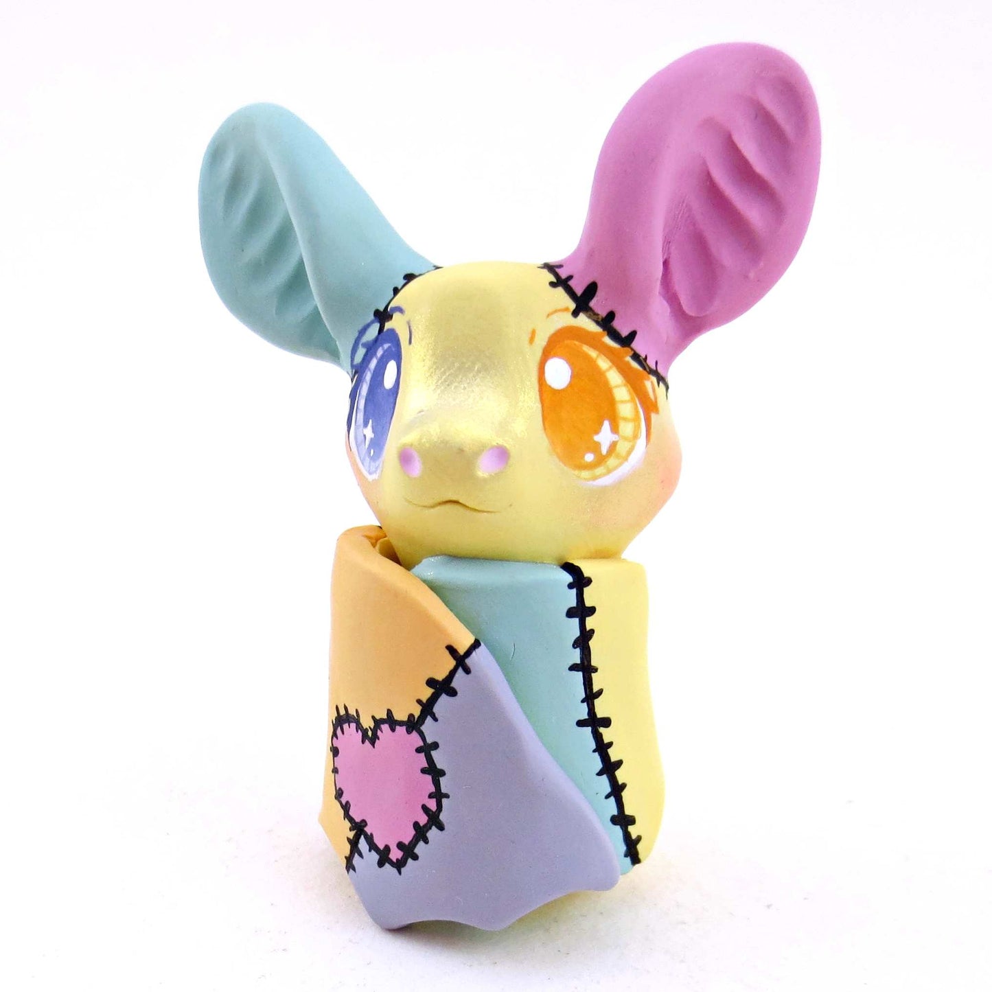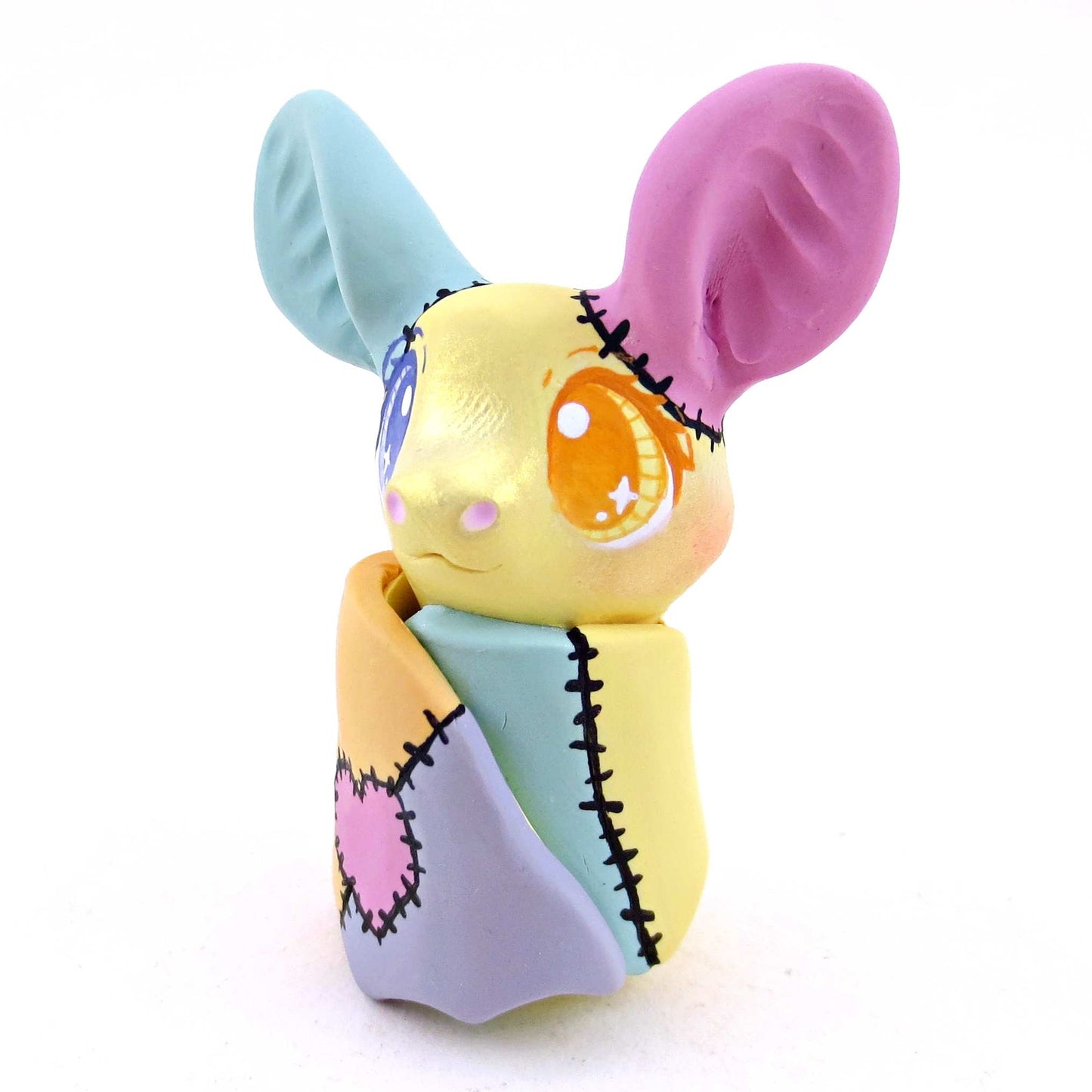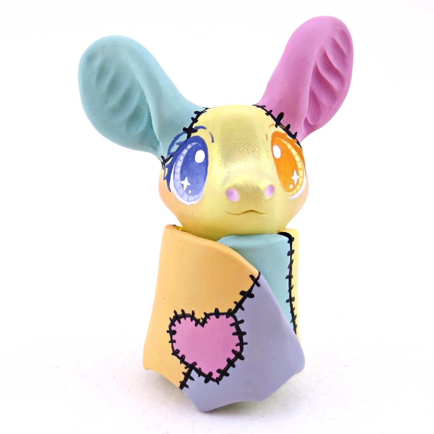 Patchwork Bat Figurine - Version 1 - Polymer Clay Spooky Season Animal Collection