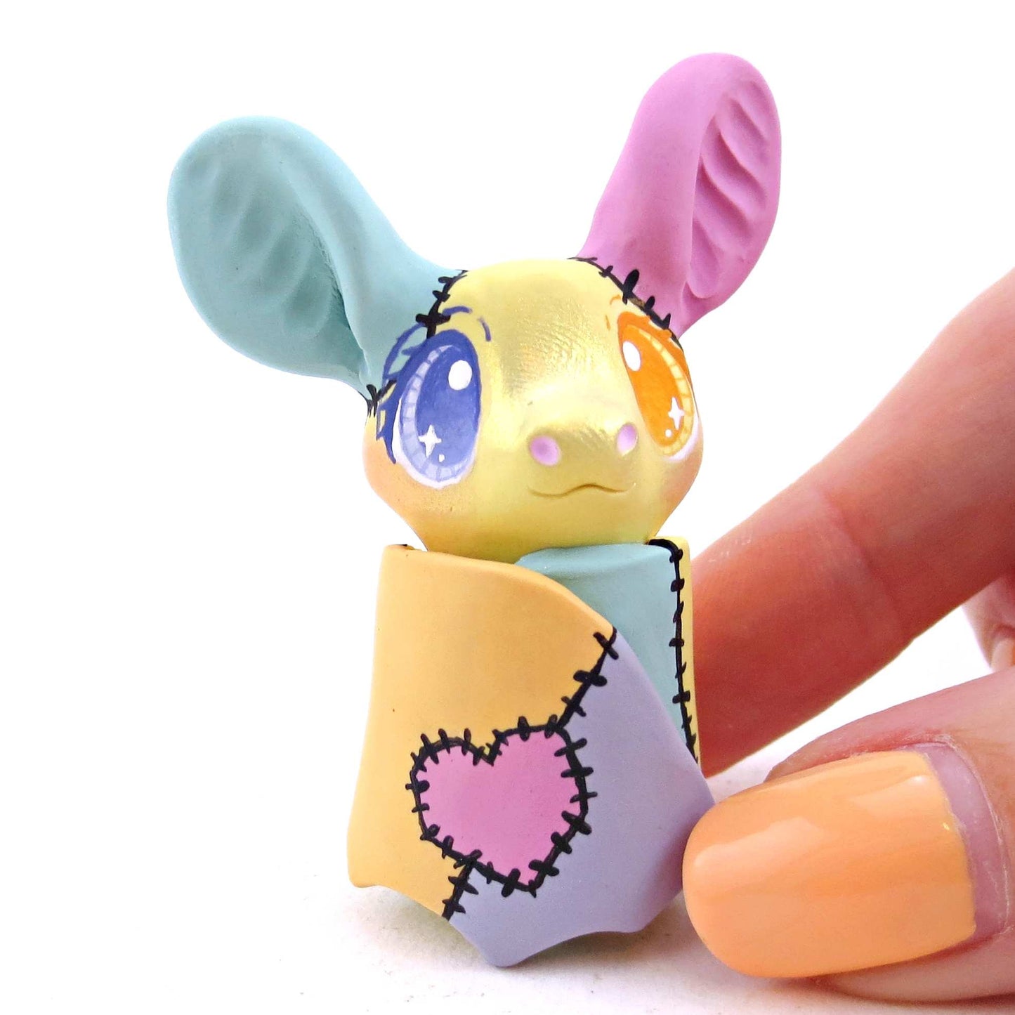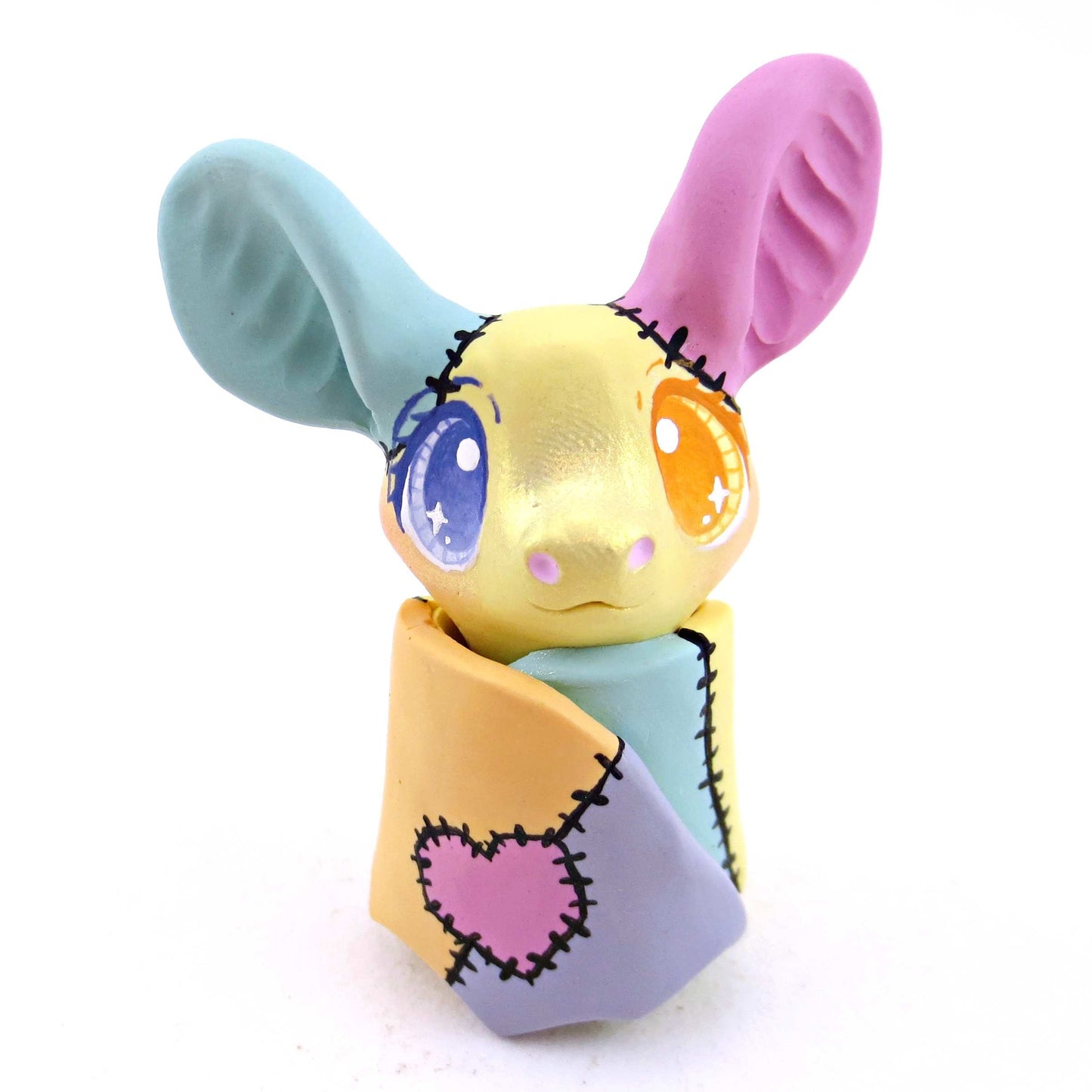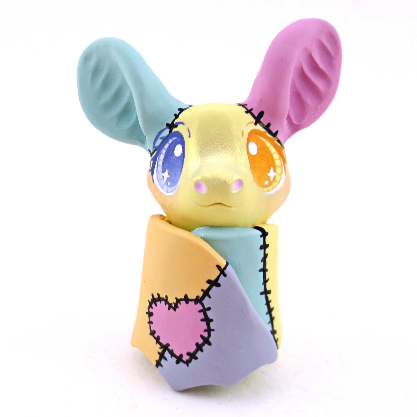 Patchwork Bat Figurine - Version 1 - Polymer Clay Spooky Season Animal Collection