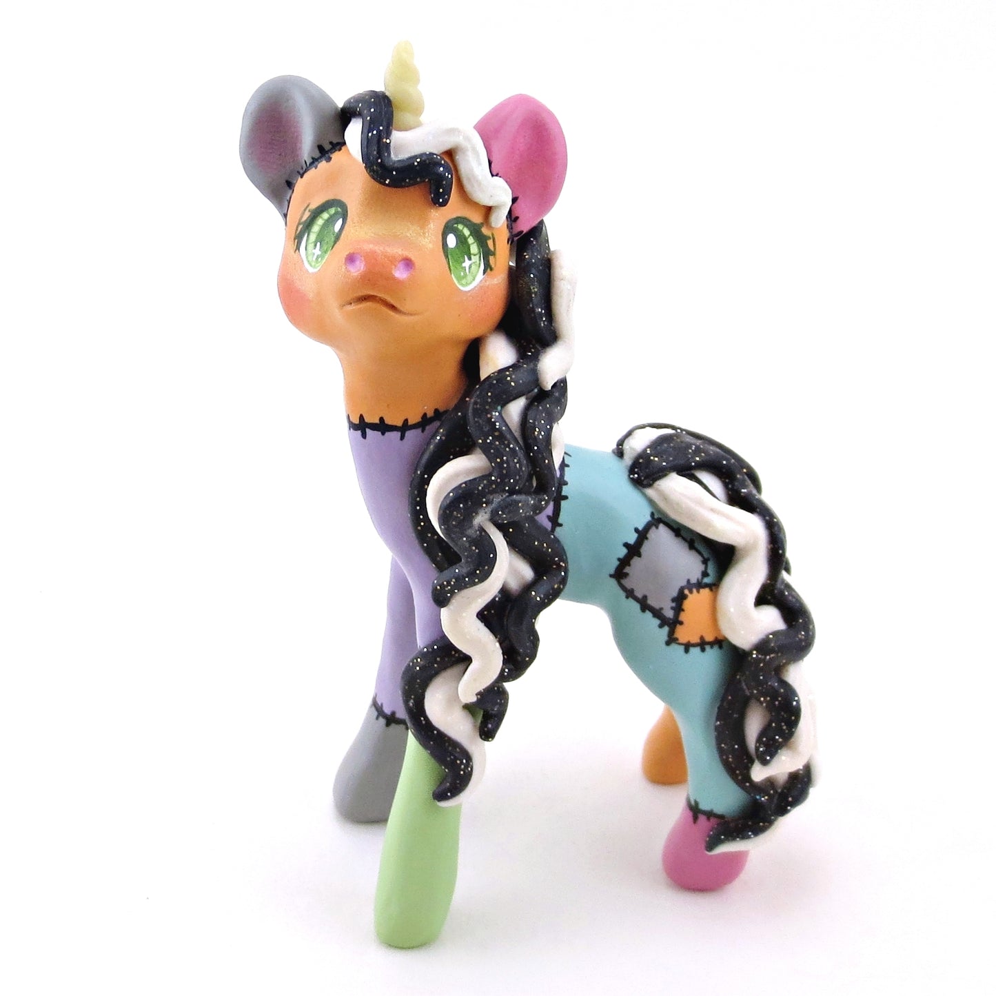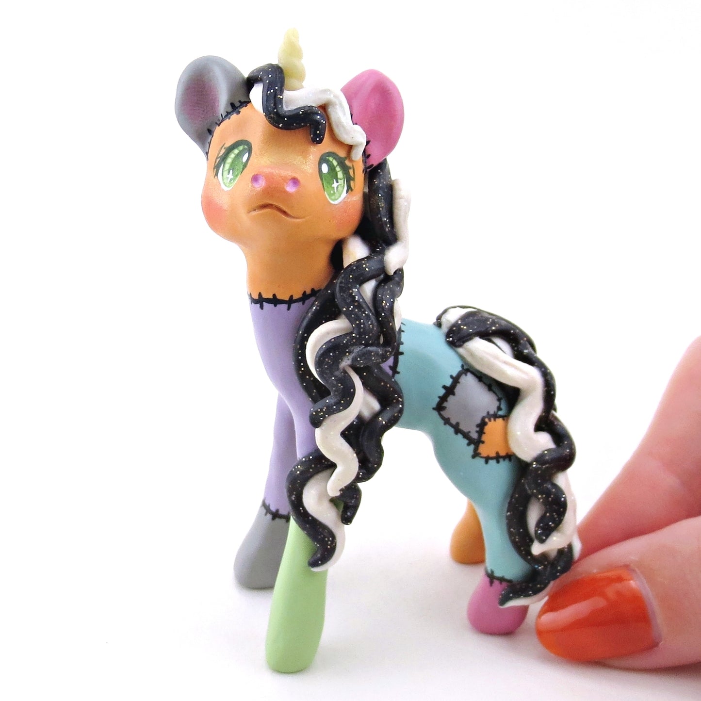 Patchwork Frankenunicorn Unicorn Figurine - Polymer Clay Animals Fall and Halloween Collection