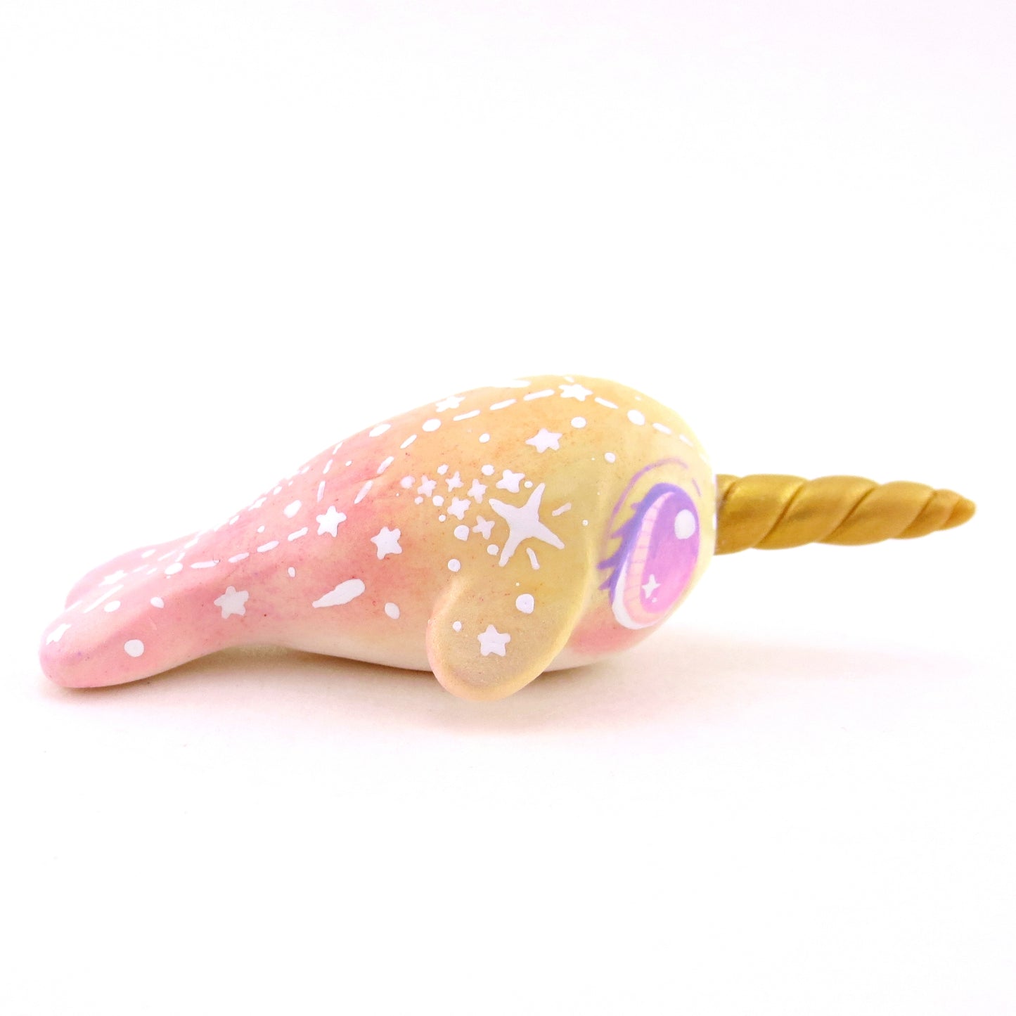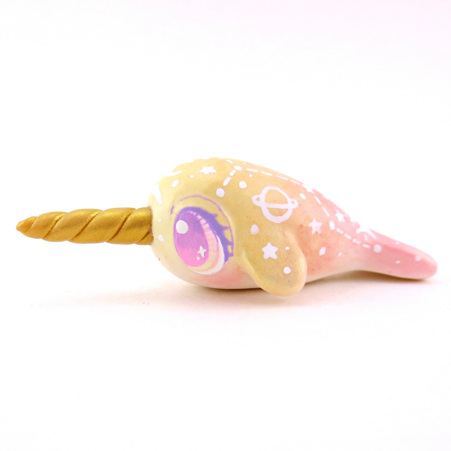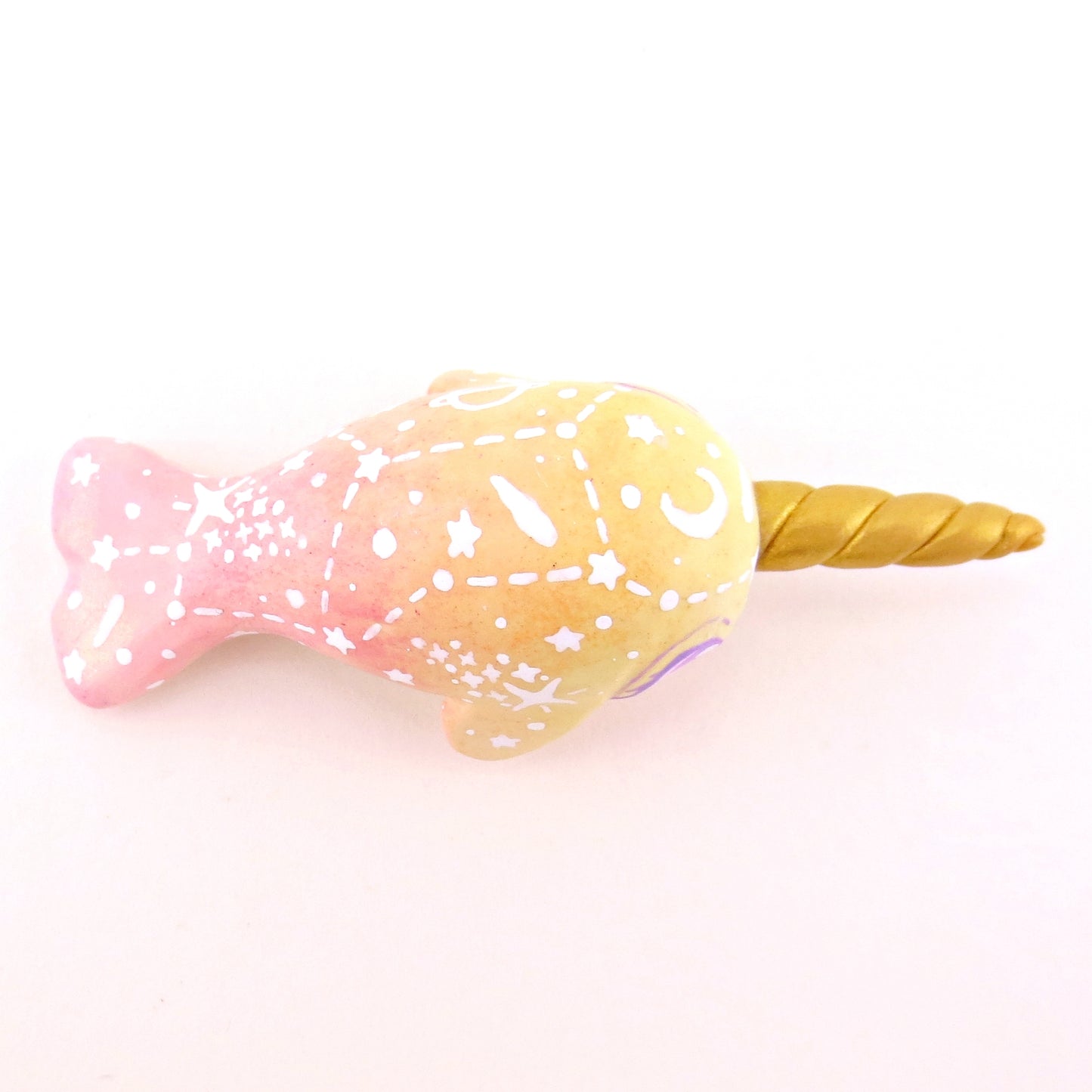 Peachy Ombre Constellation Narwhal Figurine - Polymer Clay Celestial Sea Animals