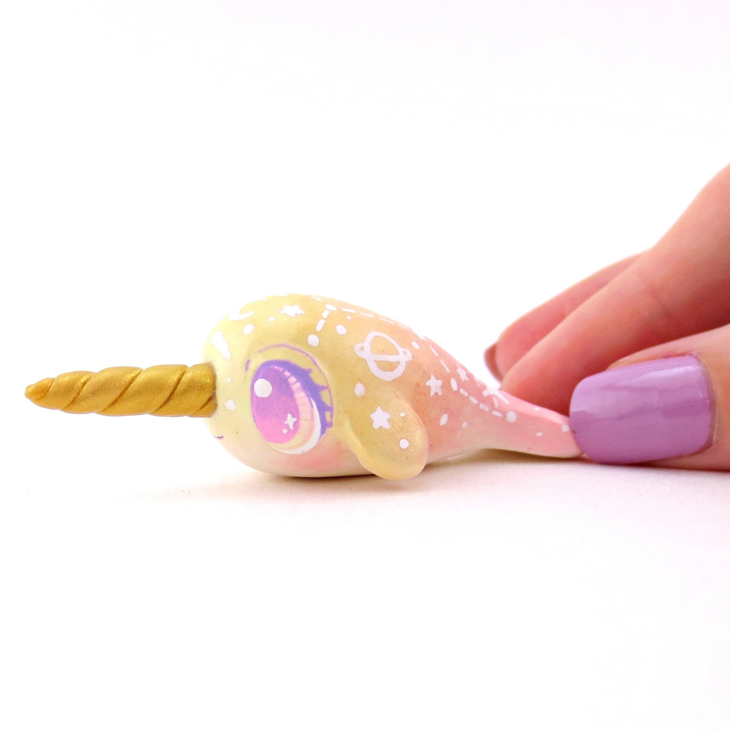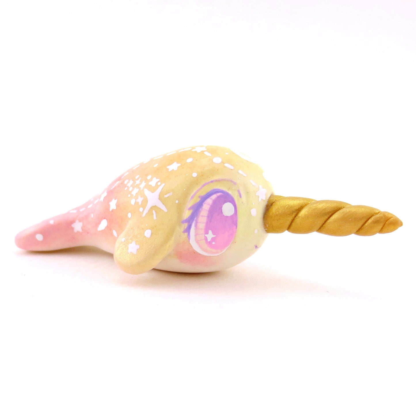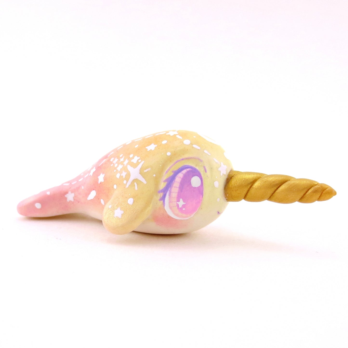 Peachy Ombre Constellation Narwhal Figurine - Polymer Clay Celestial Sea Animals