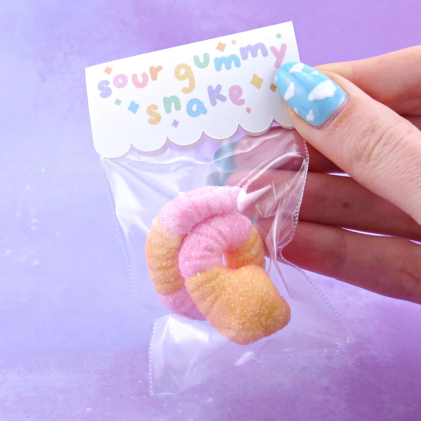 Pink and Orange "Sour Gummy" Snake Figurine - Polymer Clay Gummy Candy Collection