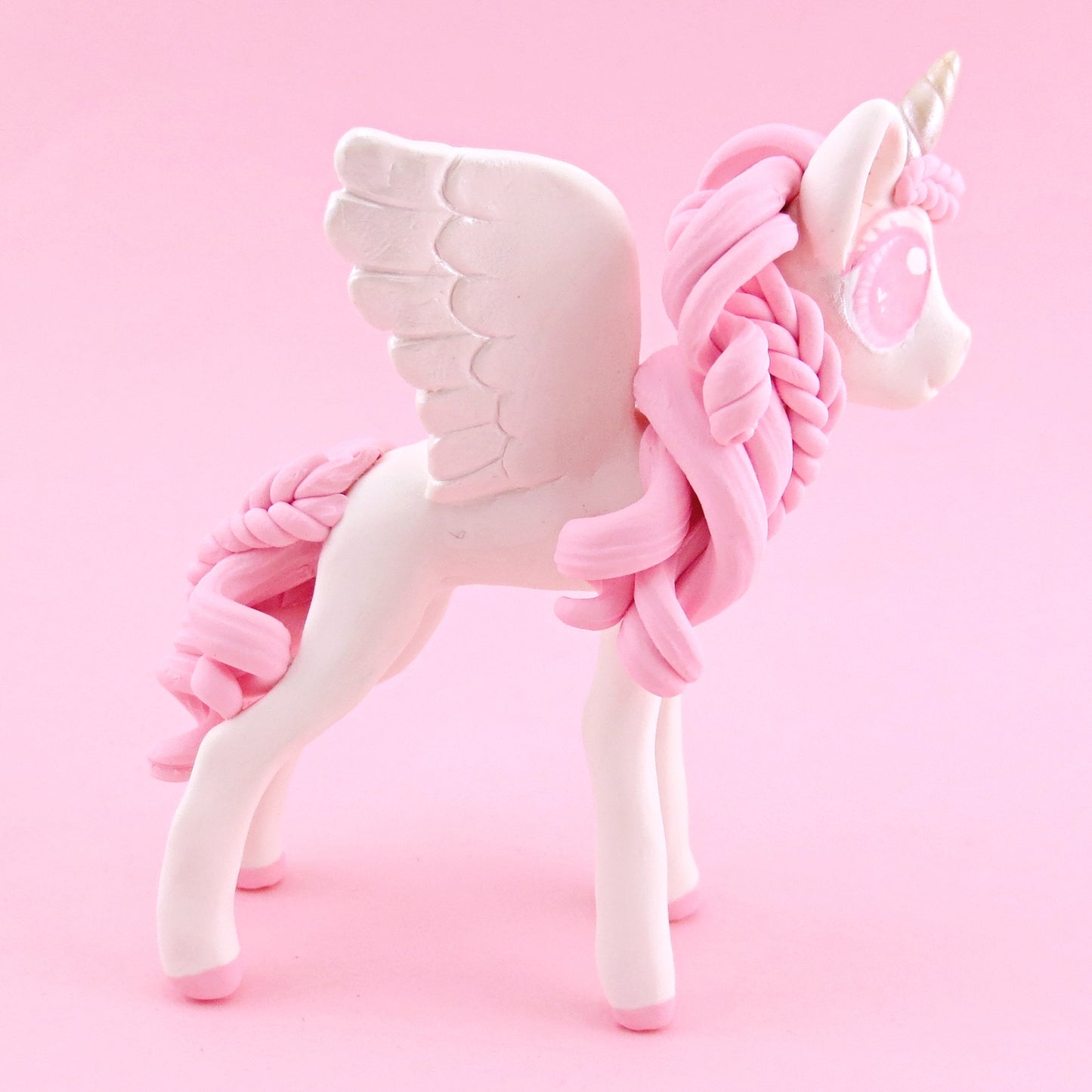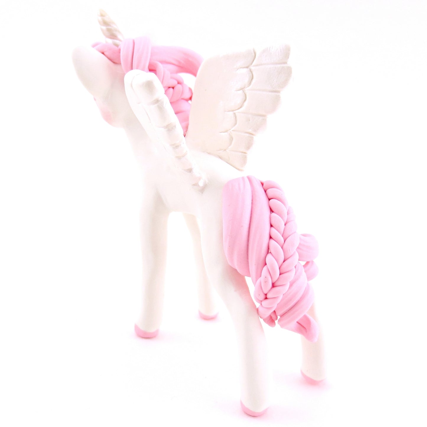 Pink and White Unicorn Pegasus Figurine - Polymer Clay Valentine Animals