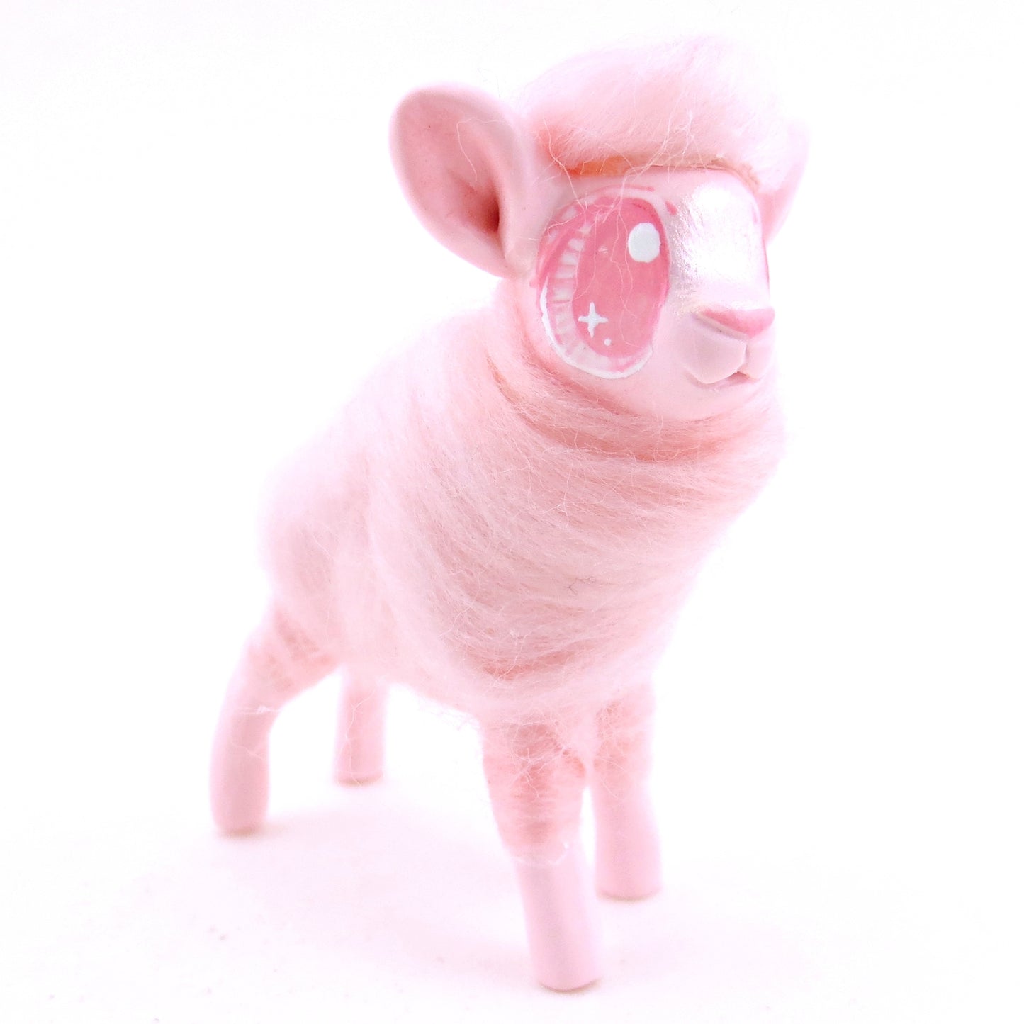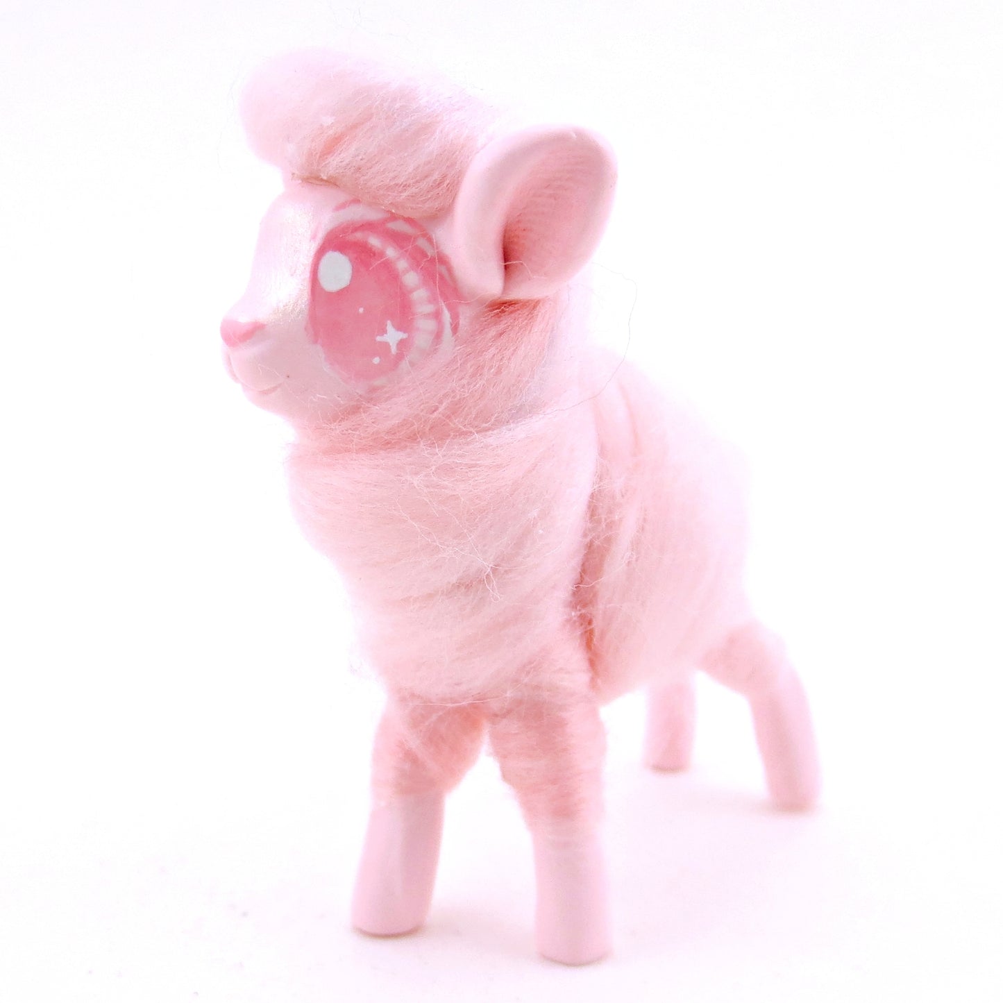 Pink Cotton Candy Lamb Figurine - Polymer Clay Magical Creatures