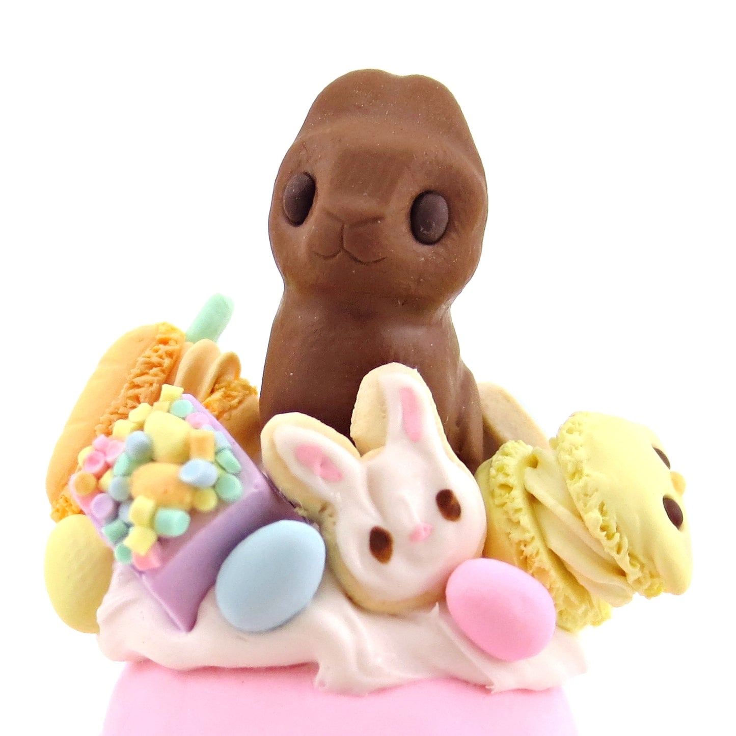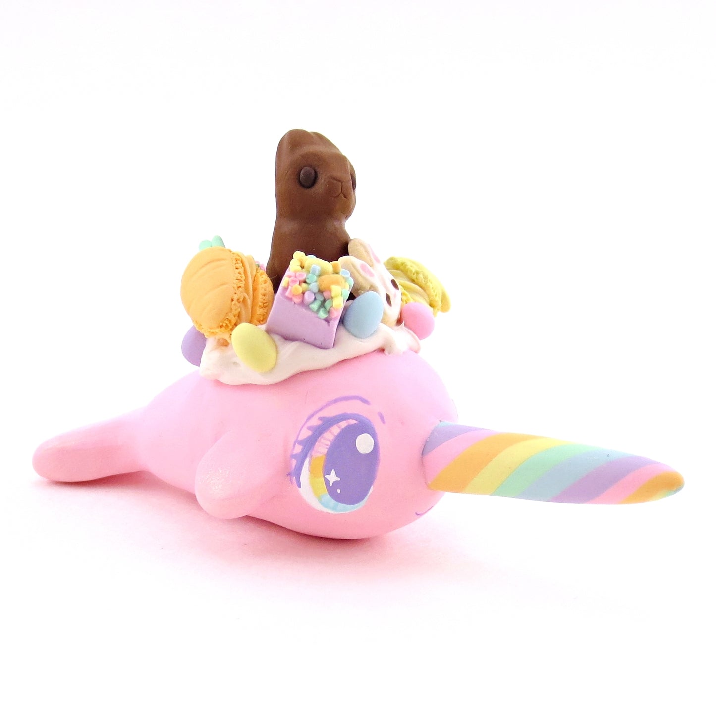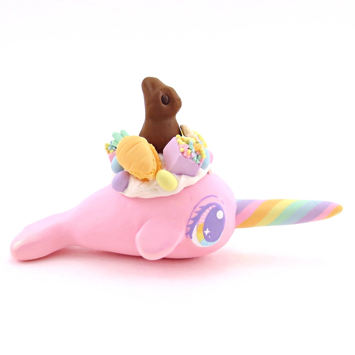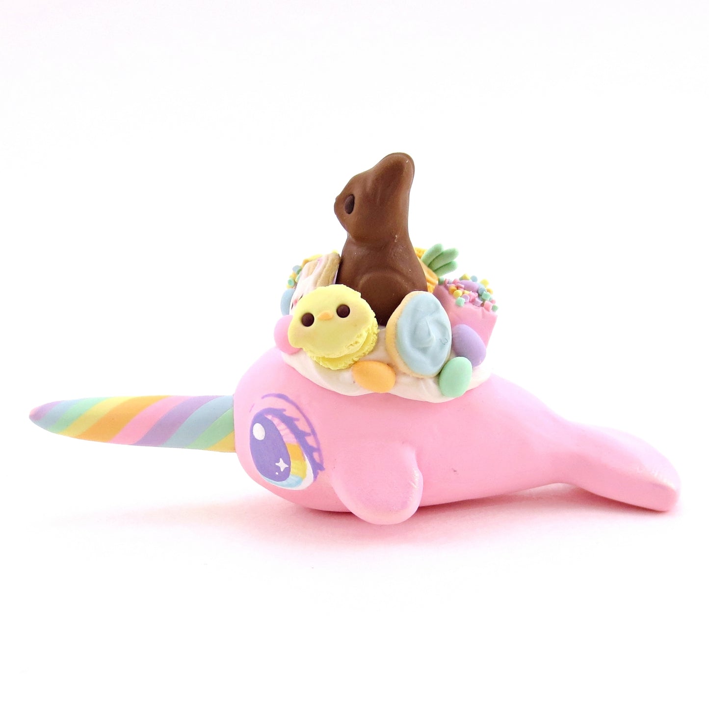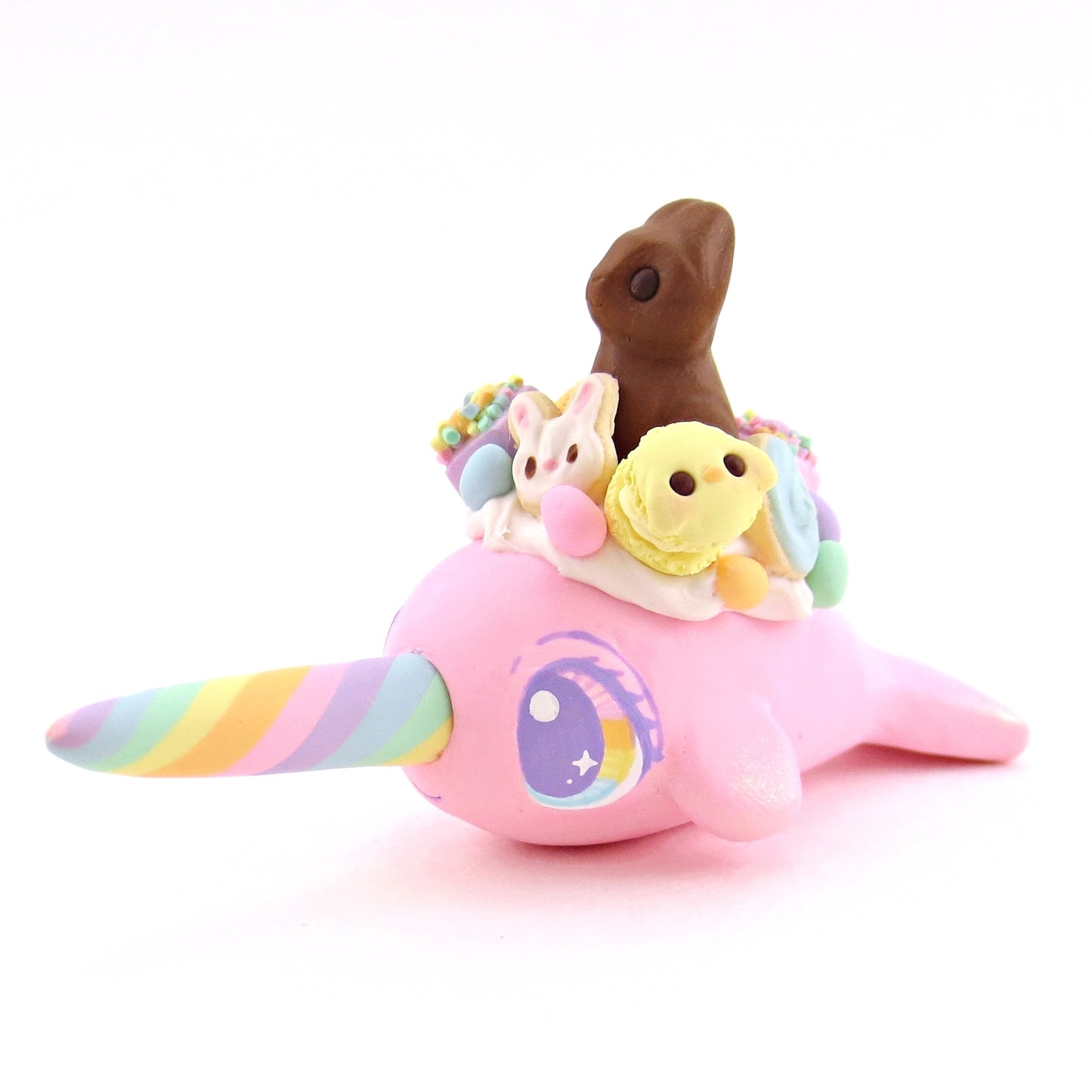 Pink Easter Dessert Narwhal Figurine - Polymer Clay Spring and Easter Animals