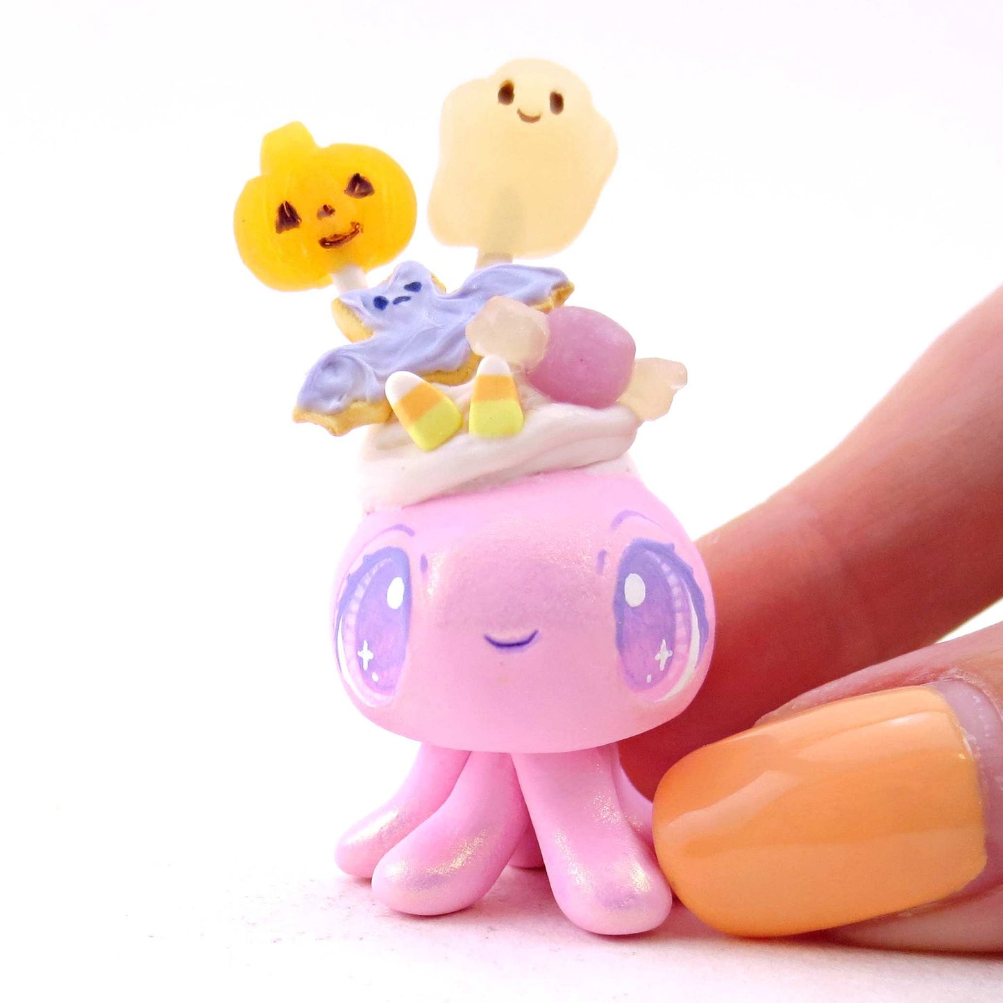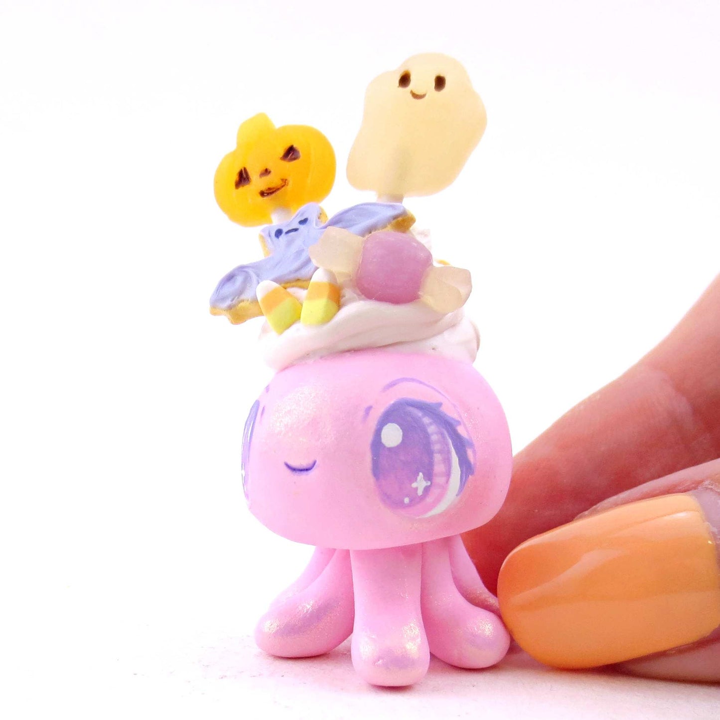 Pink Halloween Dessert Jellyfish Figurine - Polymer Clay Spooky Season Animal Collection
