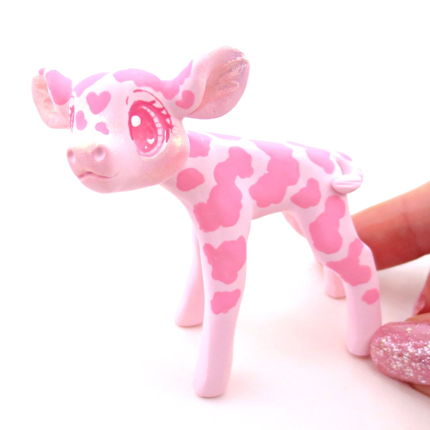 "Pinkies" Cow Figurine - Polymer Clay Valentine's Day Animal Collection