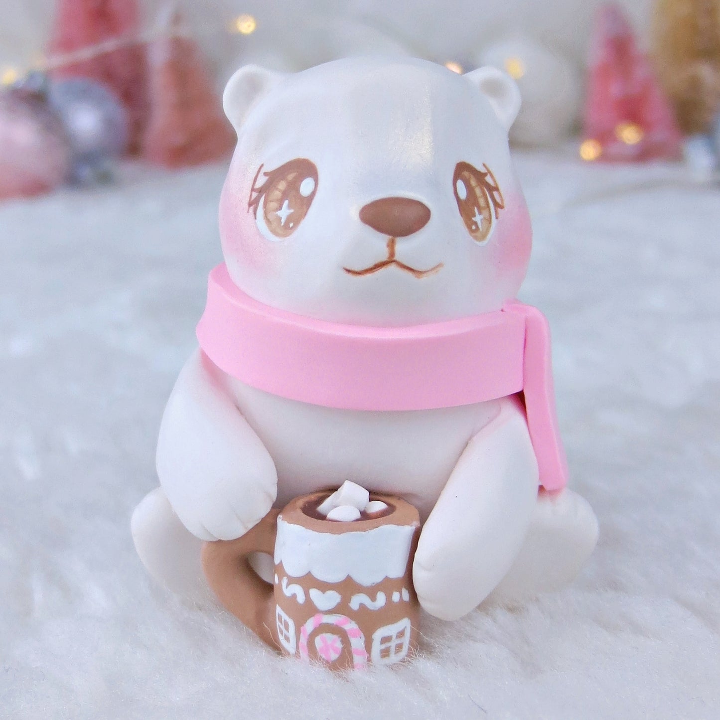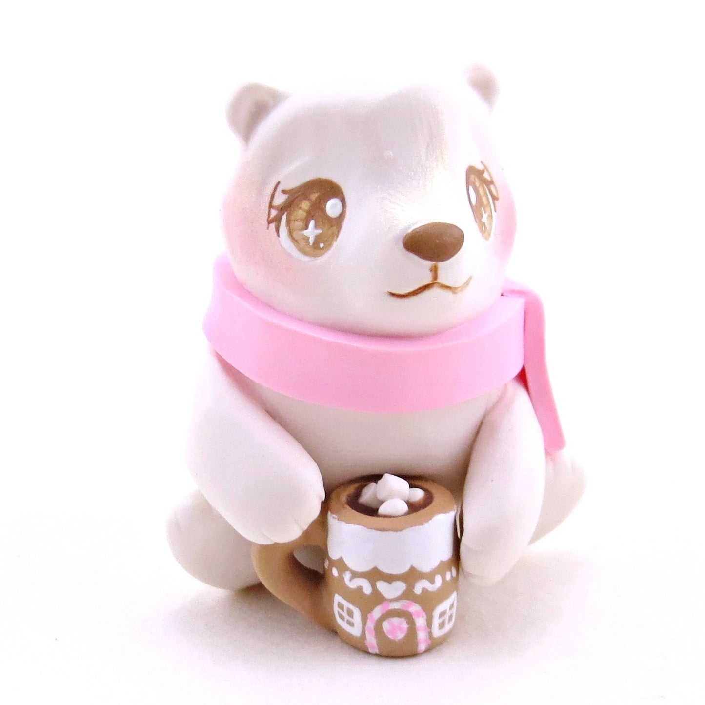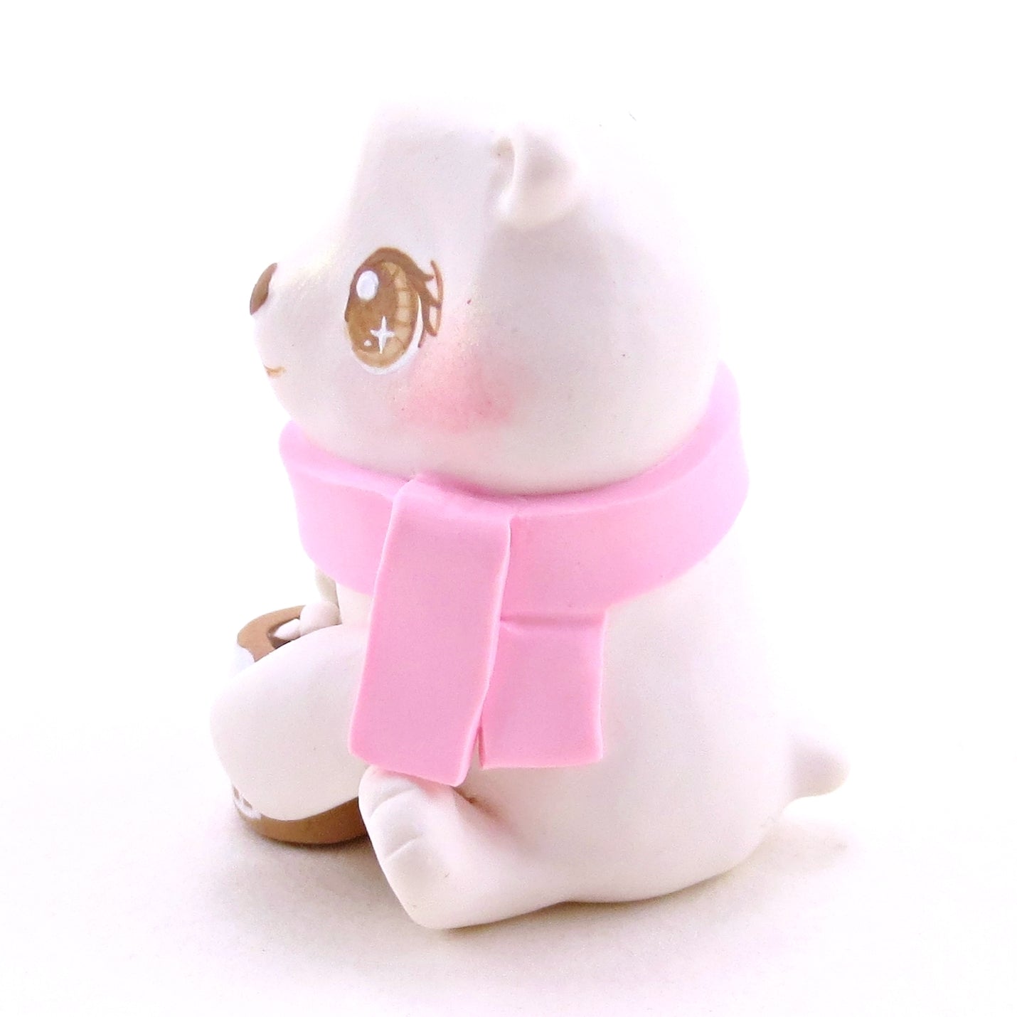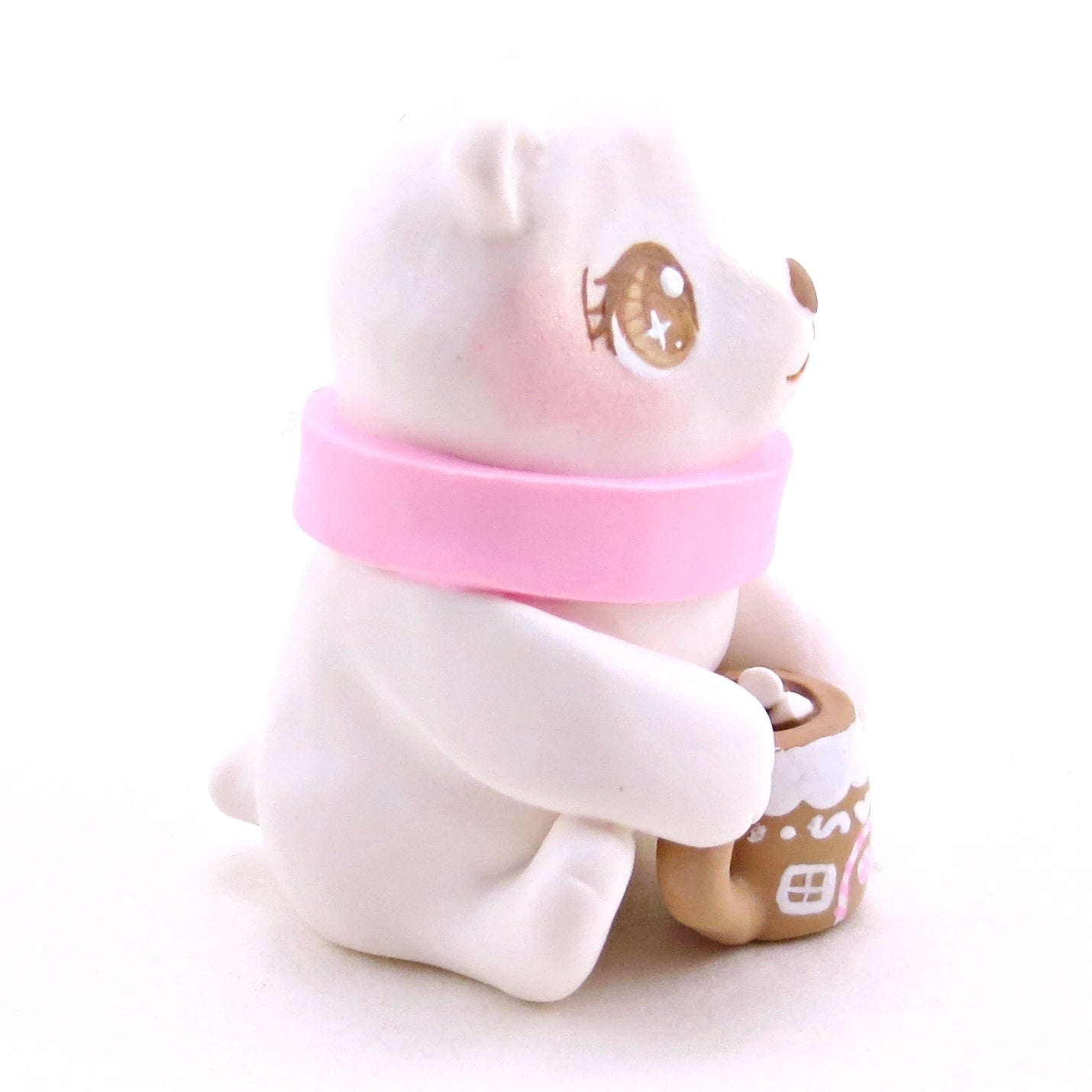 Polar Bear with a Pink Gingerbread House Hot Cocoa Mug Figurine - Polymer Clay Christmas Collection