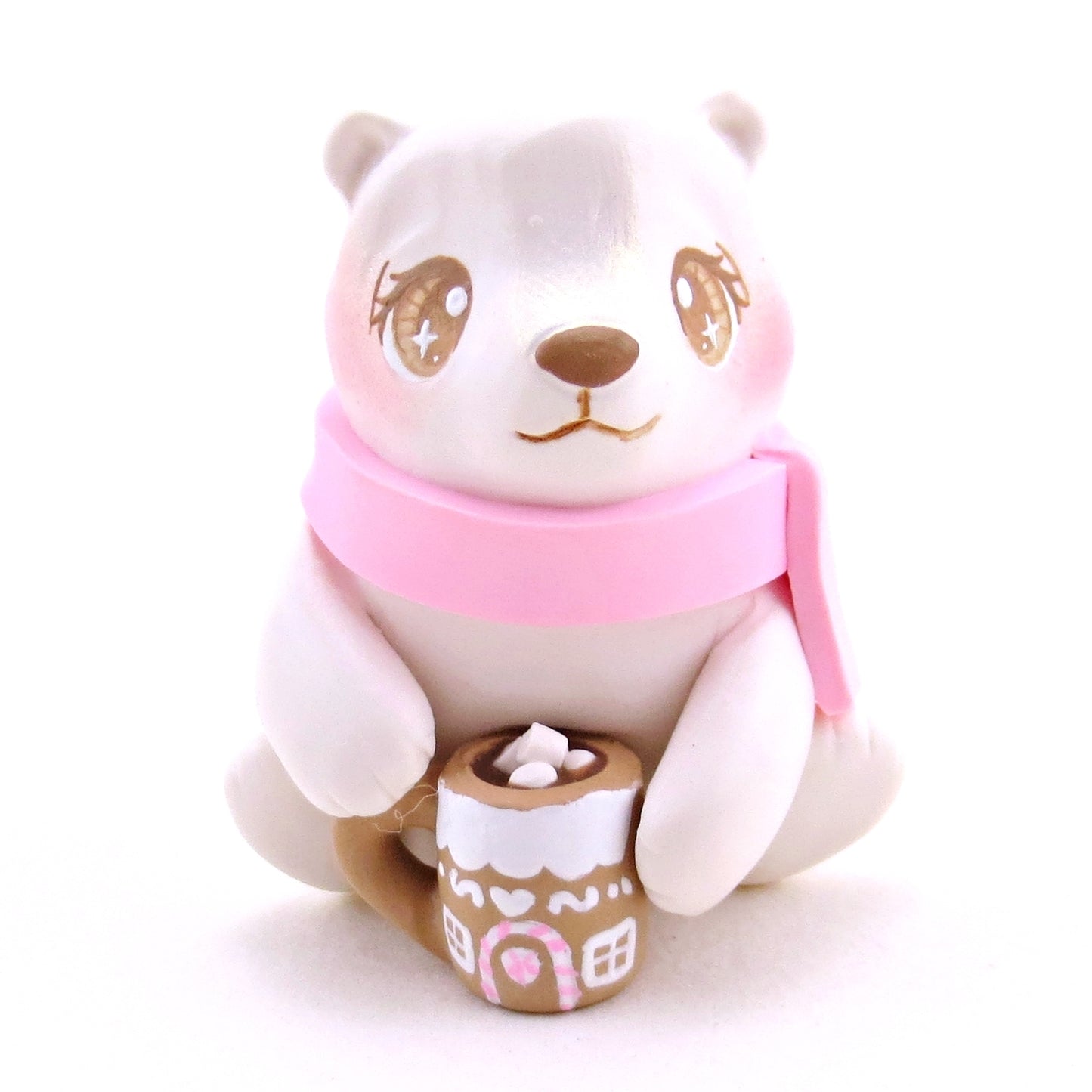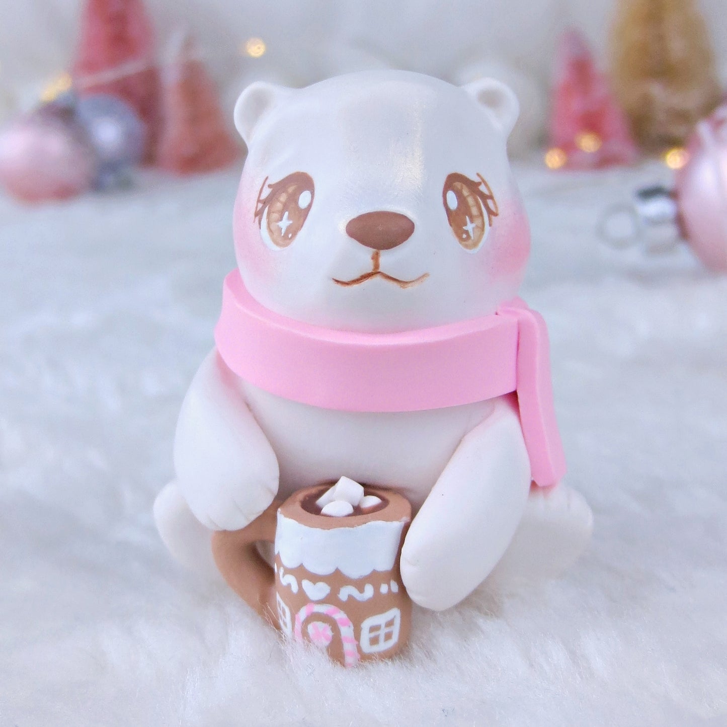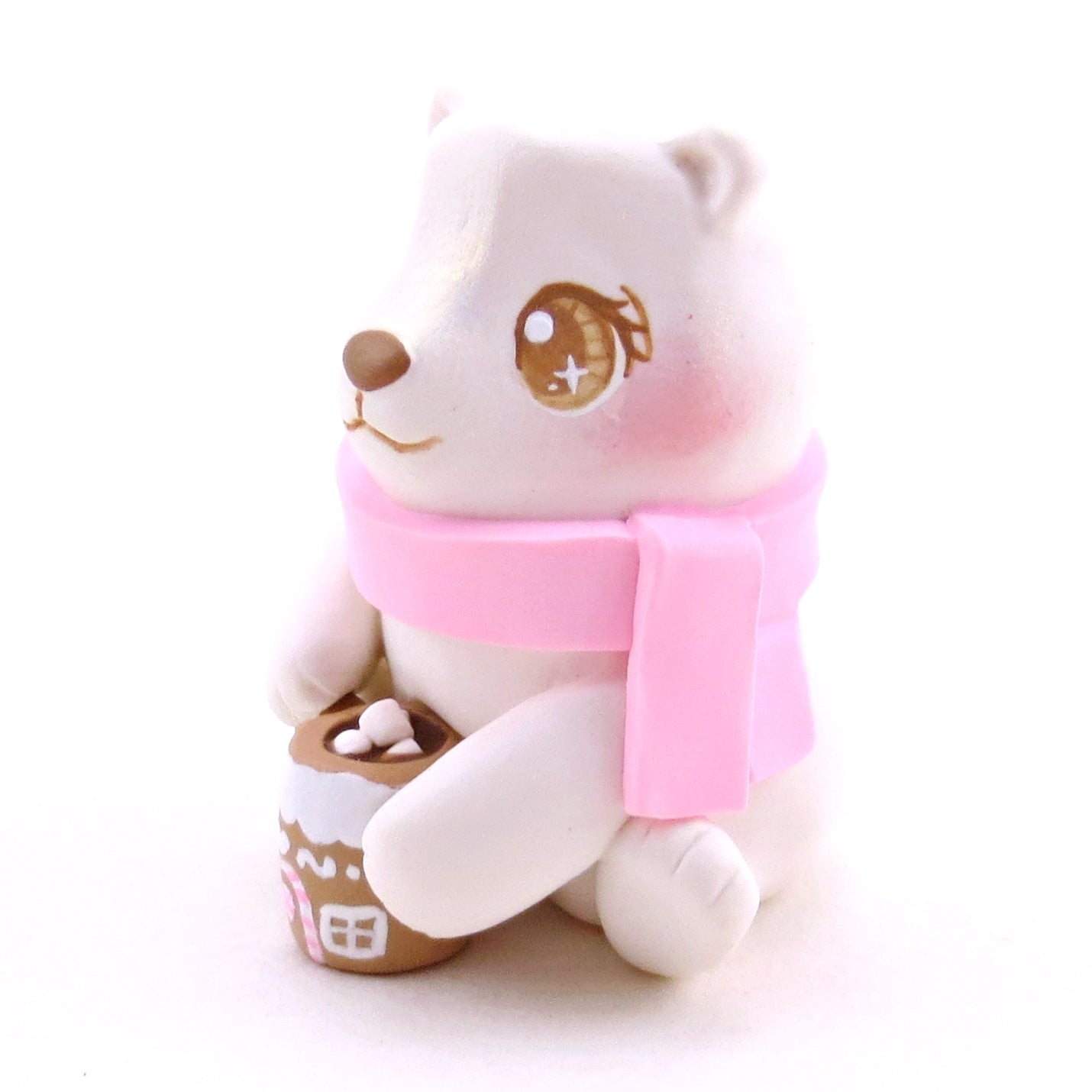 Polar Bear with a Pink Gingerbread House Hot Cocoa Mug Figurine - Polymer Clay Christmas Collection