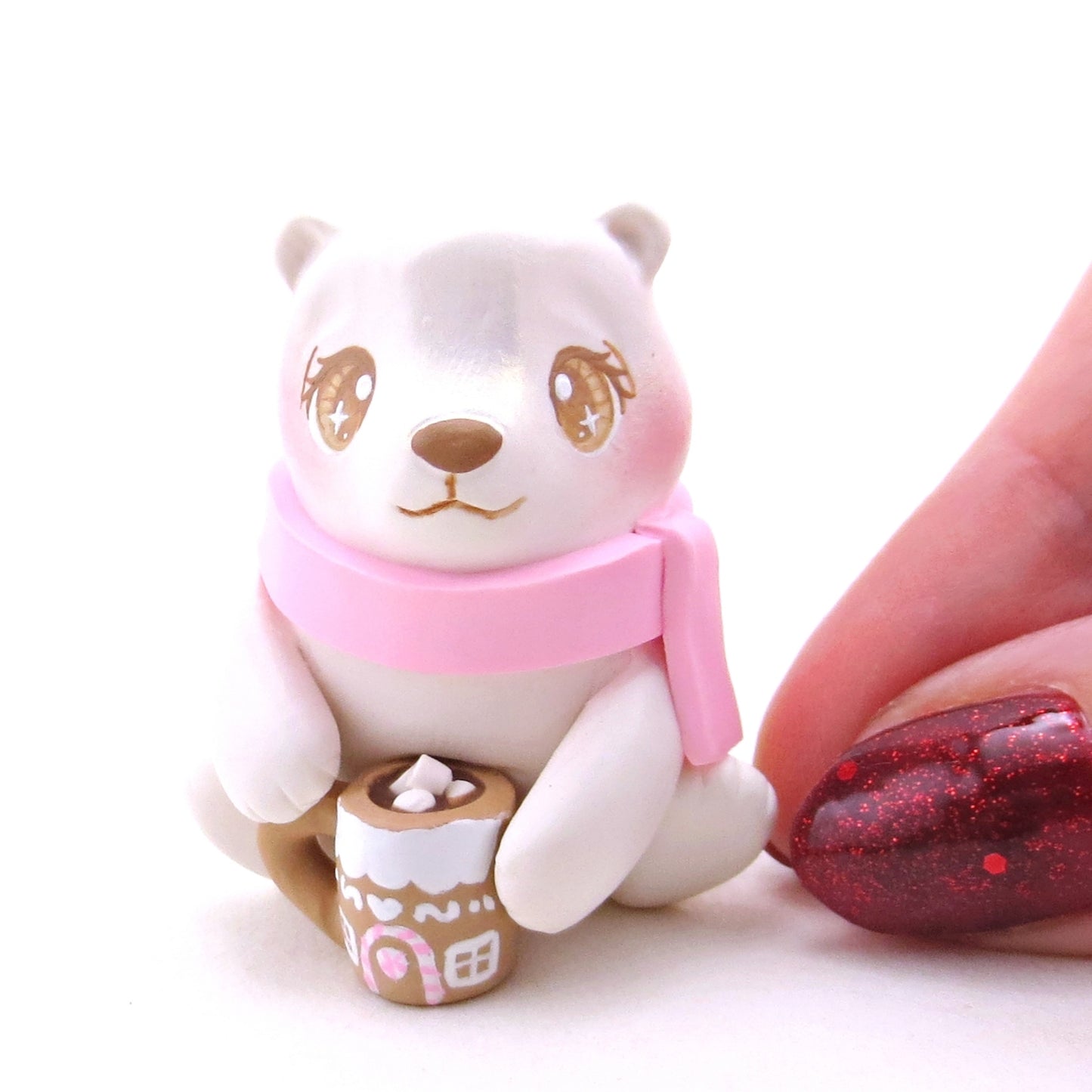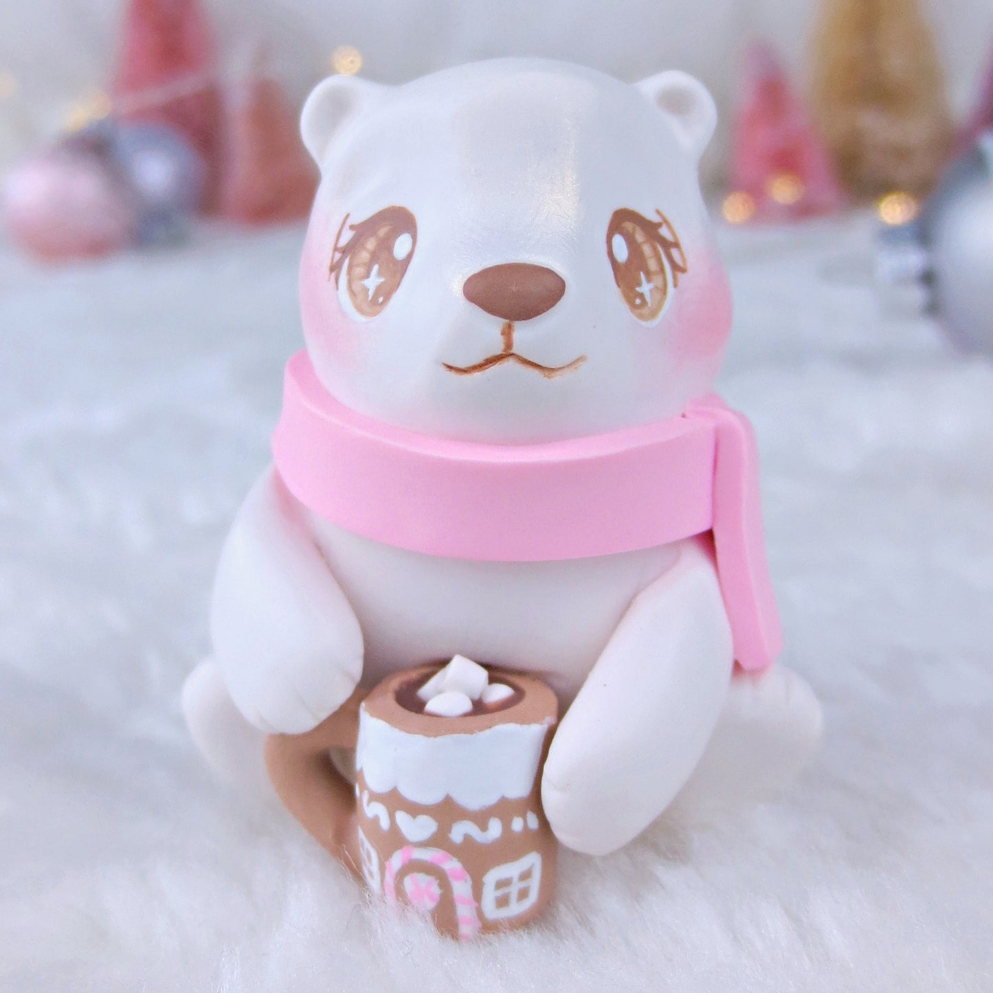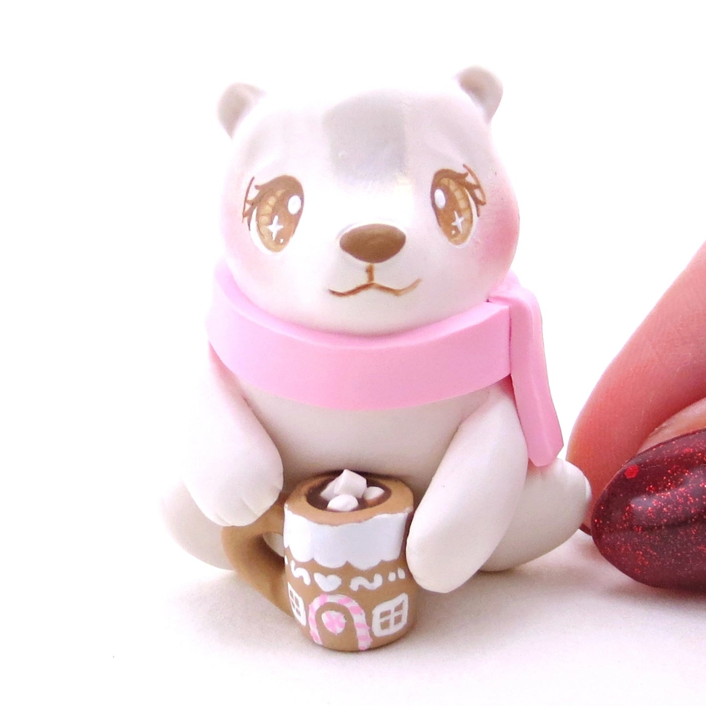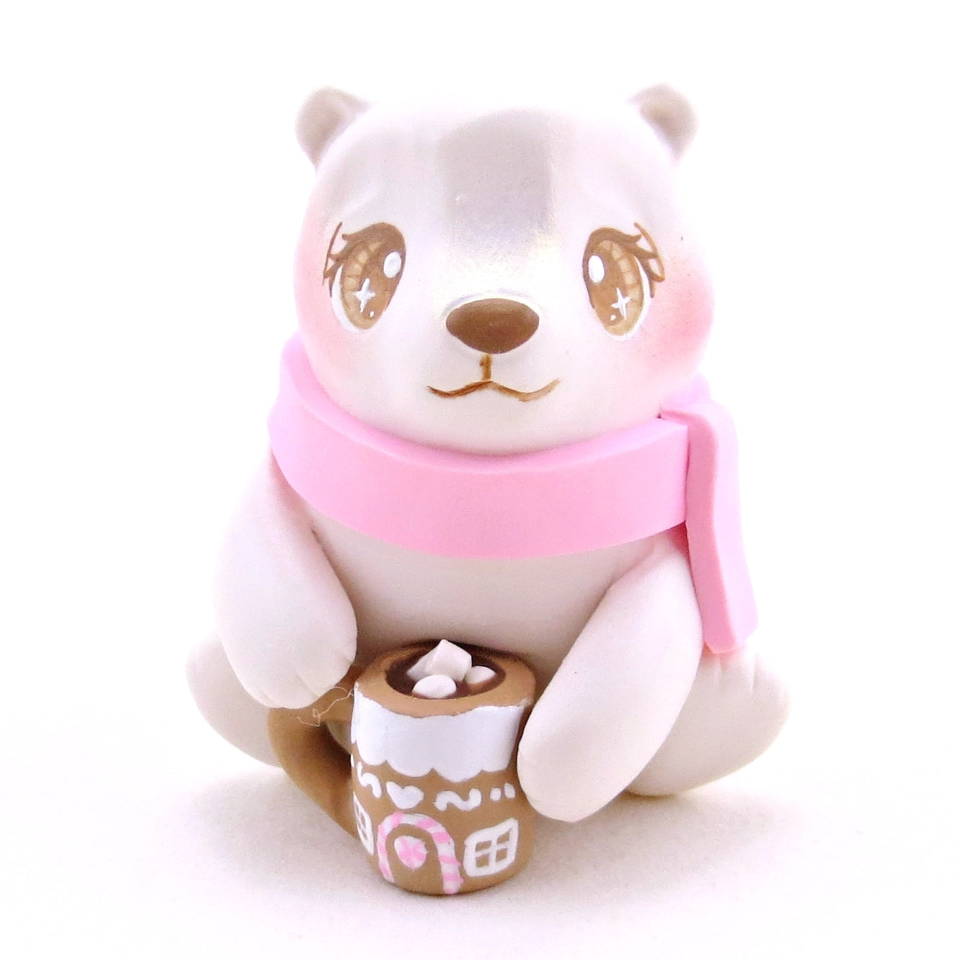 Polar Bear with a Pink Gingerbread House Hot Cocoa Mug Figurine - Polymer Clay Christmas Collection