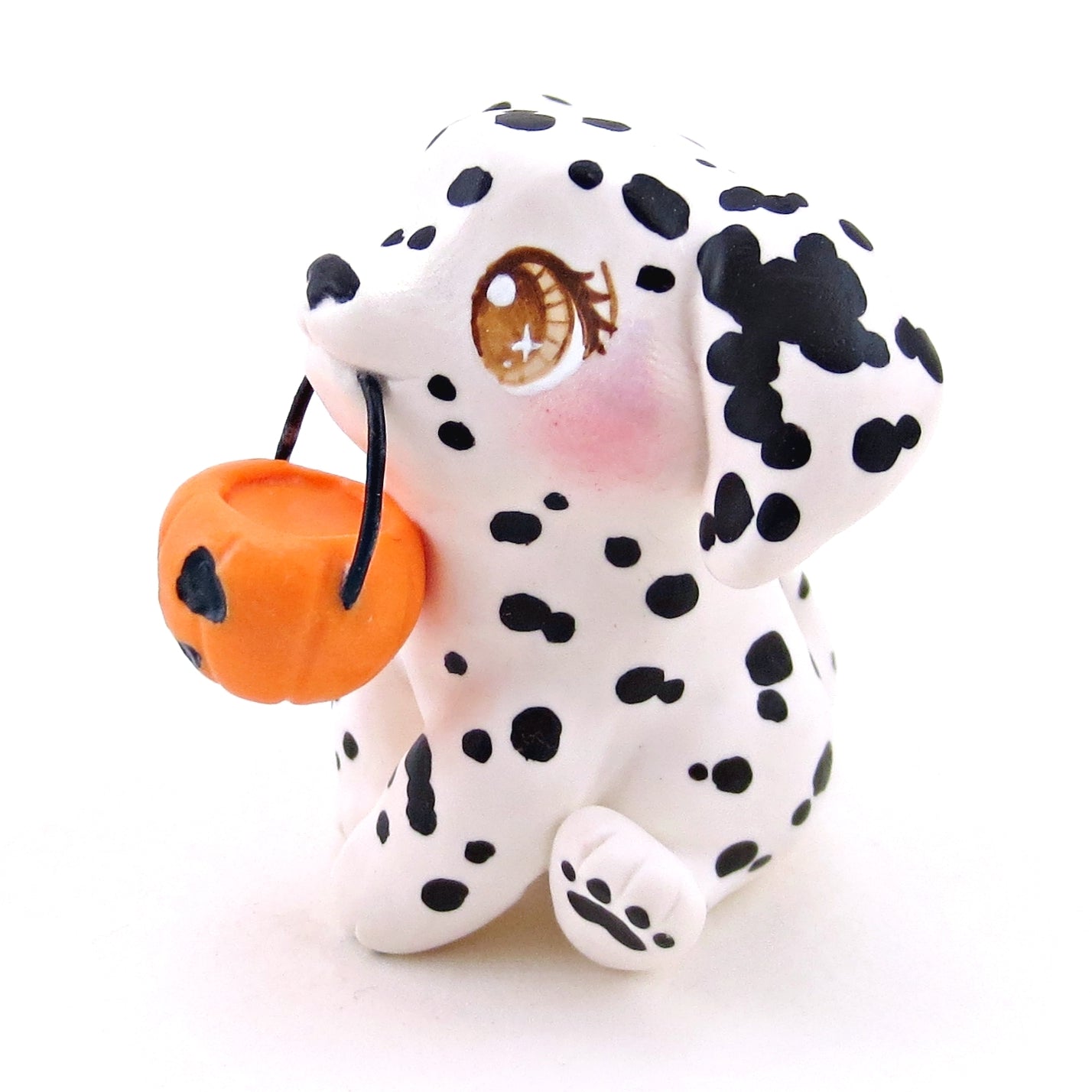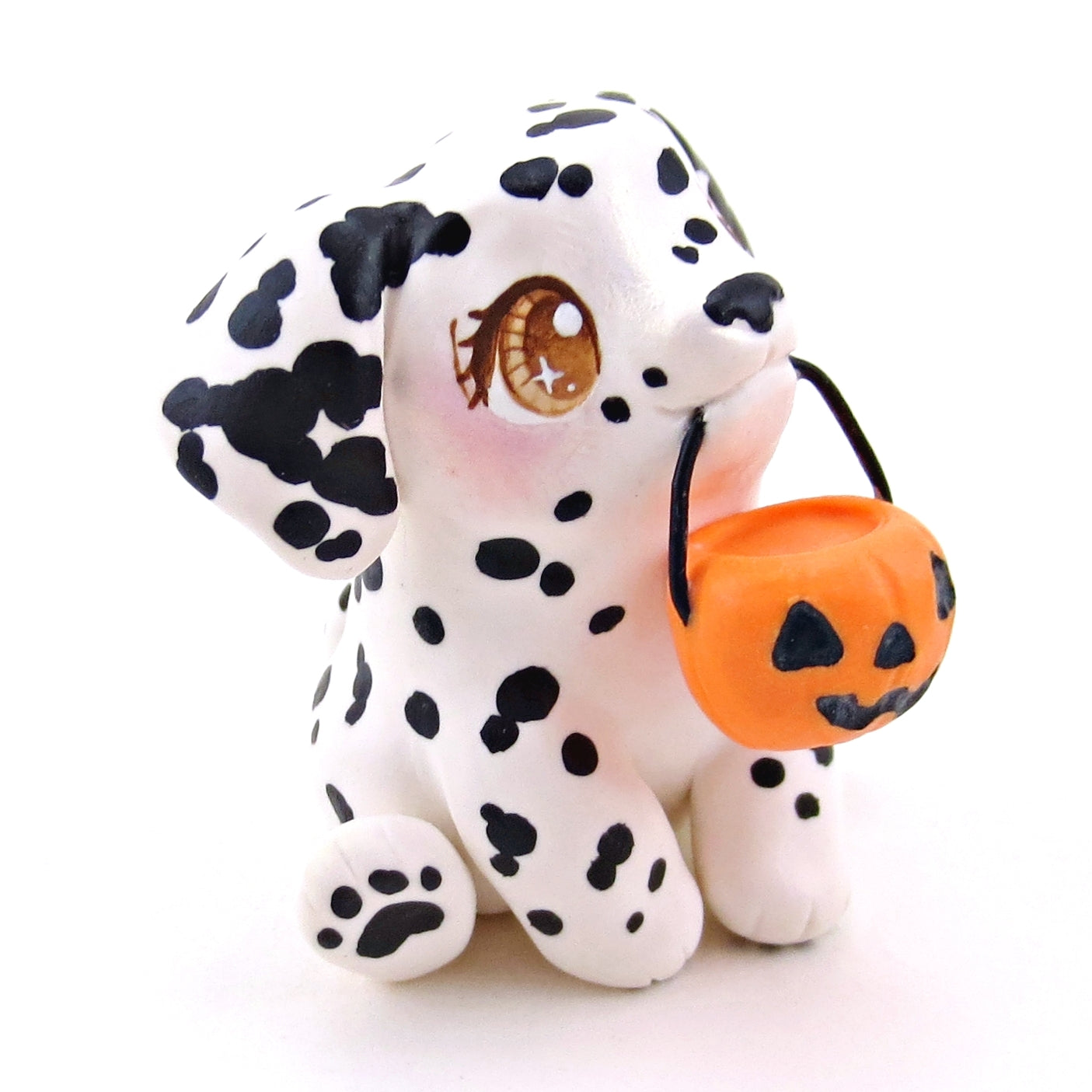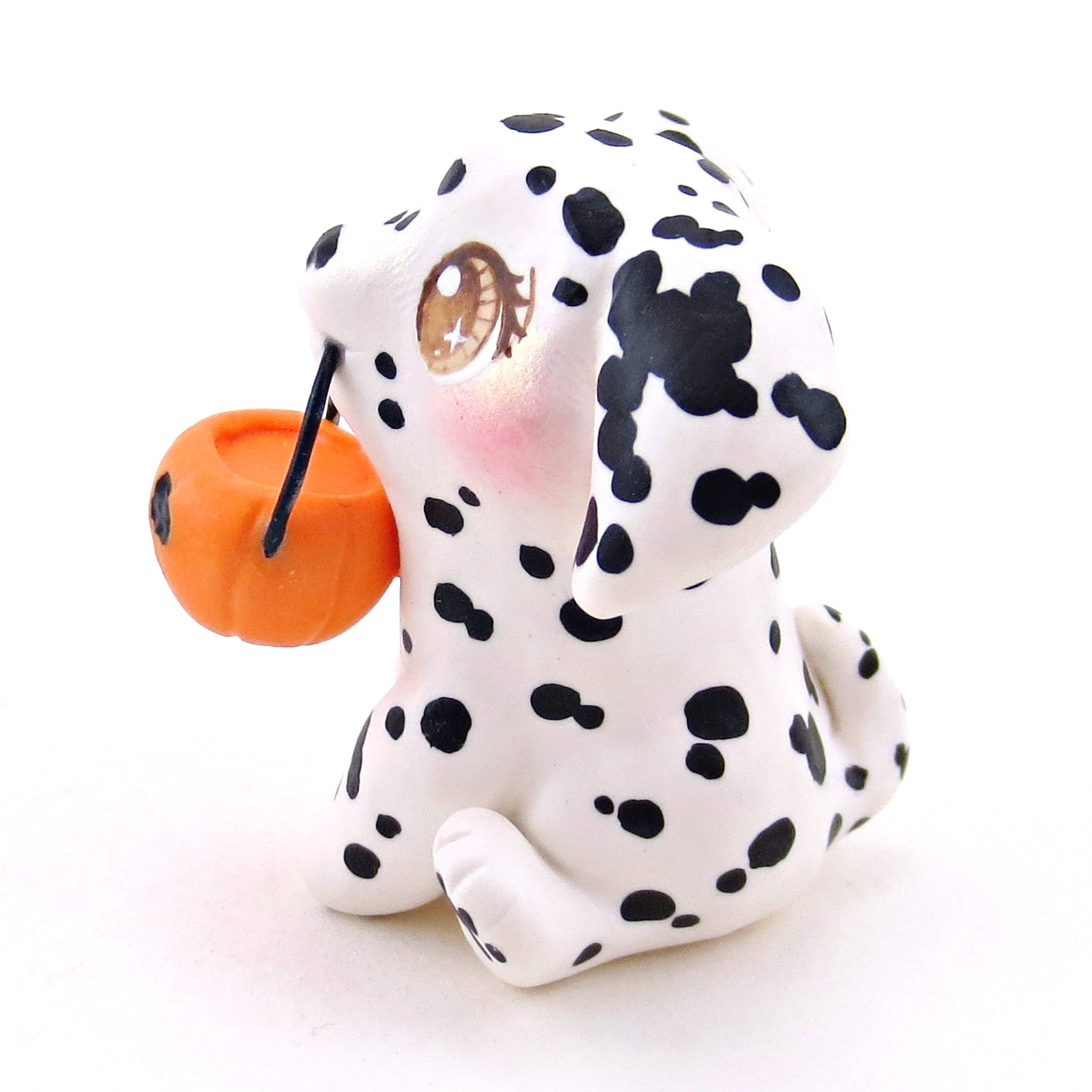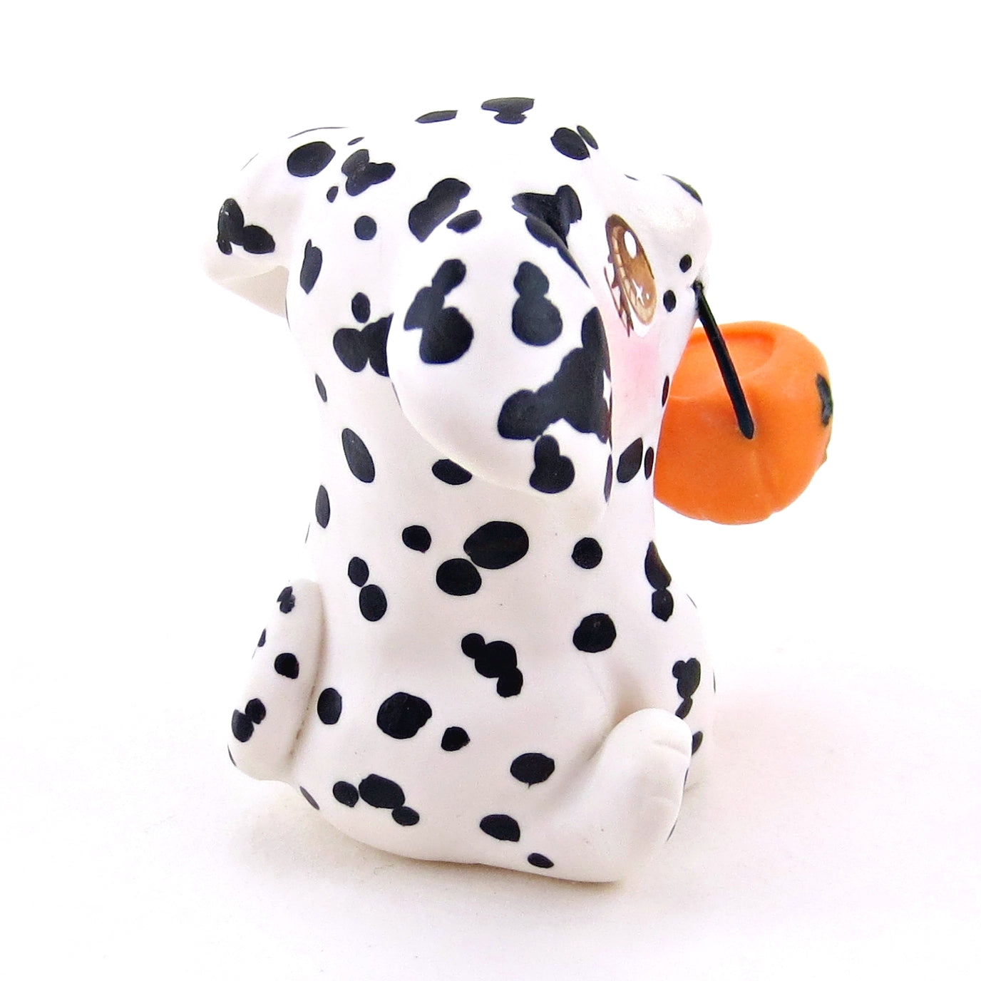 Pumpkin Pail Dalmatian Puppy Dog Figurine - Polymer Clay Animals Fall and Halloween Collection