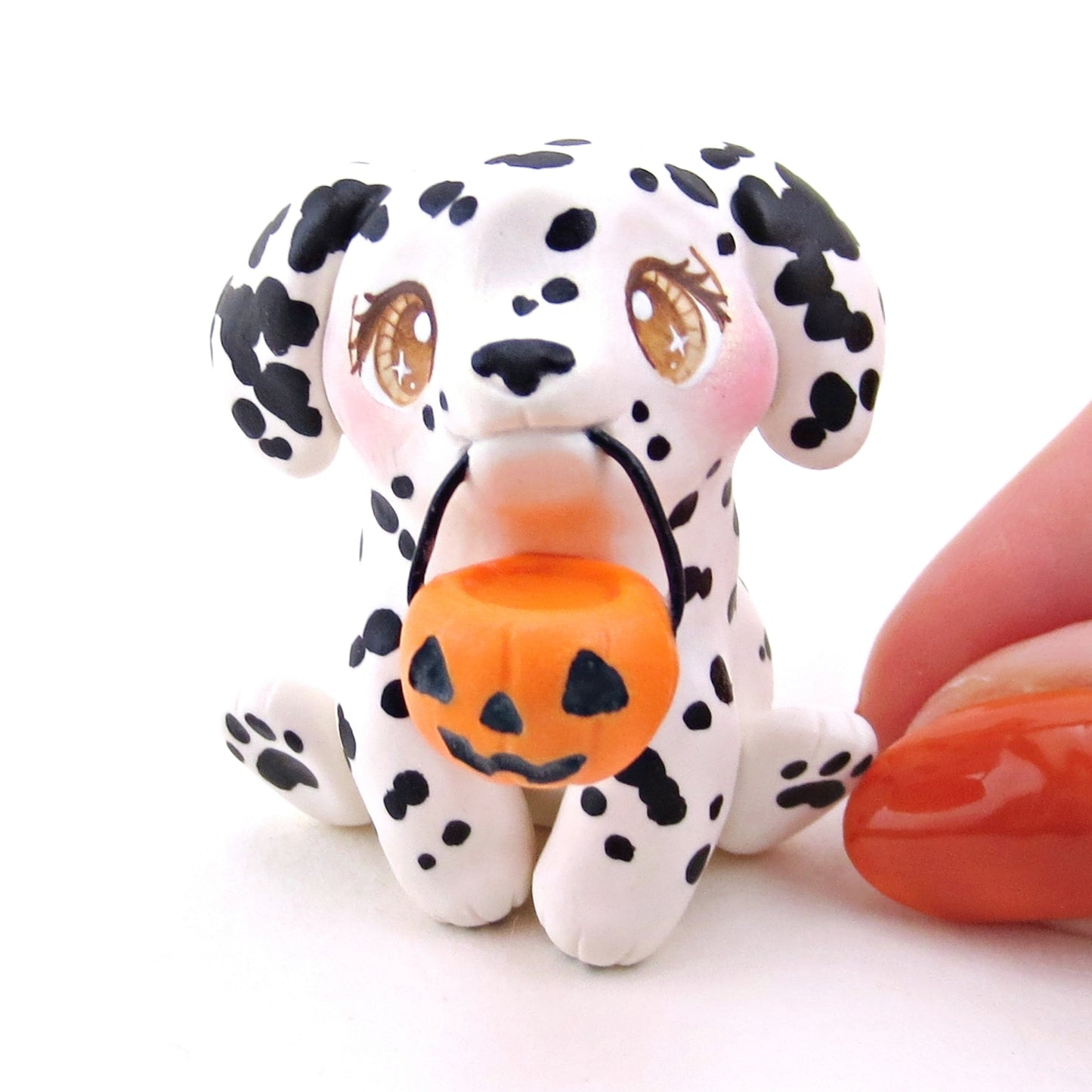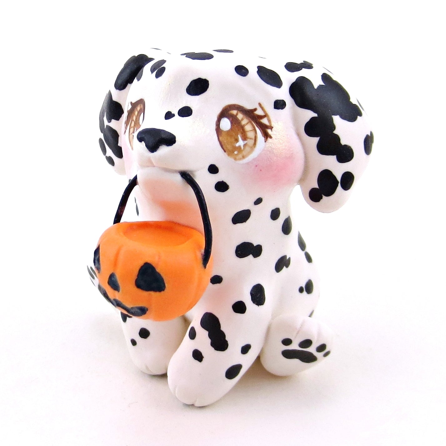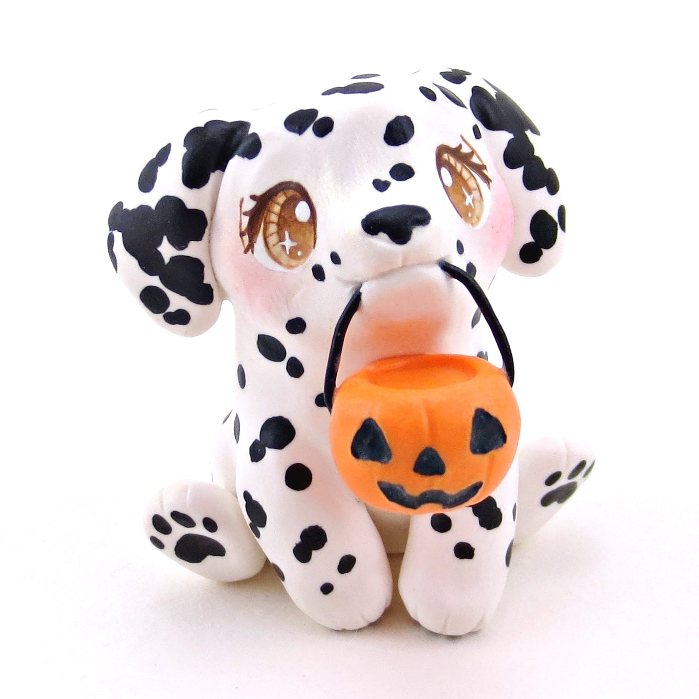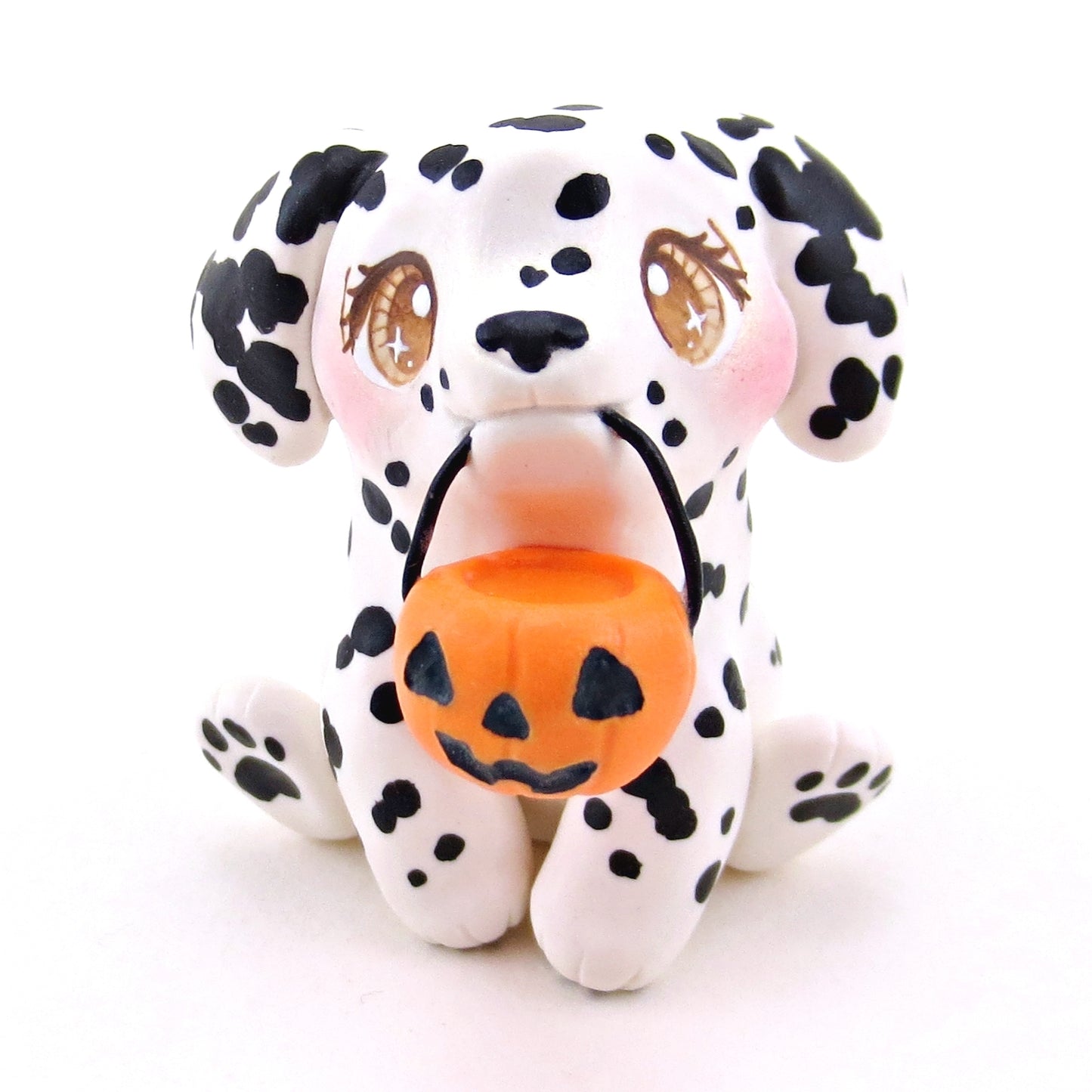 Pumpkin Pail Dalmatian Puppy Dog Figurine - Polymer Clay Animals Fall and Halloween Collection