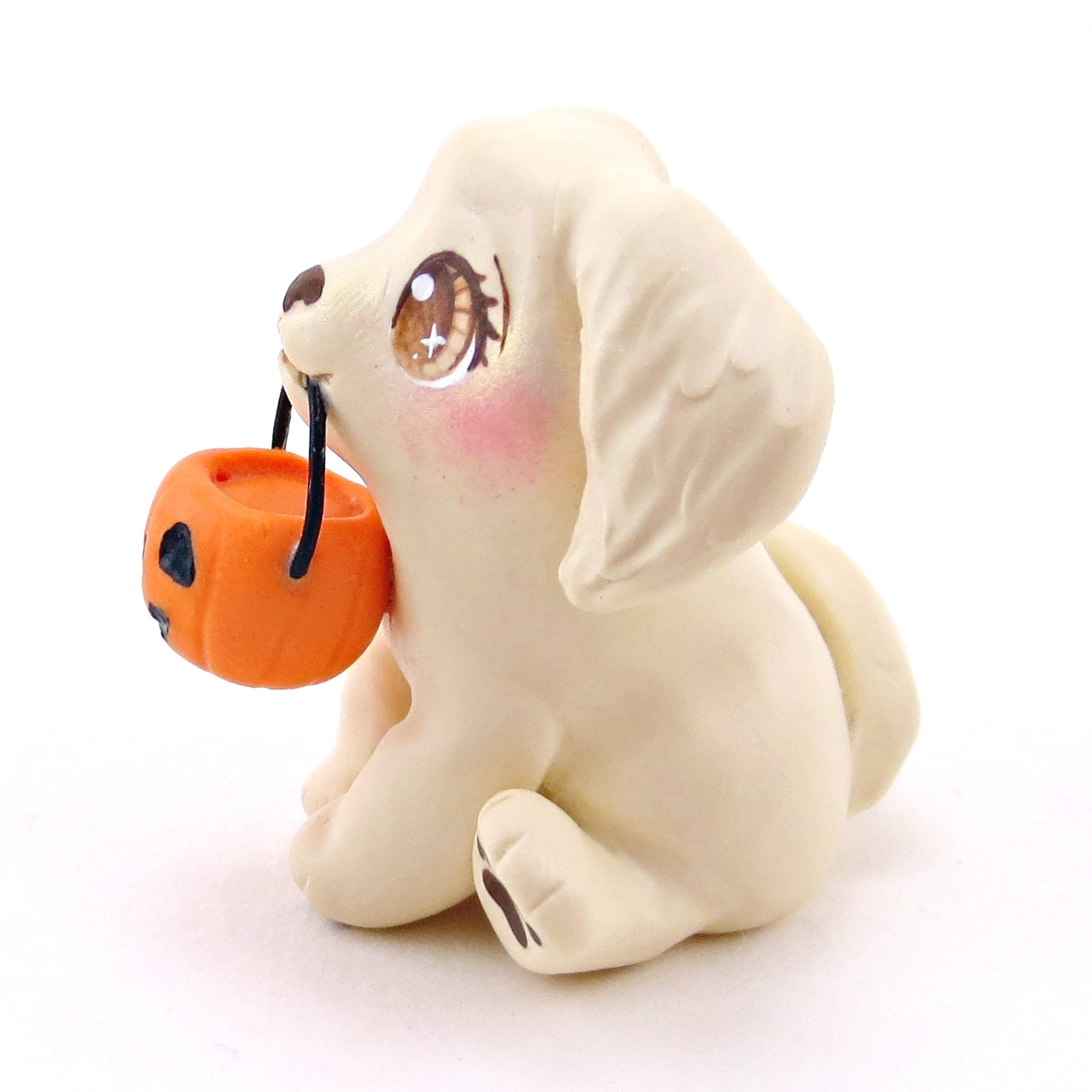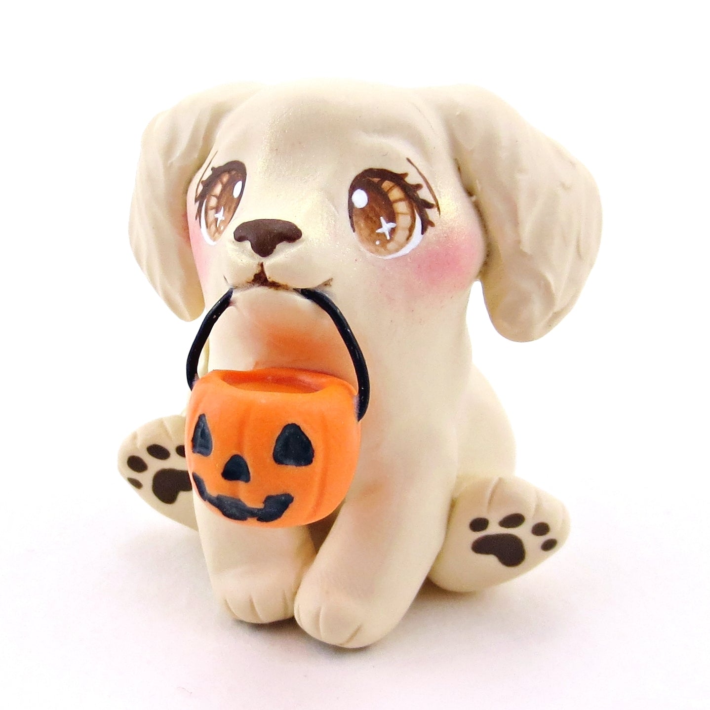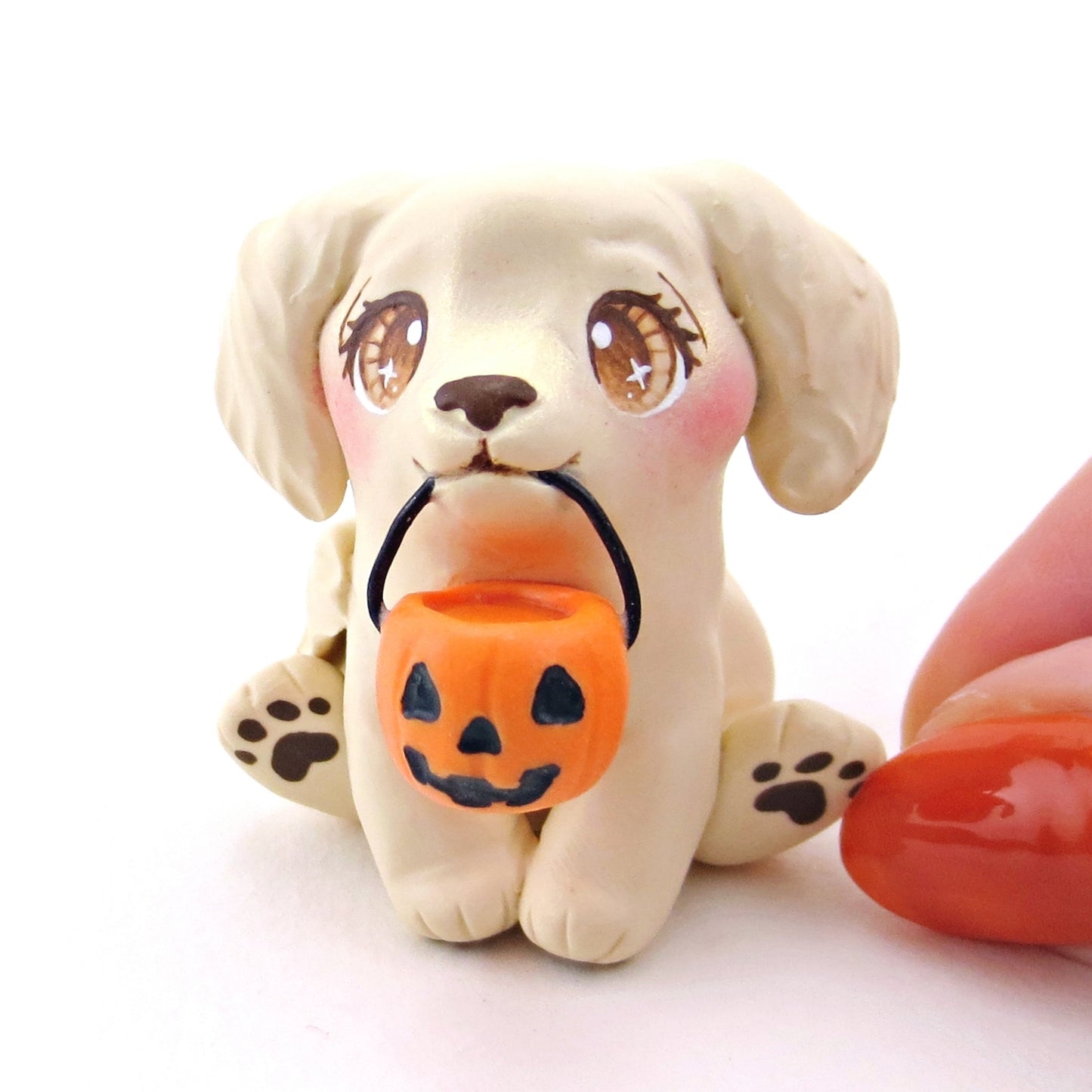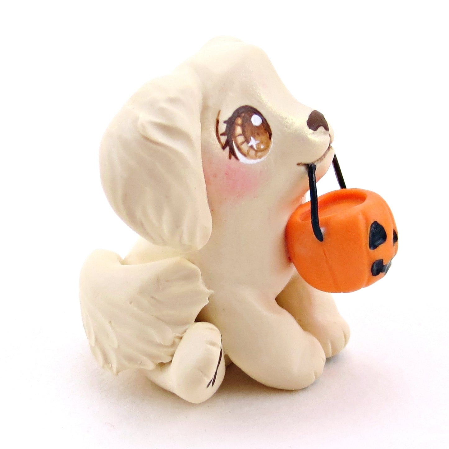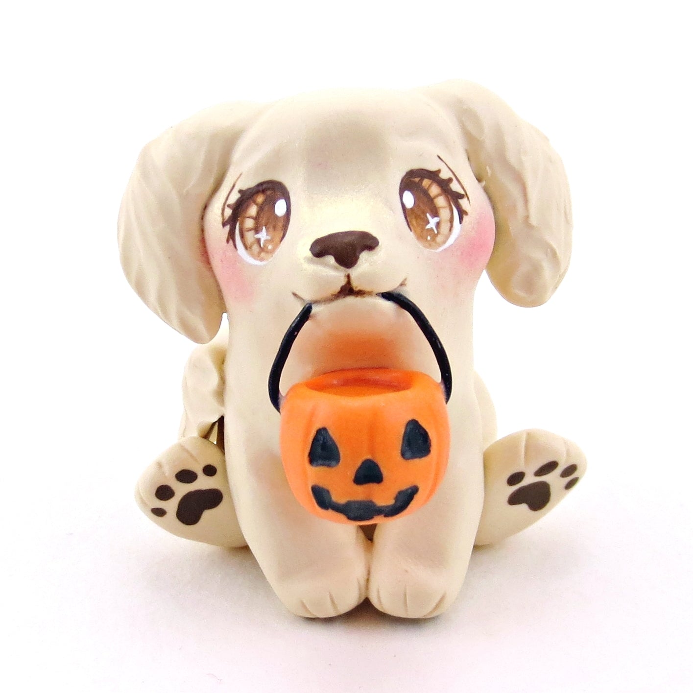 Pumpkin Pail Golden Retriever Puppy Dog Figurine - Polymer Clay Animals Fall and Halloween Collection