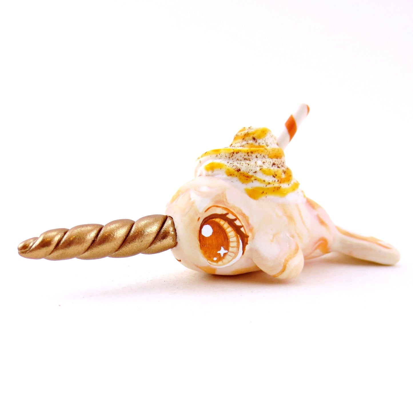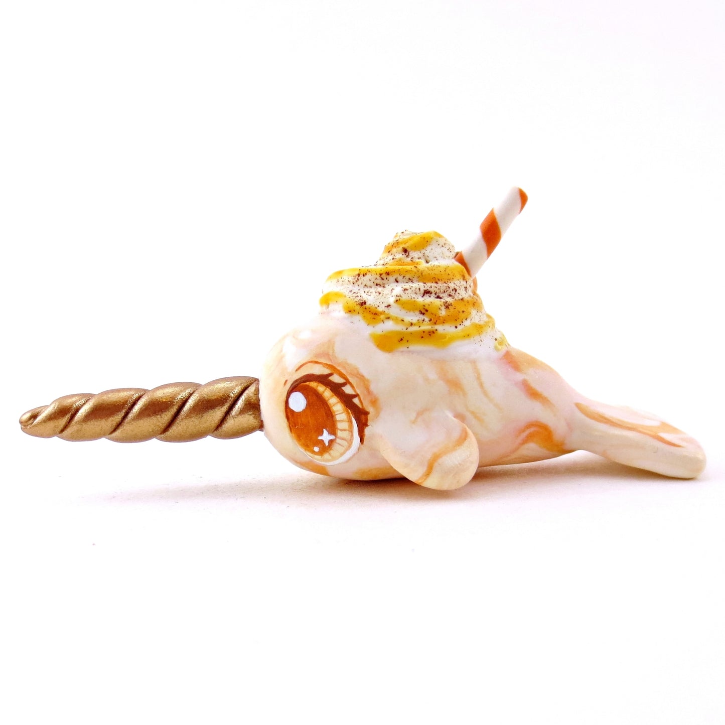 Pumpkin Spice Vanilla Swirl Narwhal Figurine - Polymer Clay Fall Animals