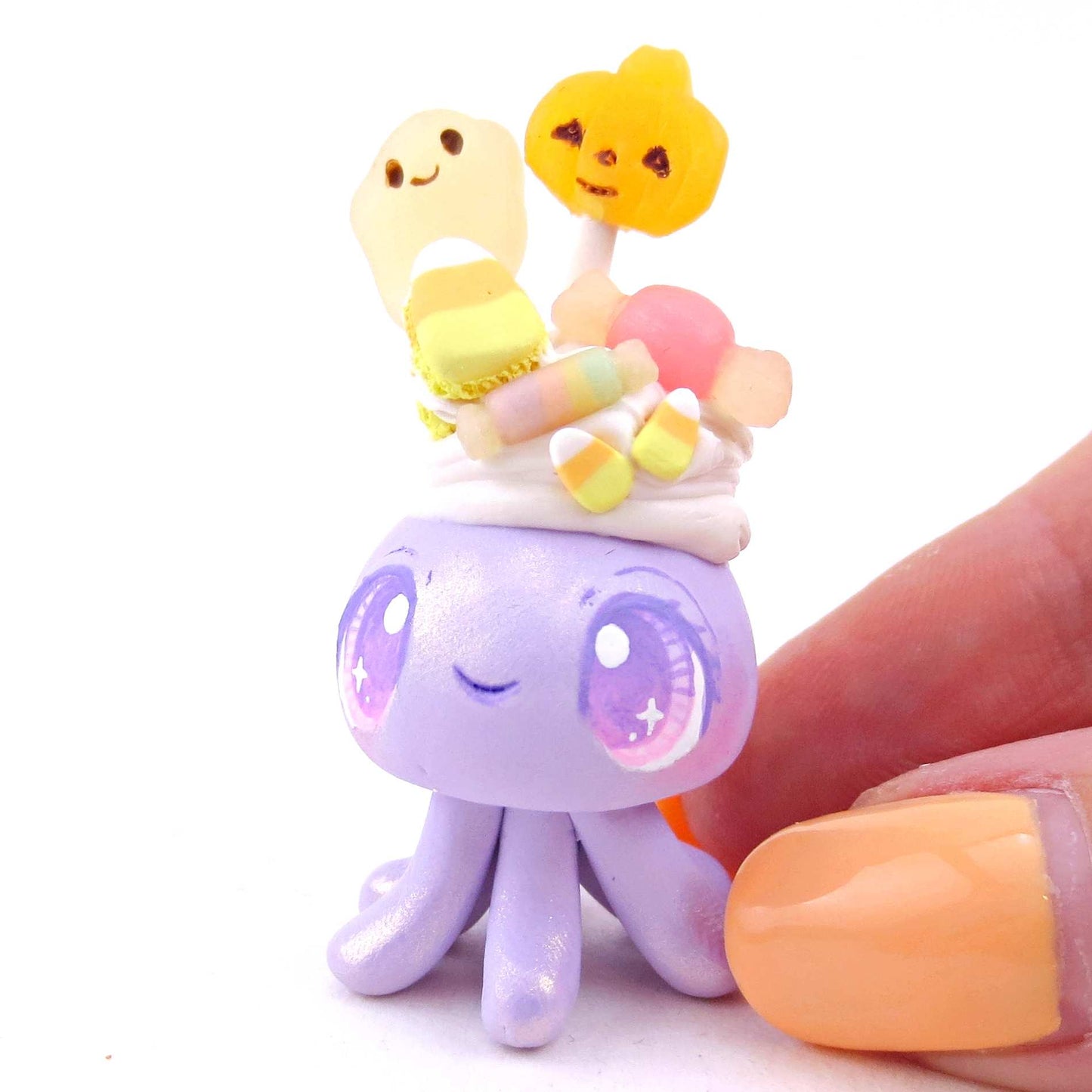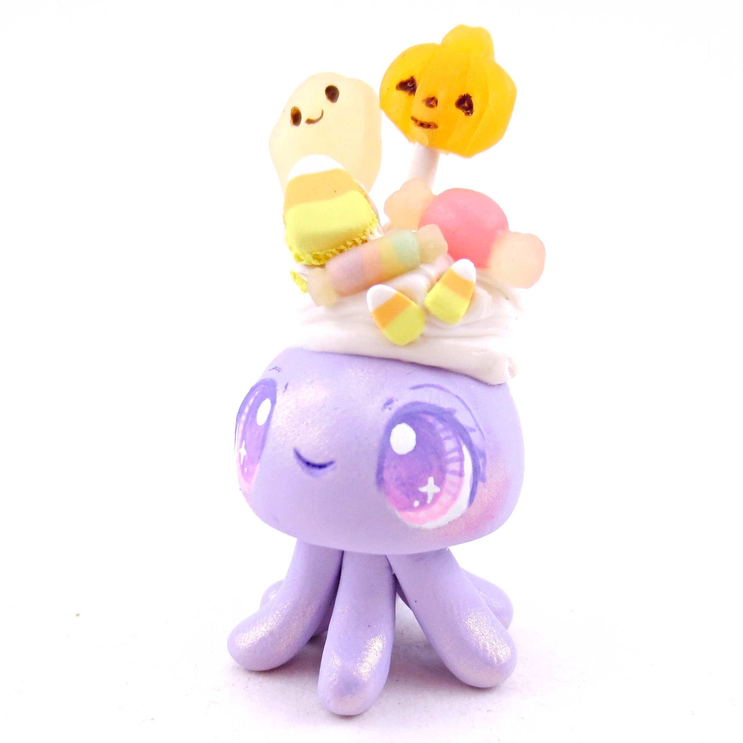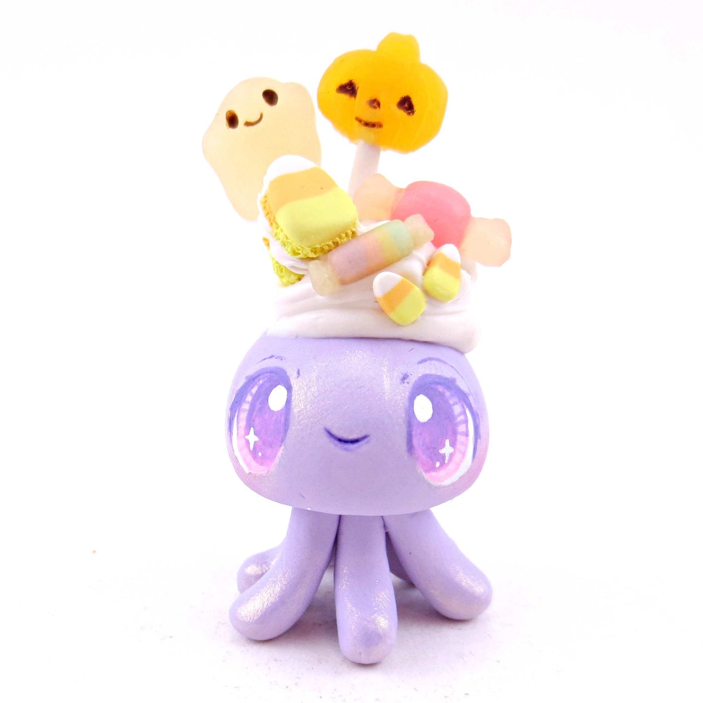 Purple Halloween Dessert Jellyfish Figurine - Polymer Clay Spooky Season Animal Collection