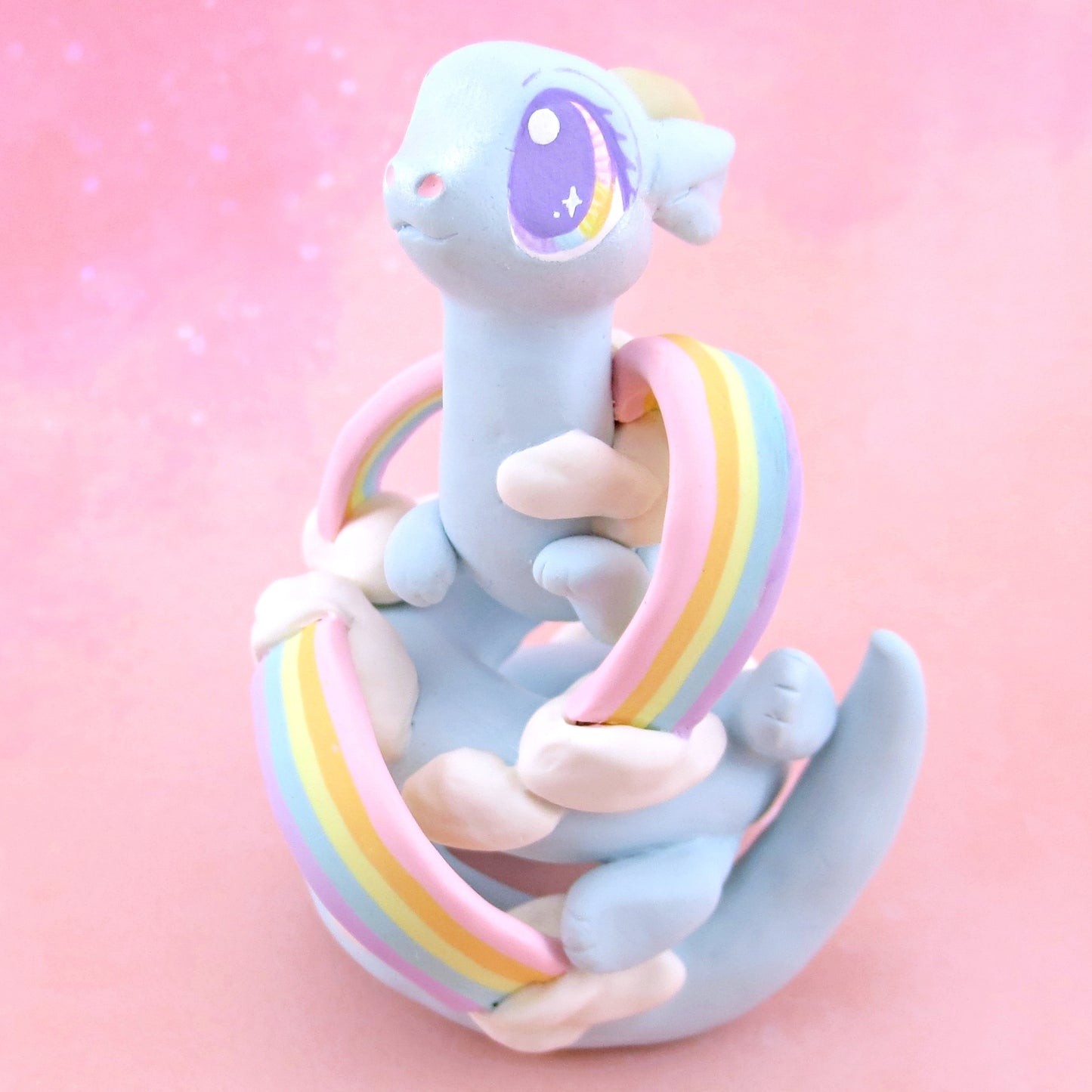 "Rainbow Dreamer" Cloud Noodle Dragon Figurine - Polymer Clay Animals