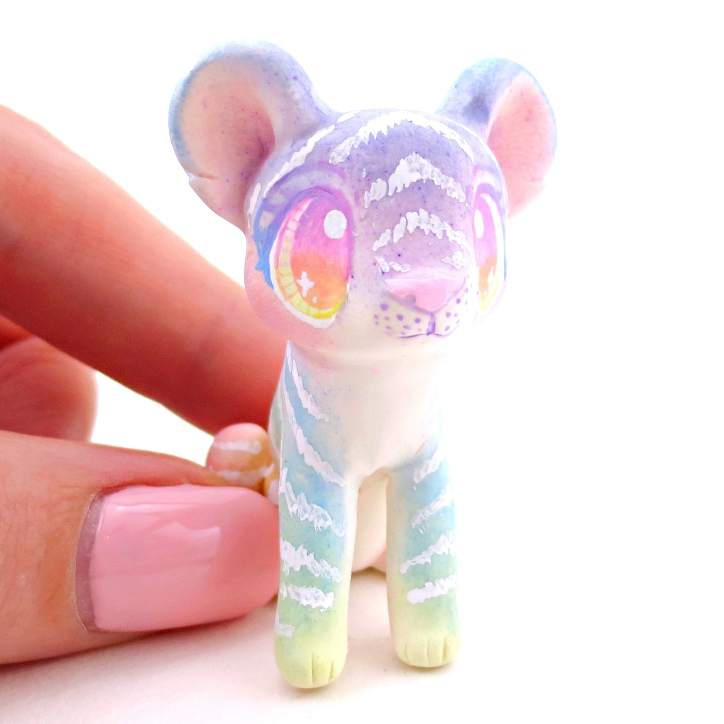 Rainbow Ombre Tiger Cub Figurine - Version 1 - Polymer Clay Rainbow Animals