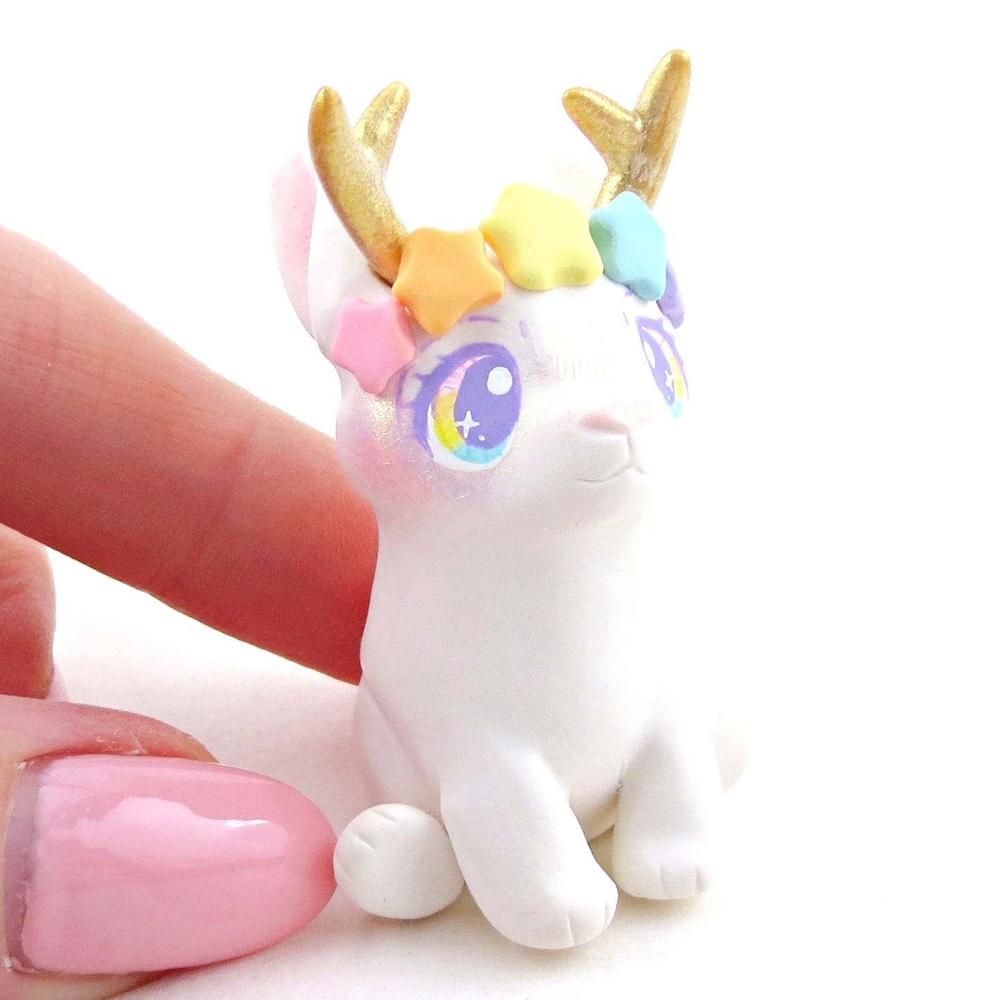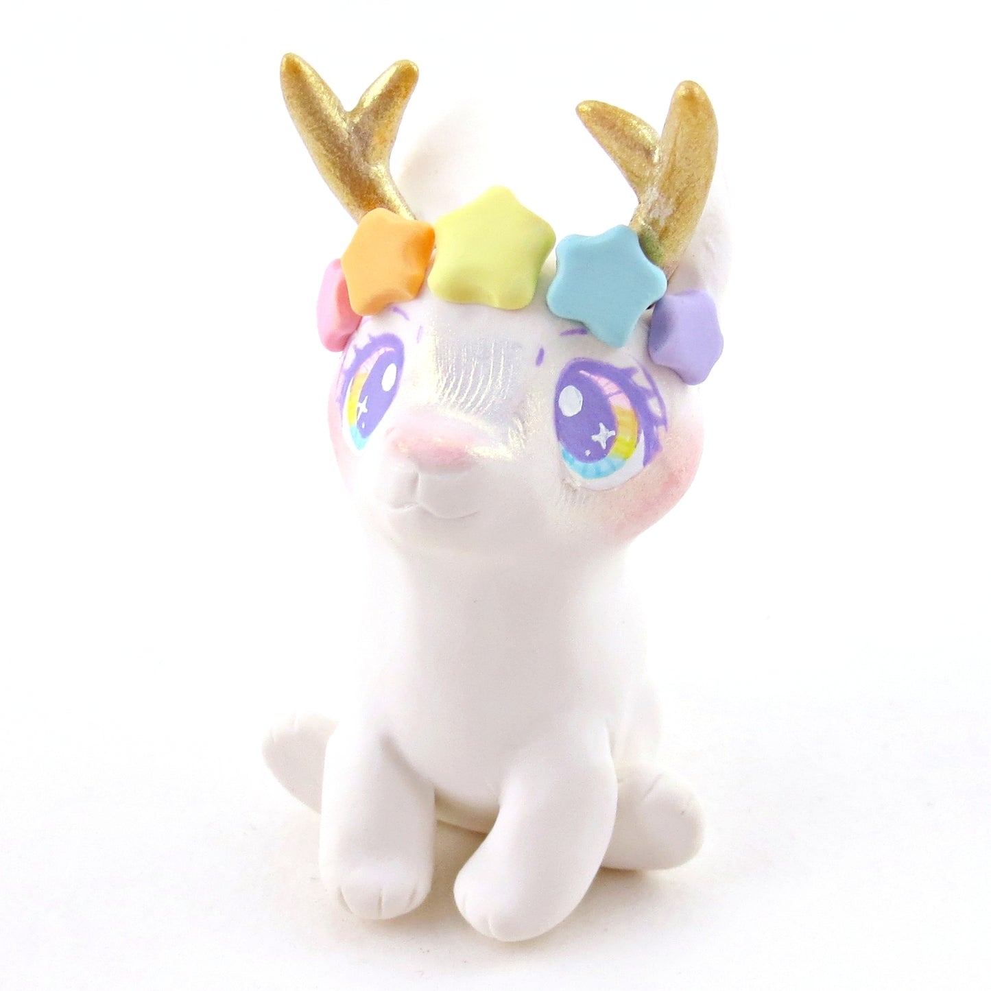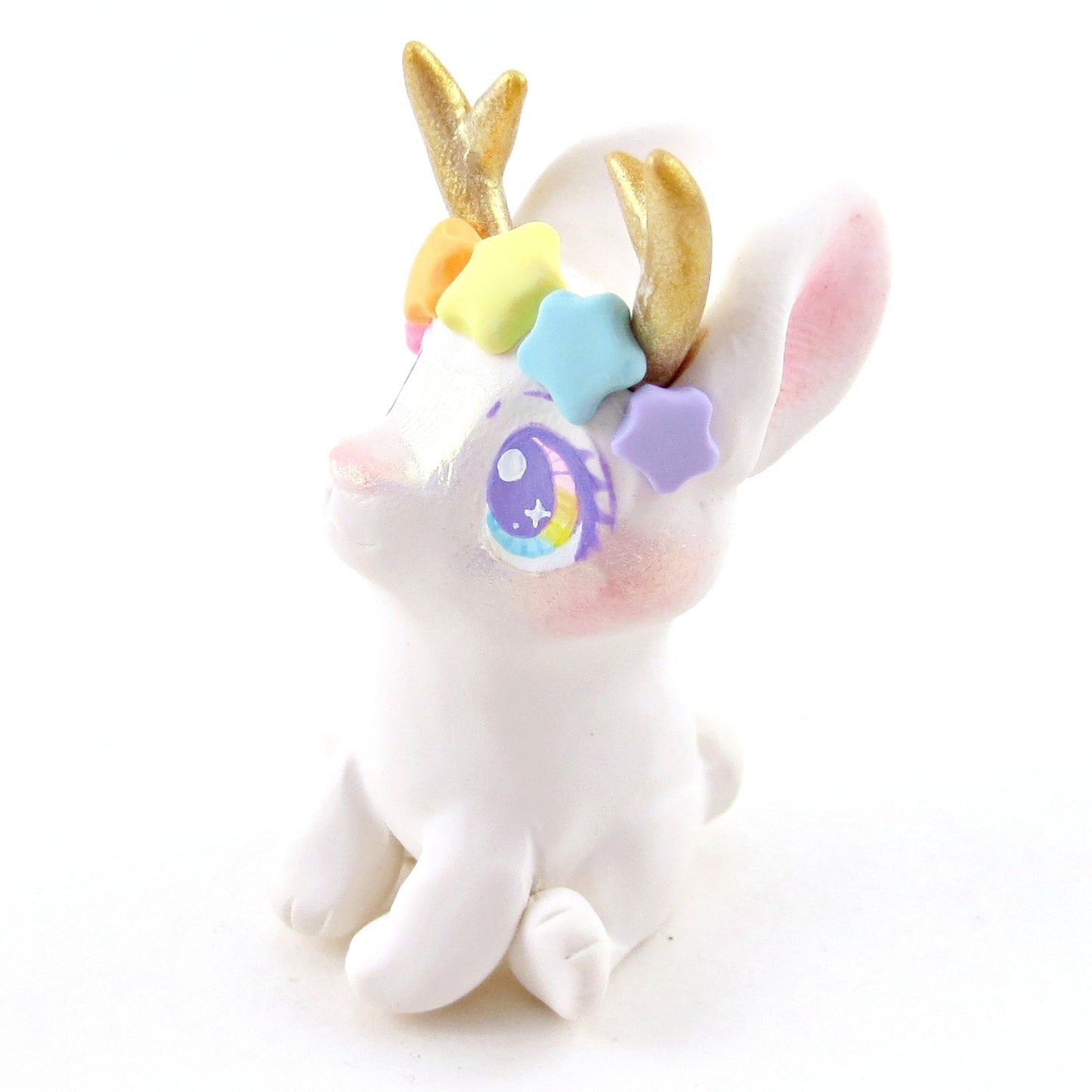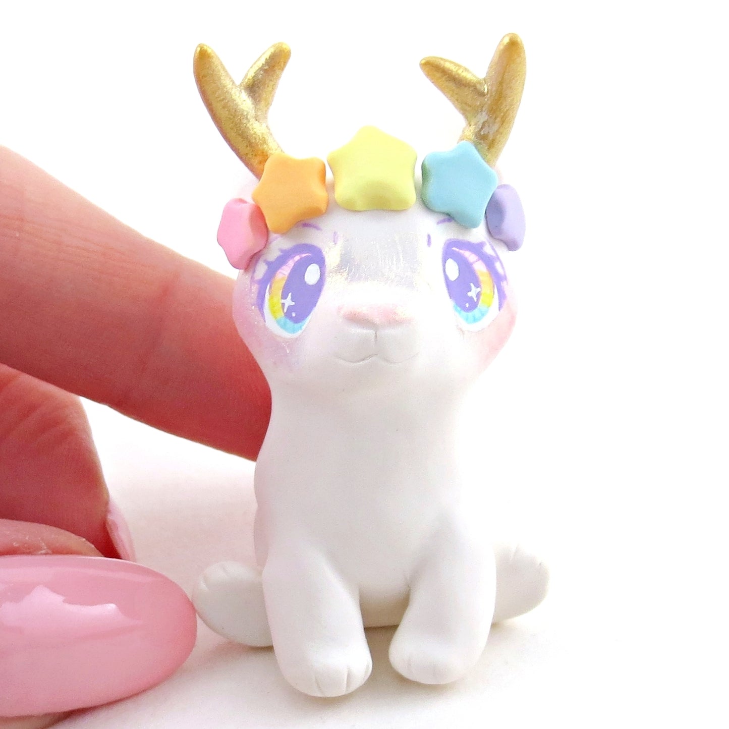 Rainbow Star Crown Daybreak Jackalope Figurine - Polymer Clay Elementals Collection