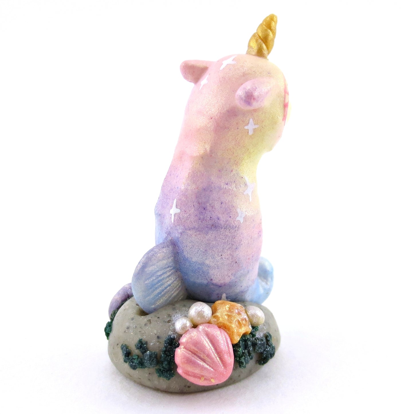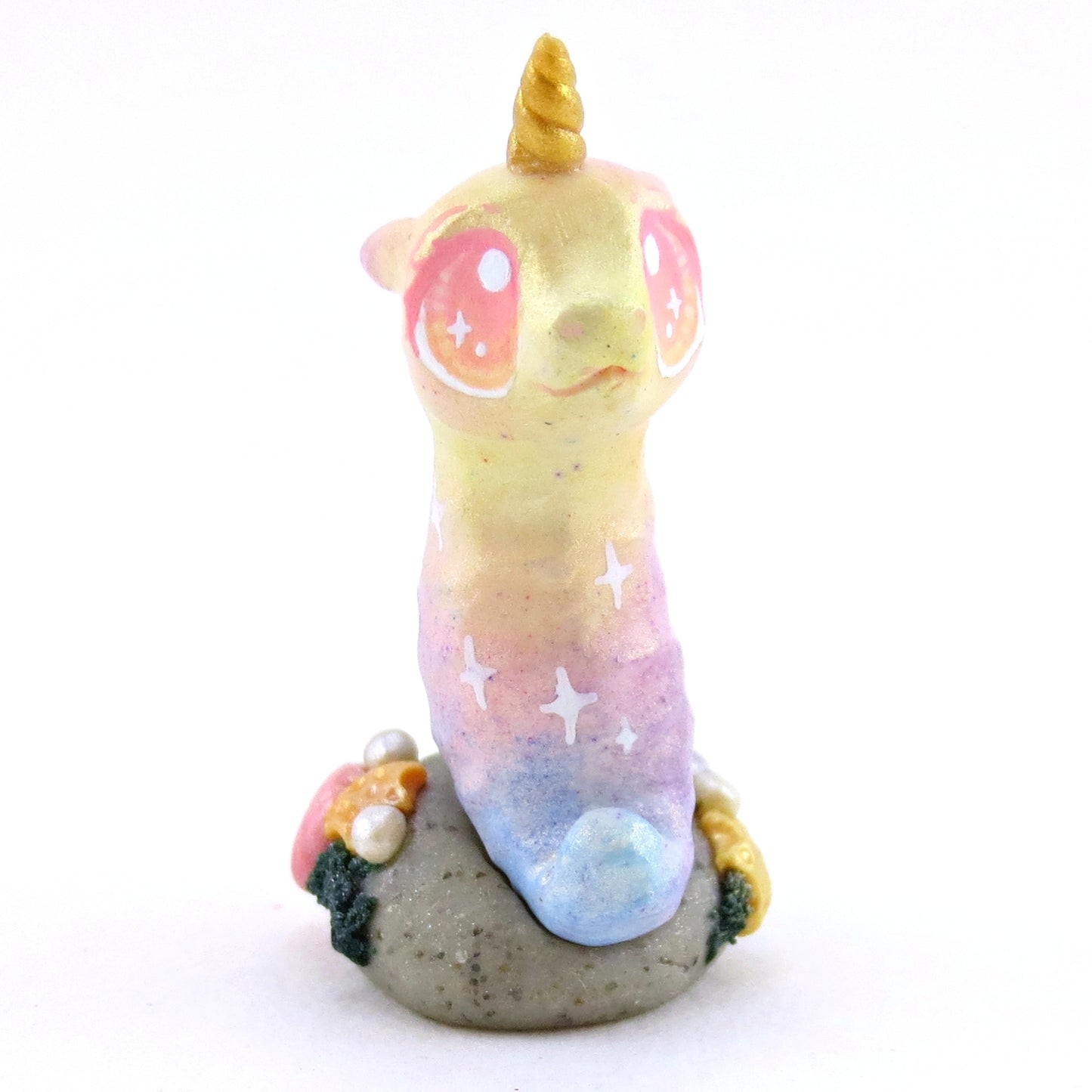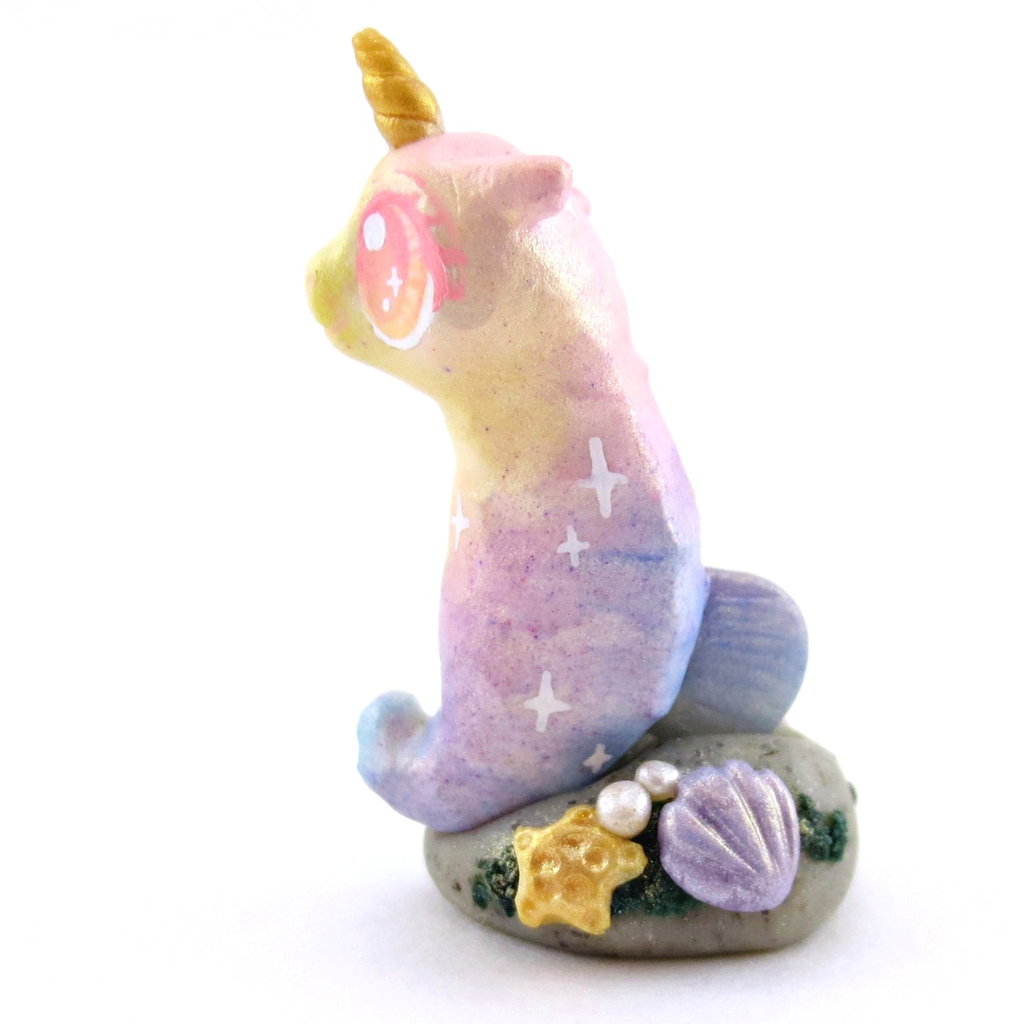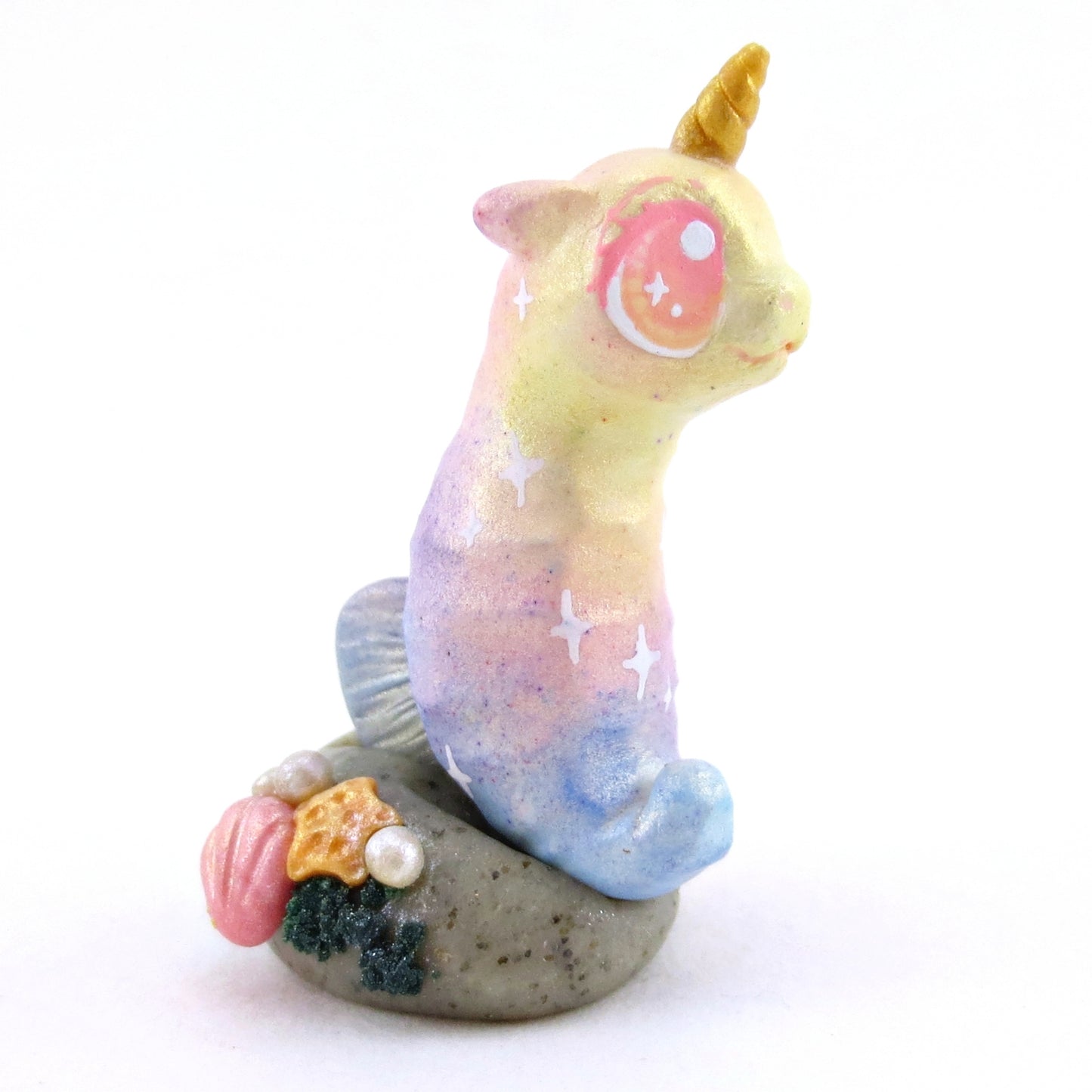 Rainbow Unicorn Horn Seahorse Figurine - Polymer Clay Enchanted Ocean Animals