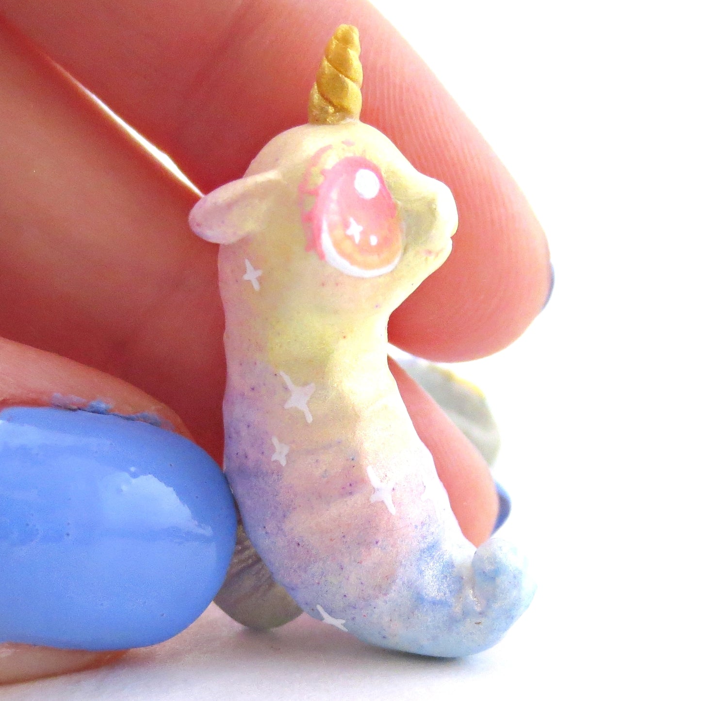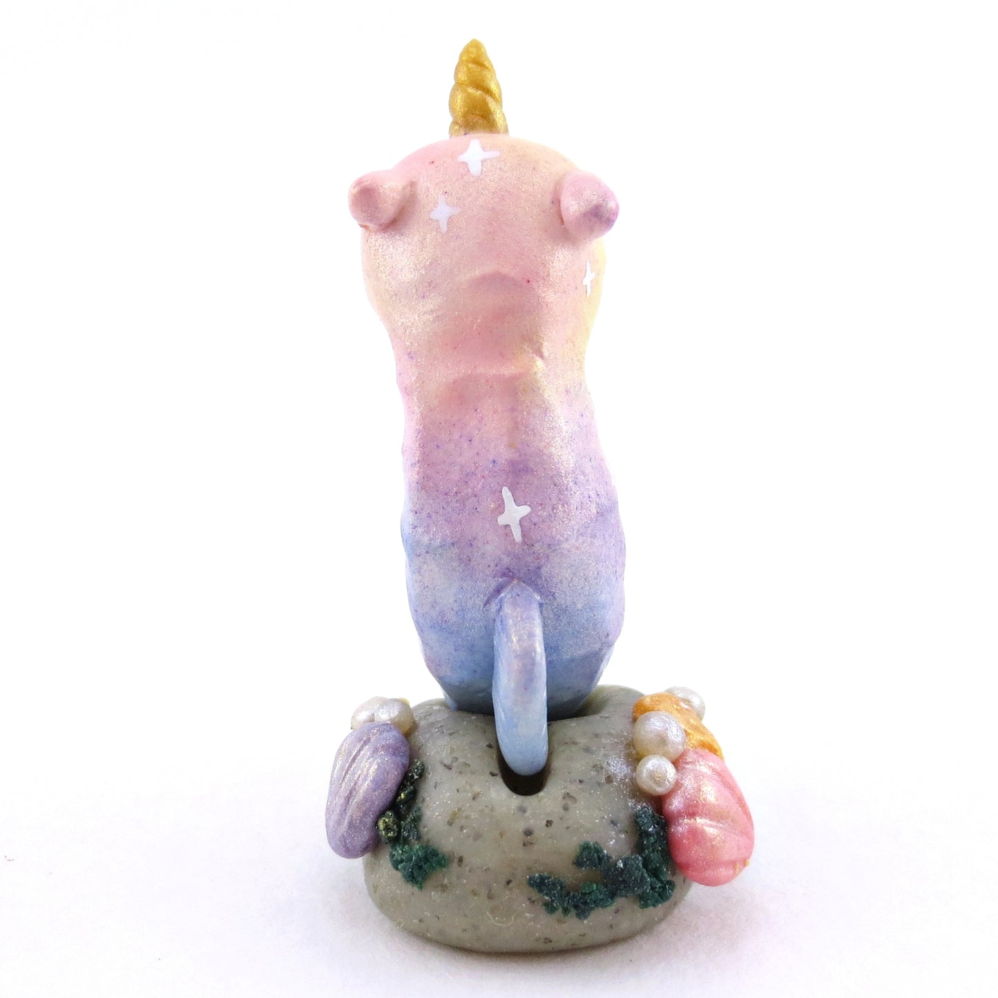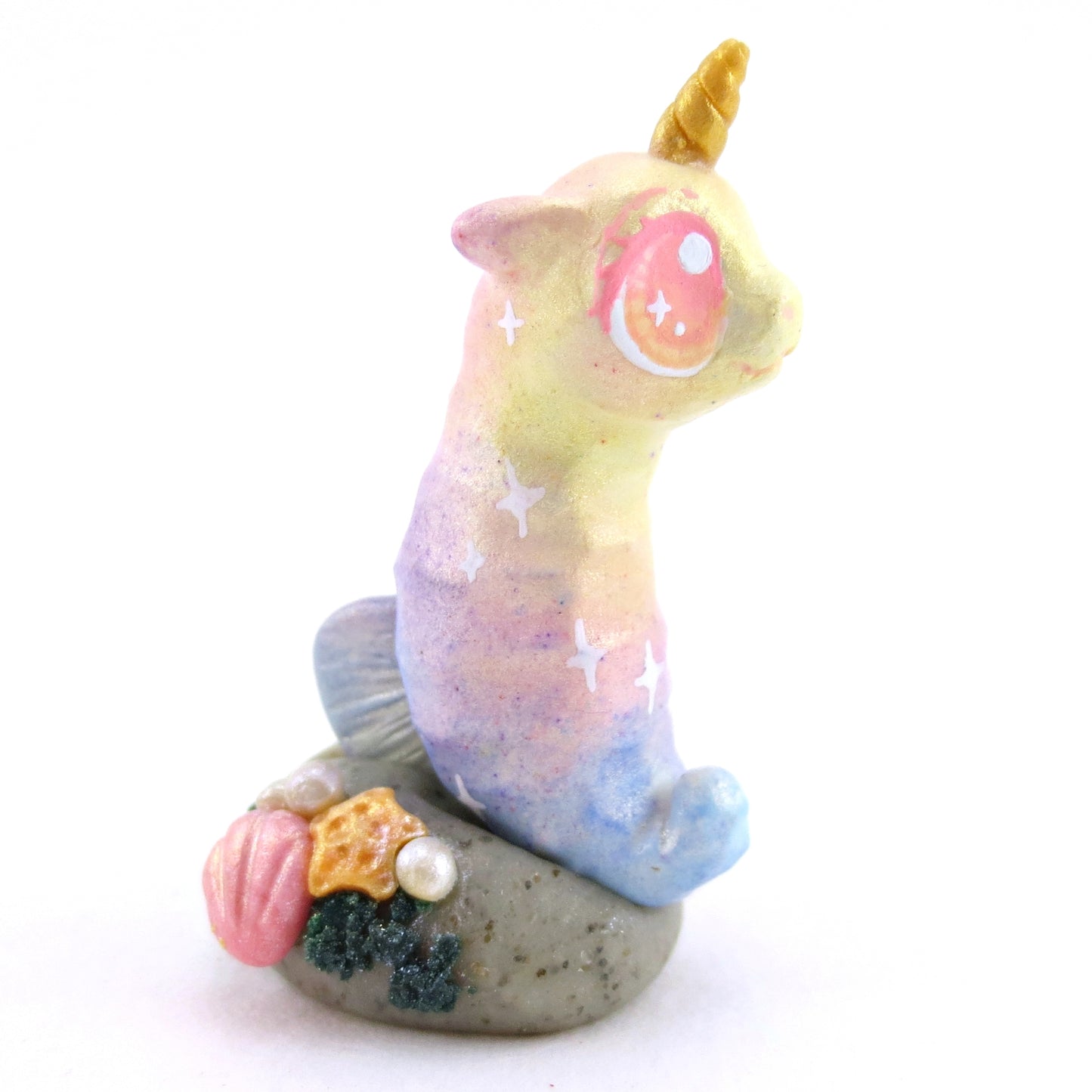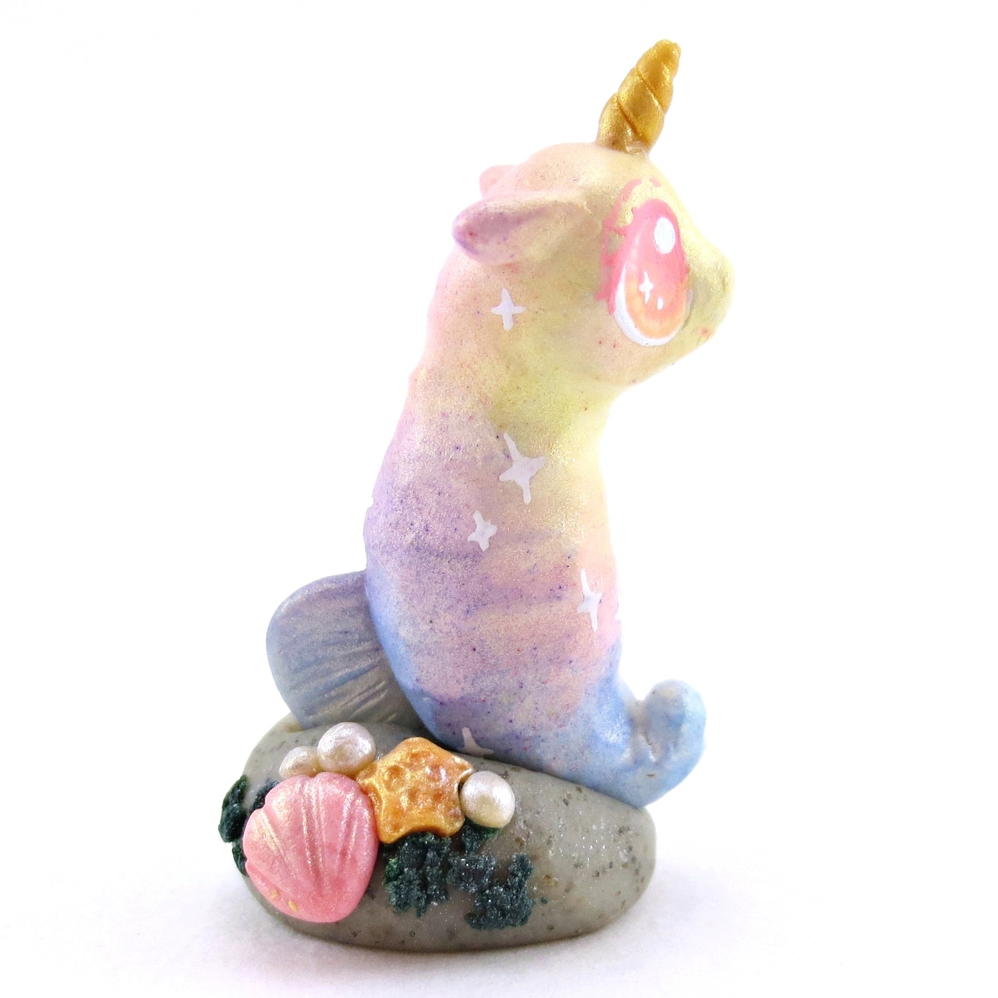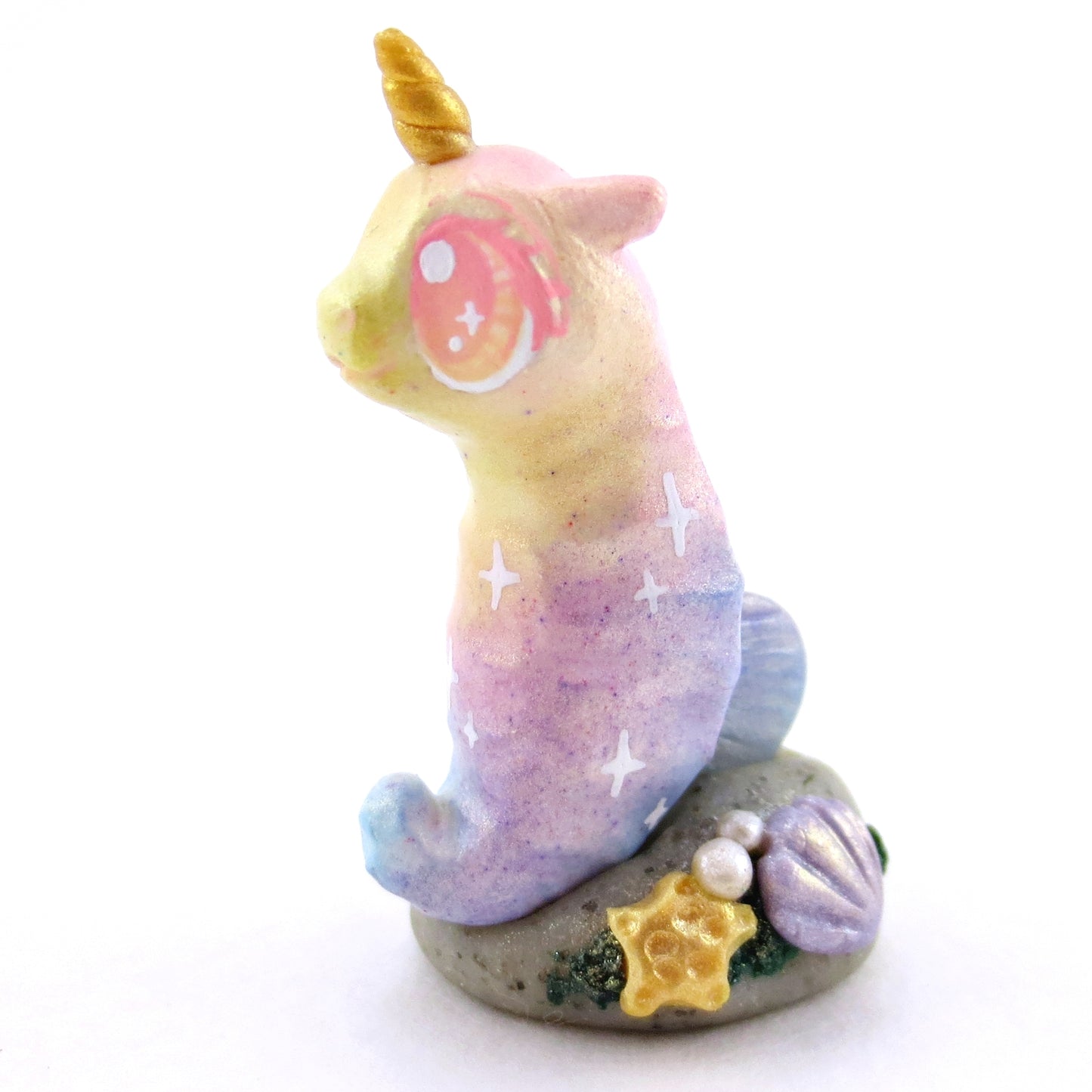 Rainbow Unicorn Horn Seahorse Figurine - Polymer Clay Enchanted Ocean Animals