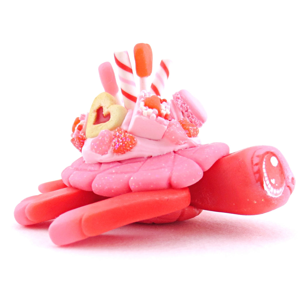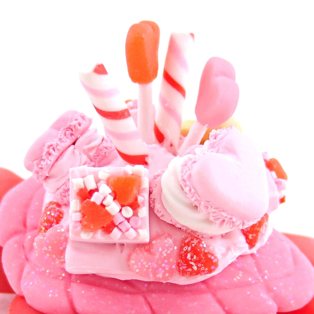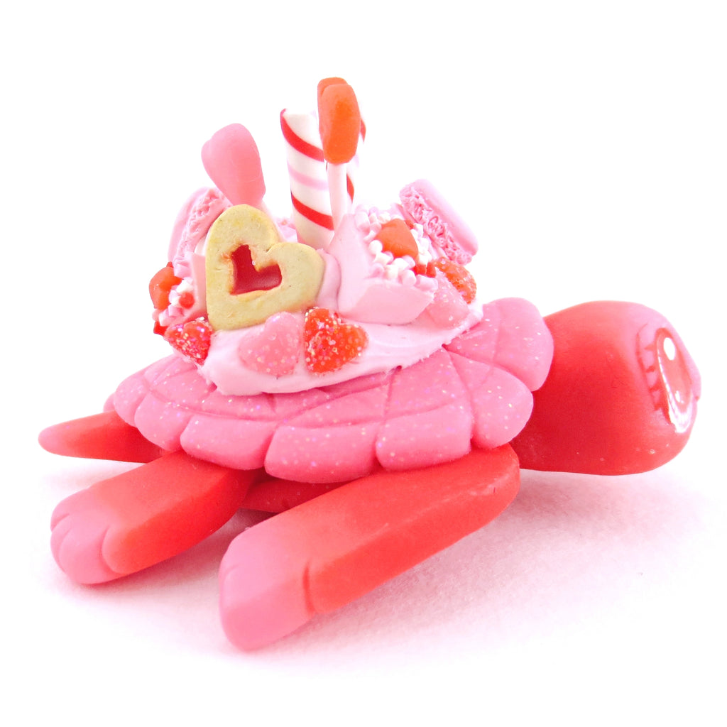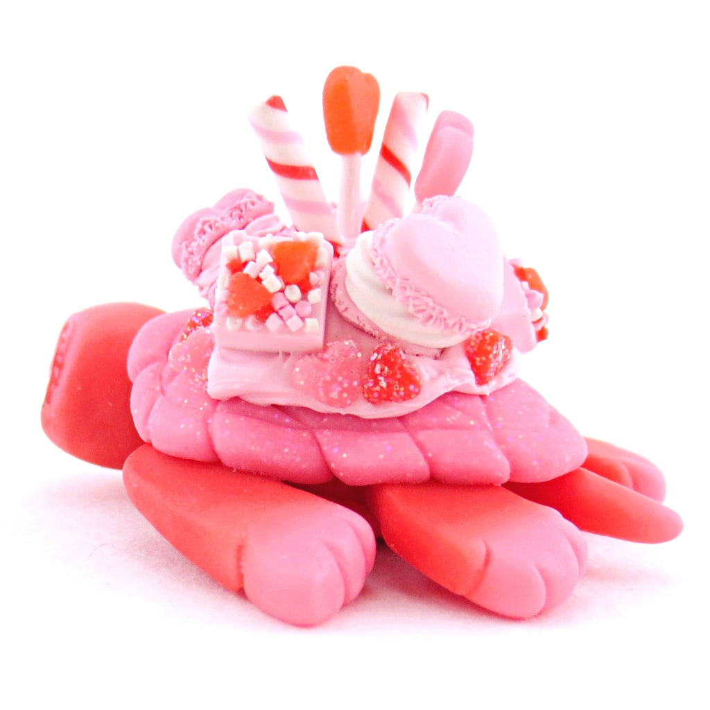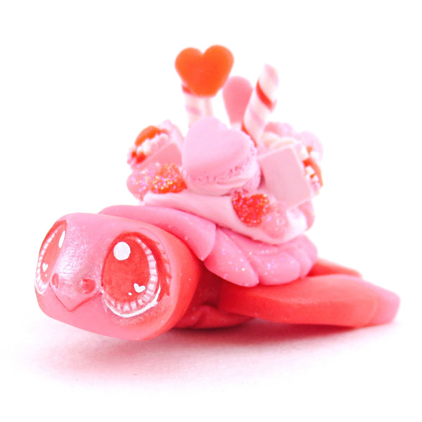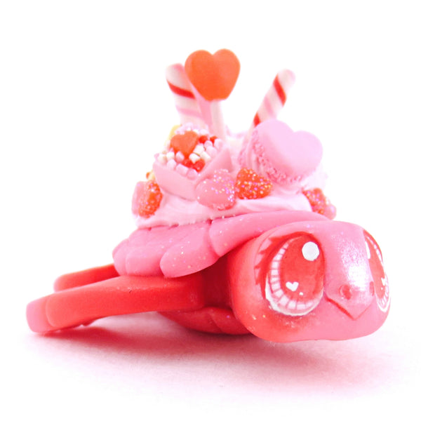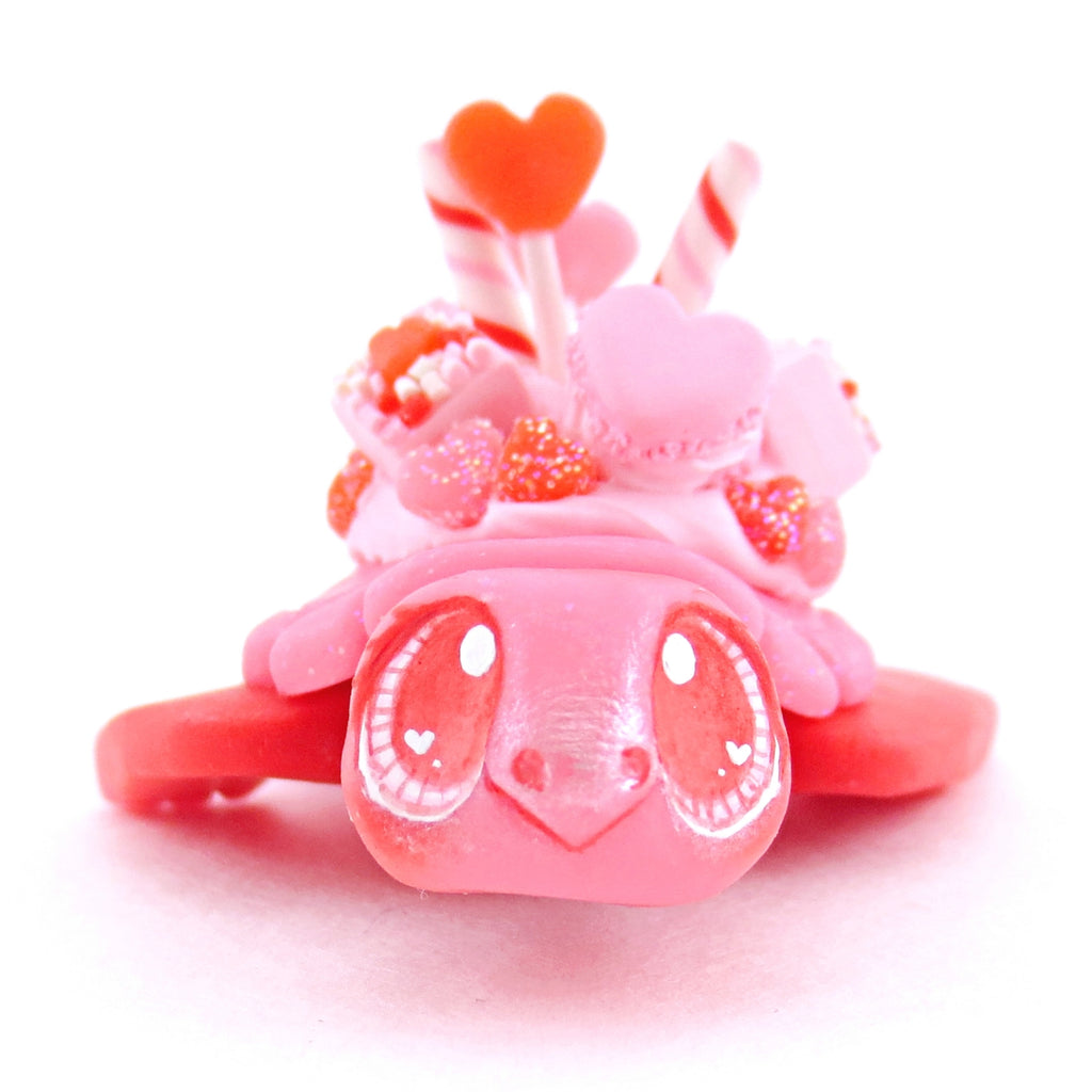 Red and Pink Valentine Dessert Turtle Figurine - Polymer Clay Valentine Animals