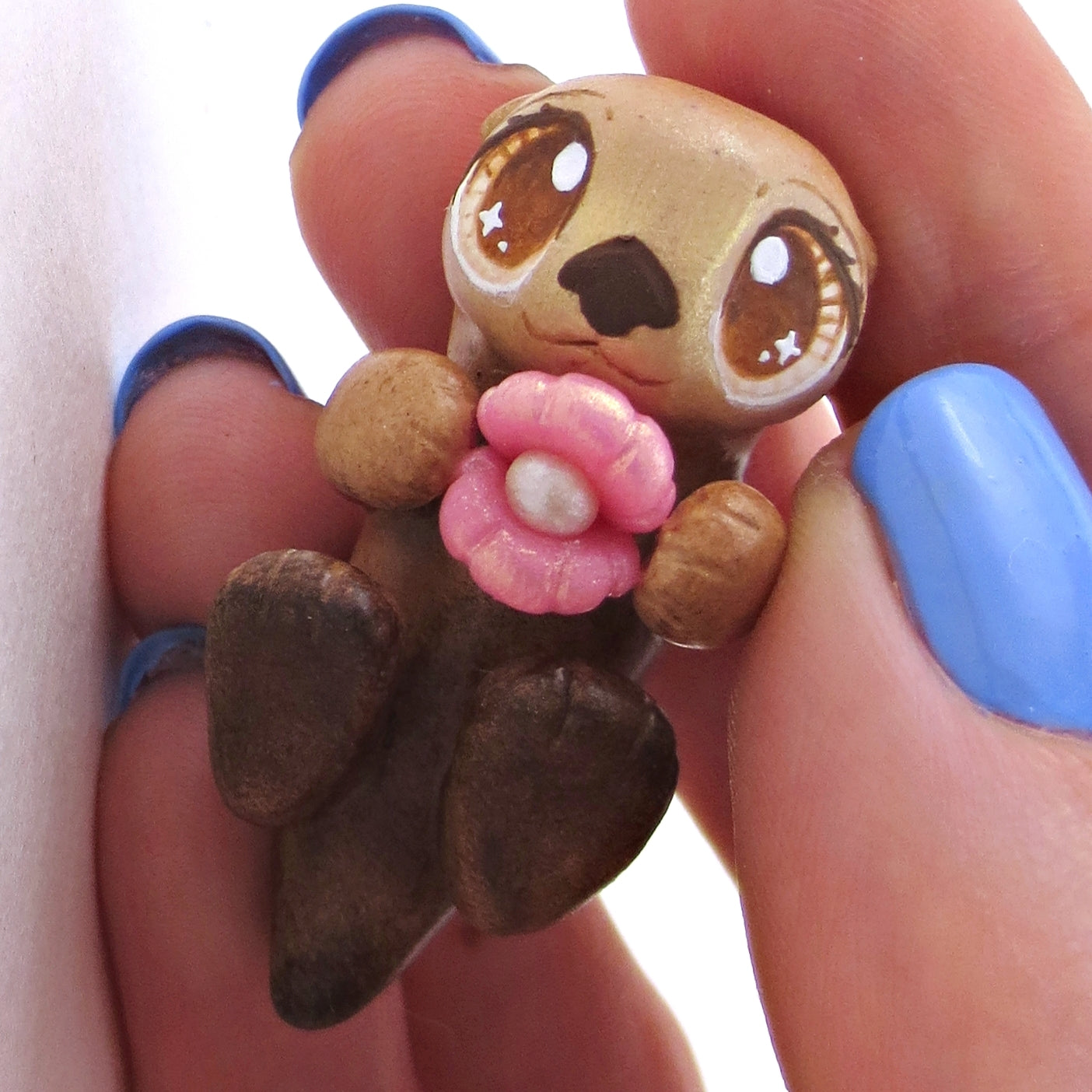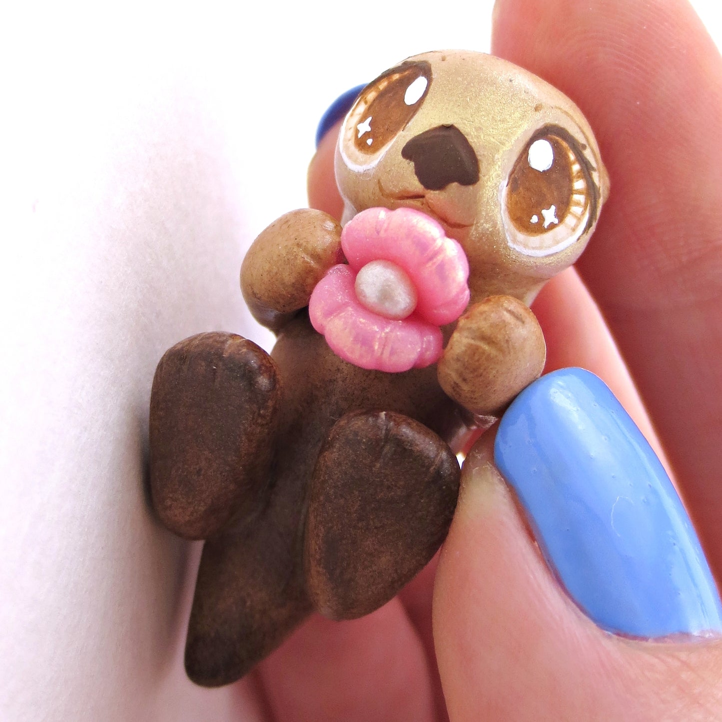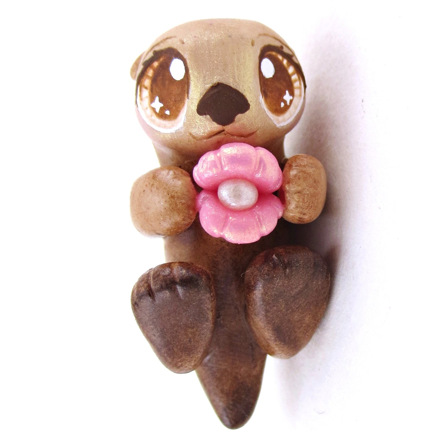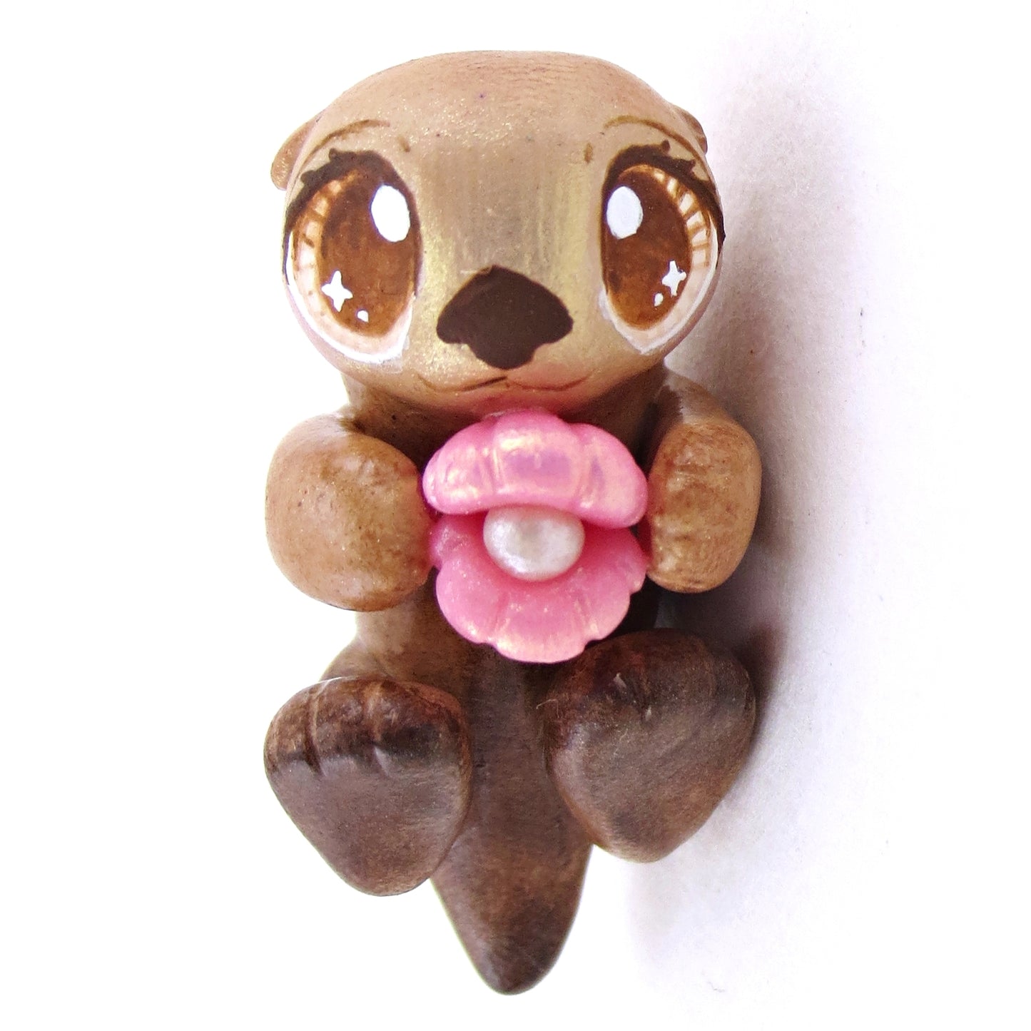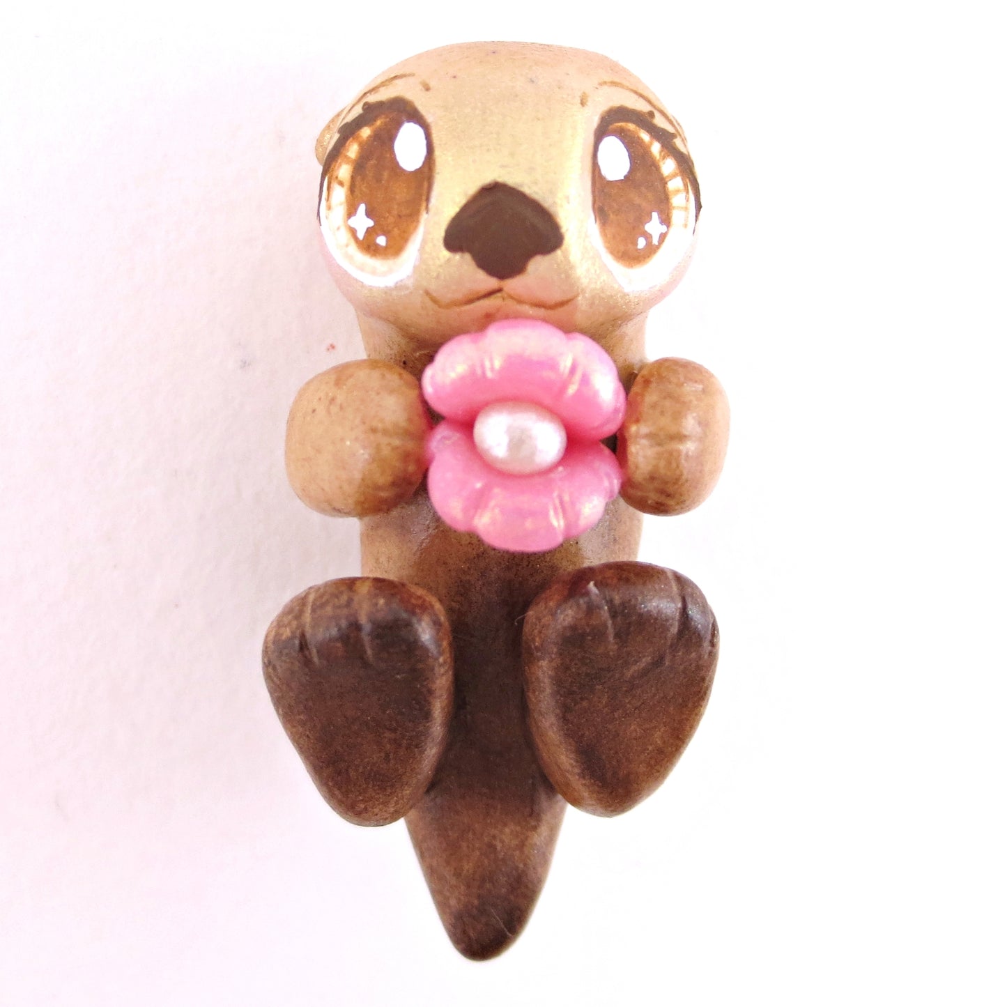 Sea Otter with Pink Seashell Figurine - Polymer Clay Enchanted Ocean Animals