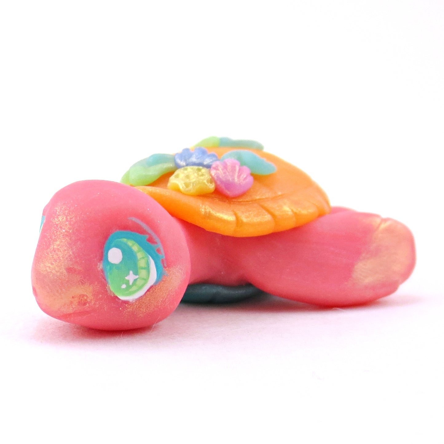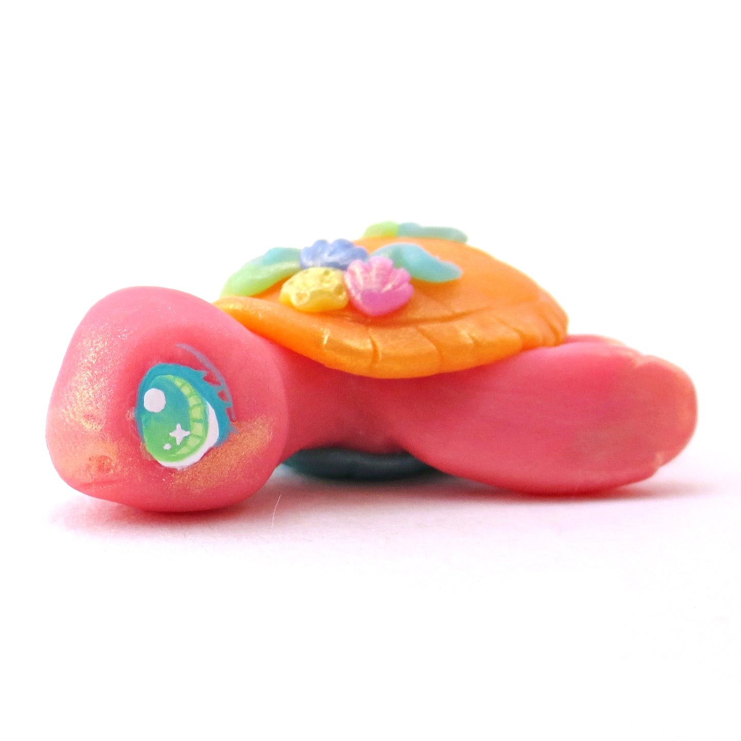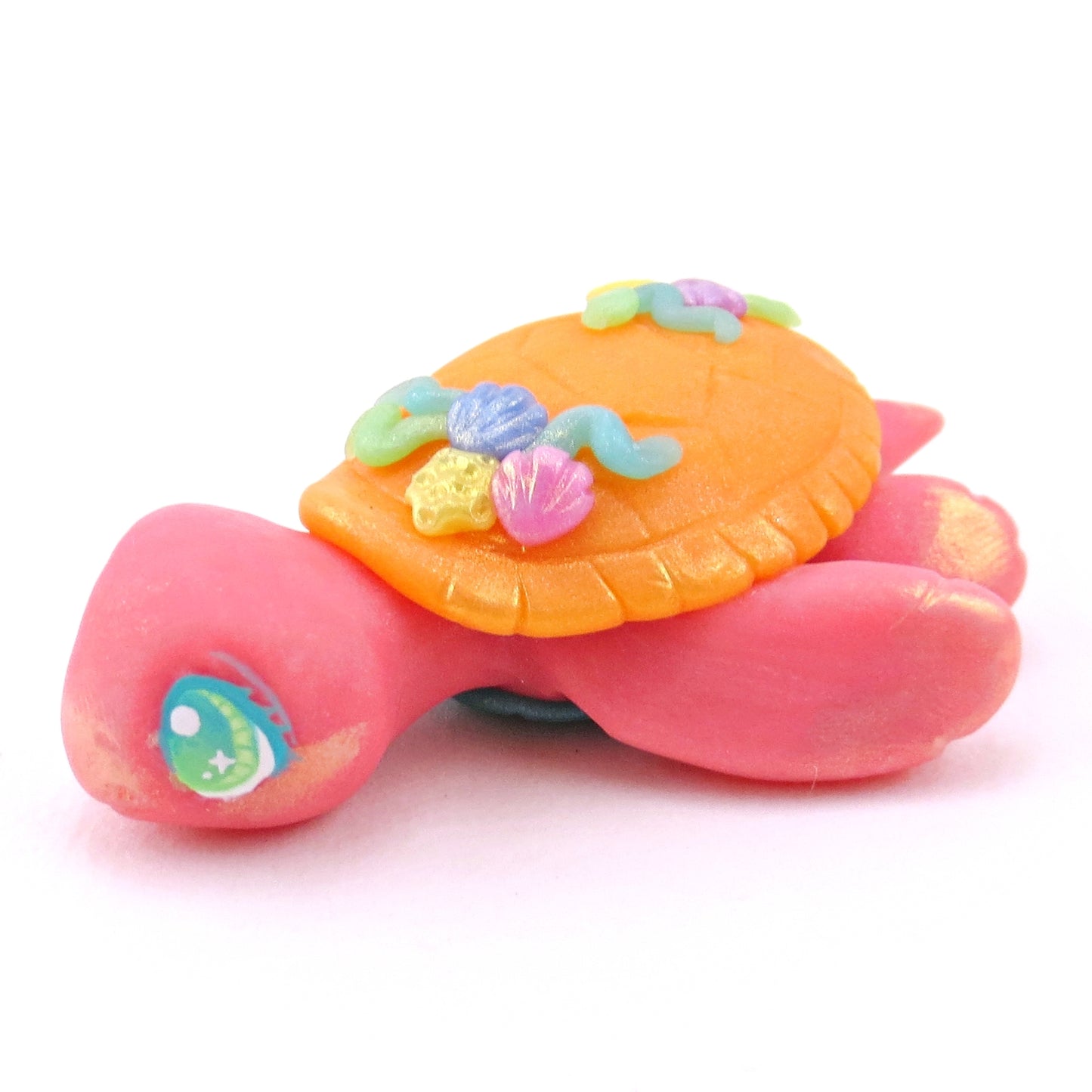 Seashell Pink/Orange/Blue Sea Turtle Figurine - Polymer Clay Ocean Collection