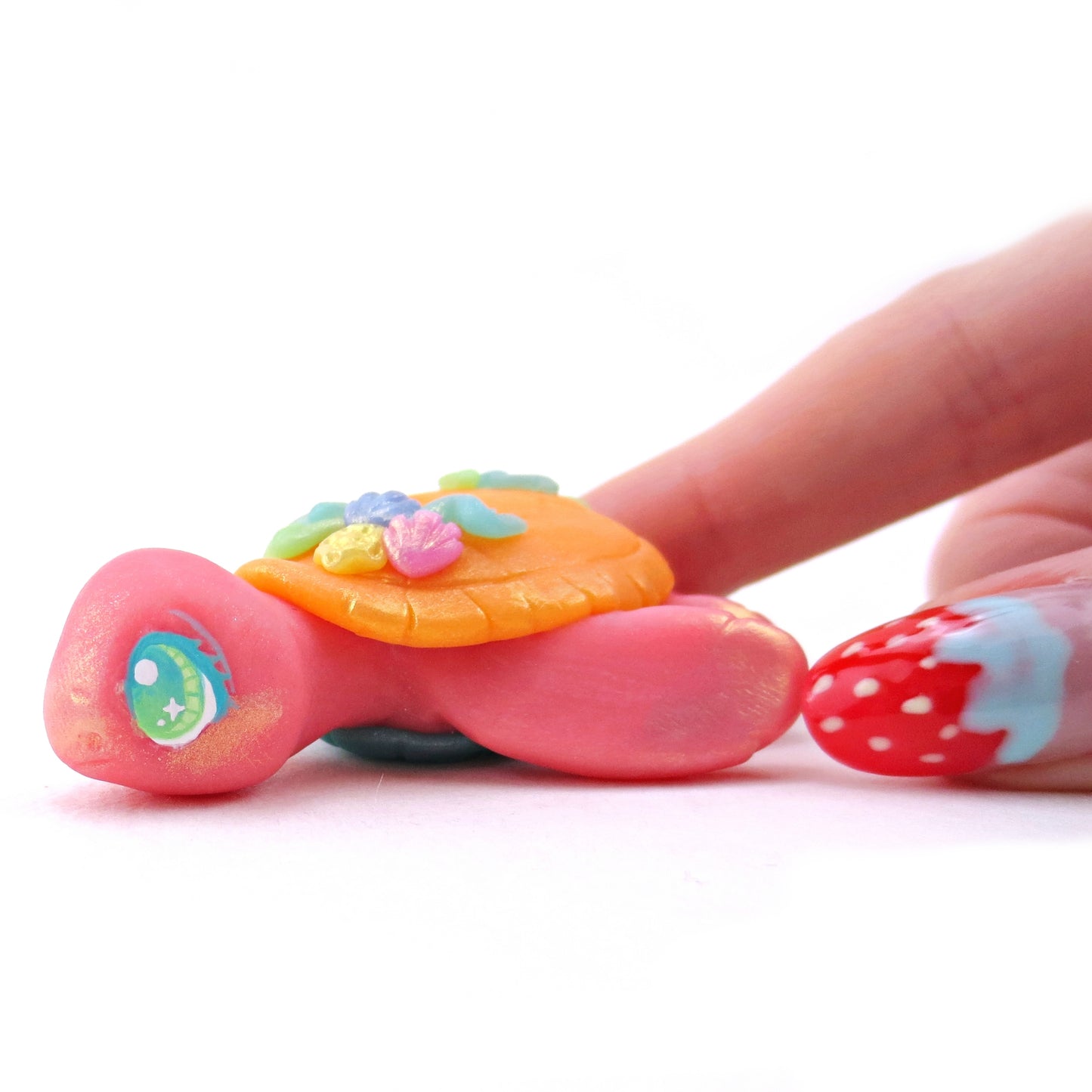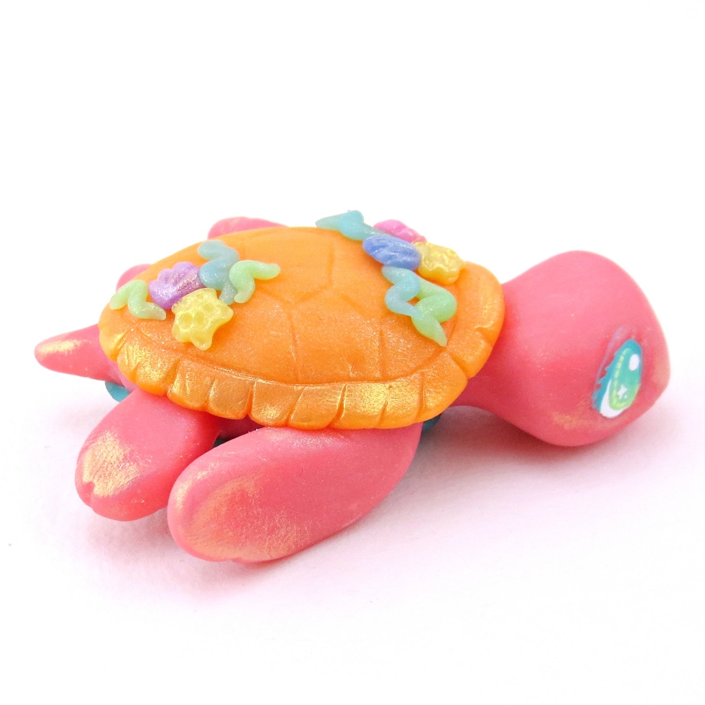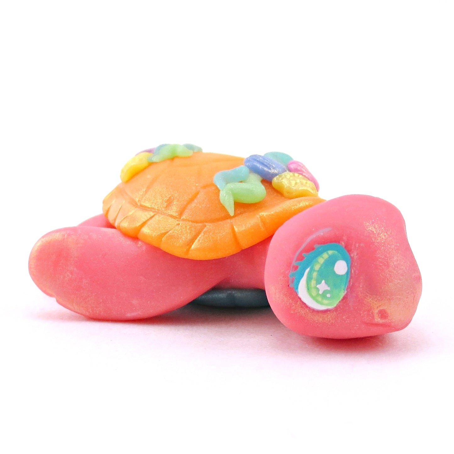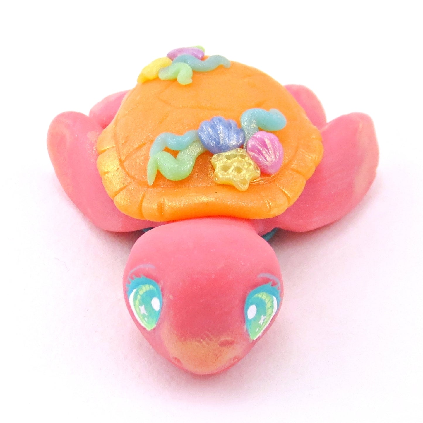 Seashell Pink/Orange/Blue Sea Turtle Figurine - Polymer Clay Ocean Collection