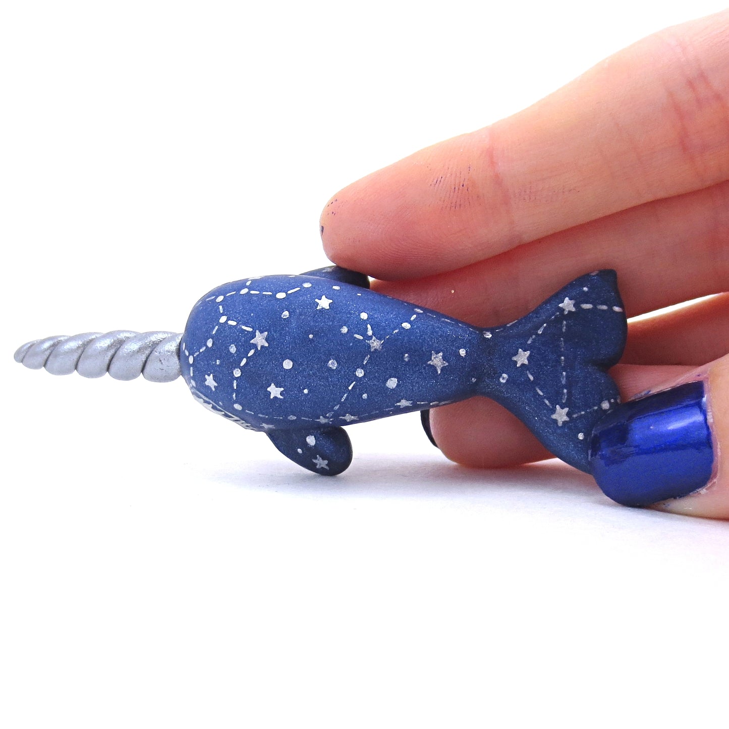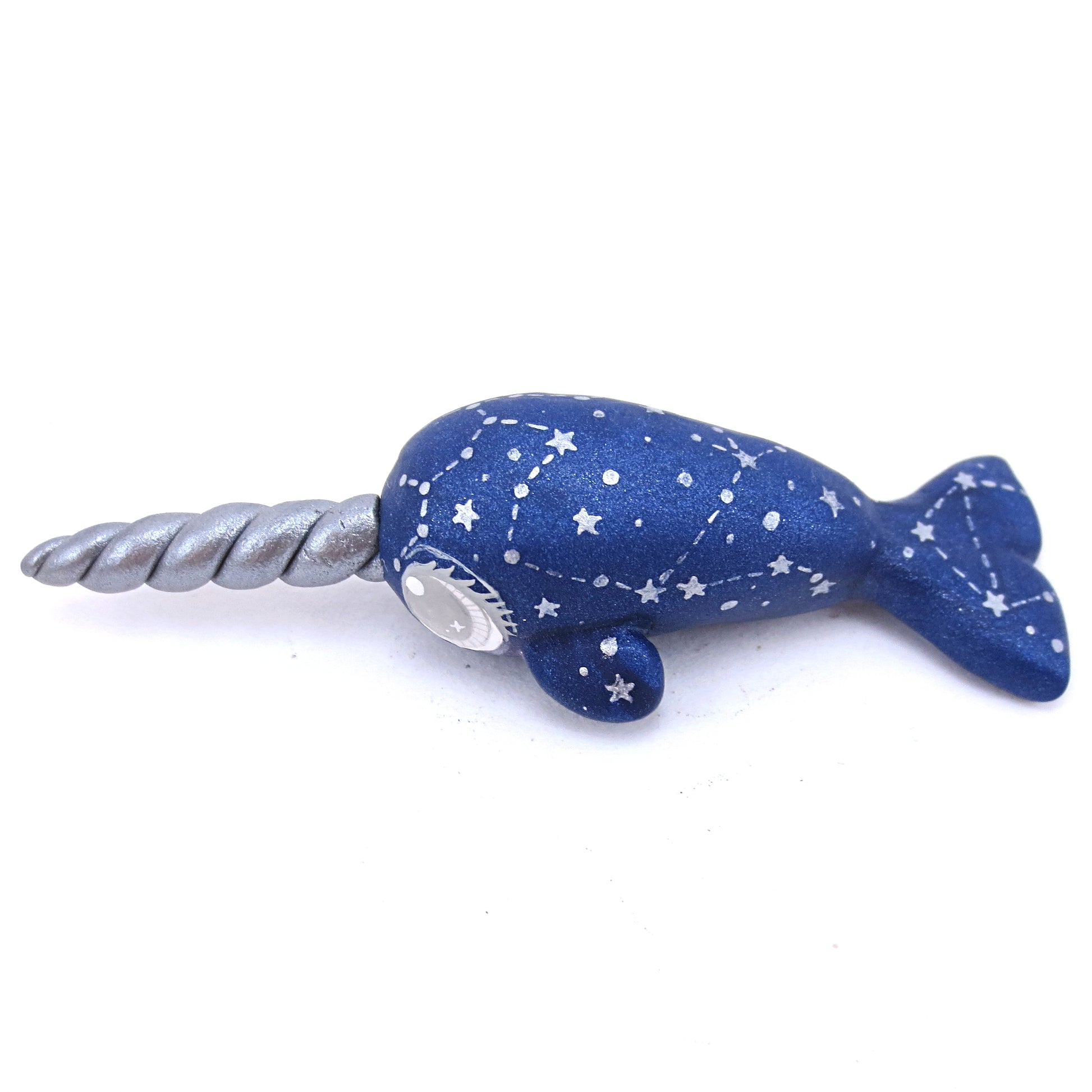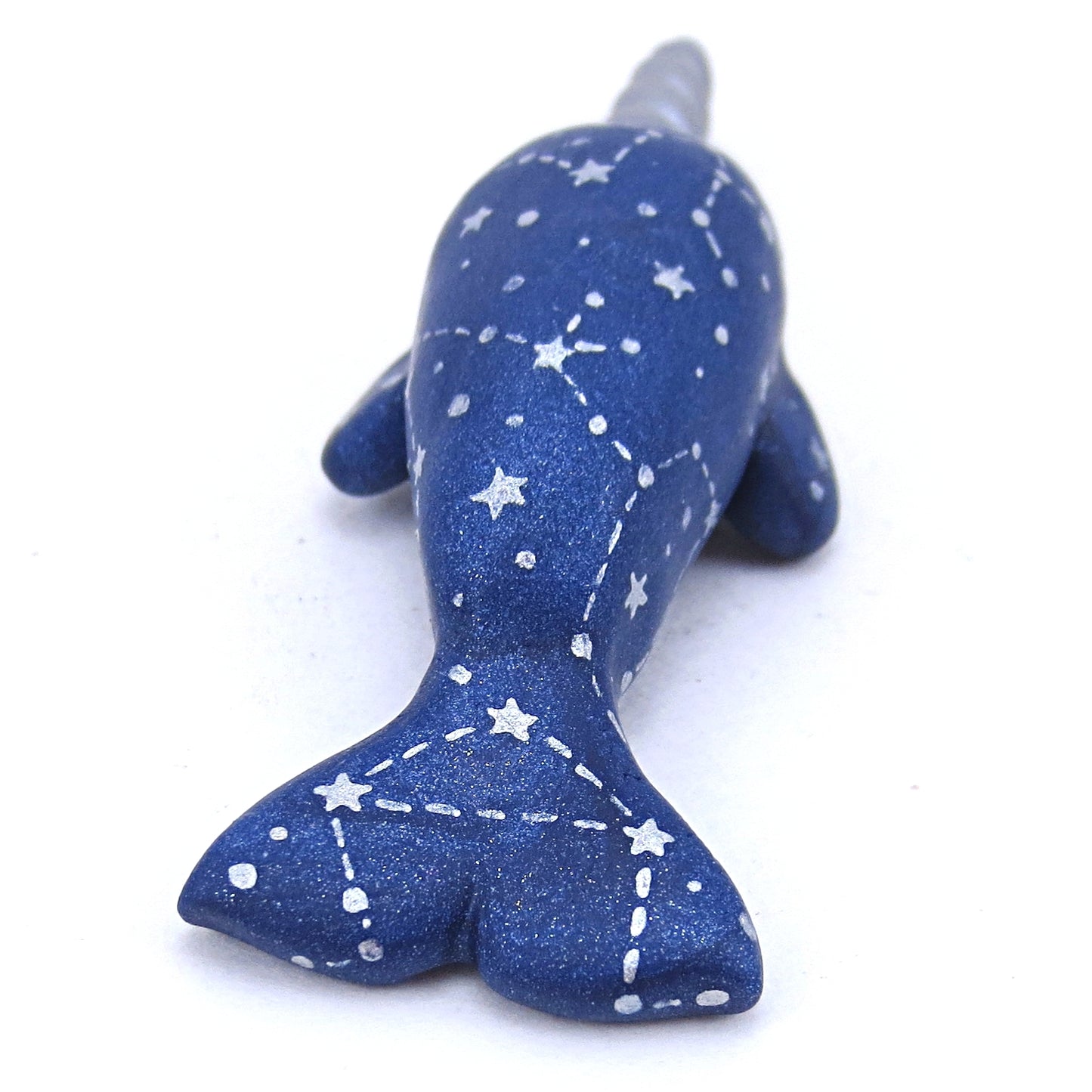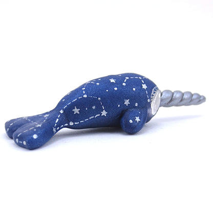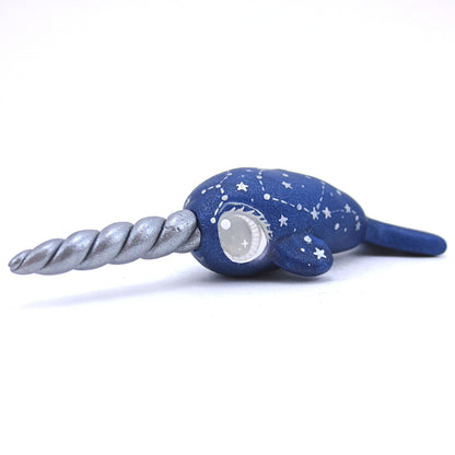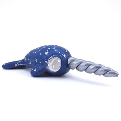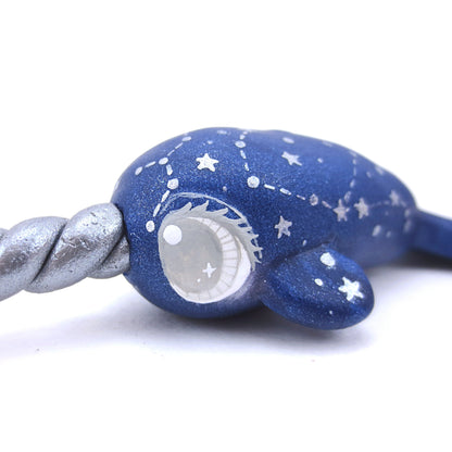 Silver and Blue Constellation Narwhal Figurine - Polymer Clay Animals