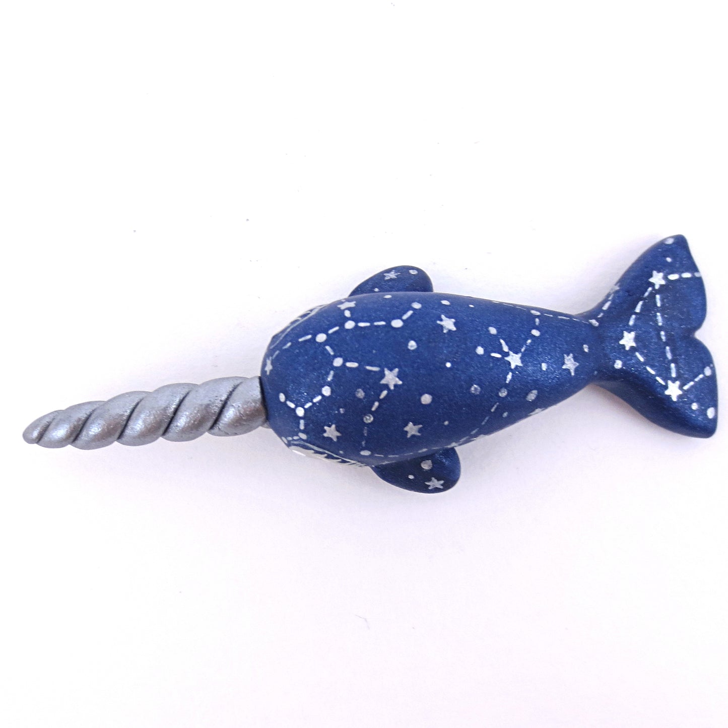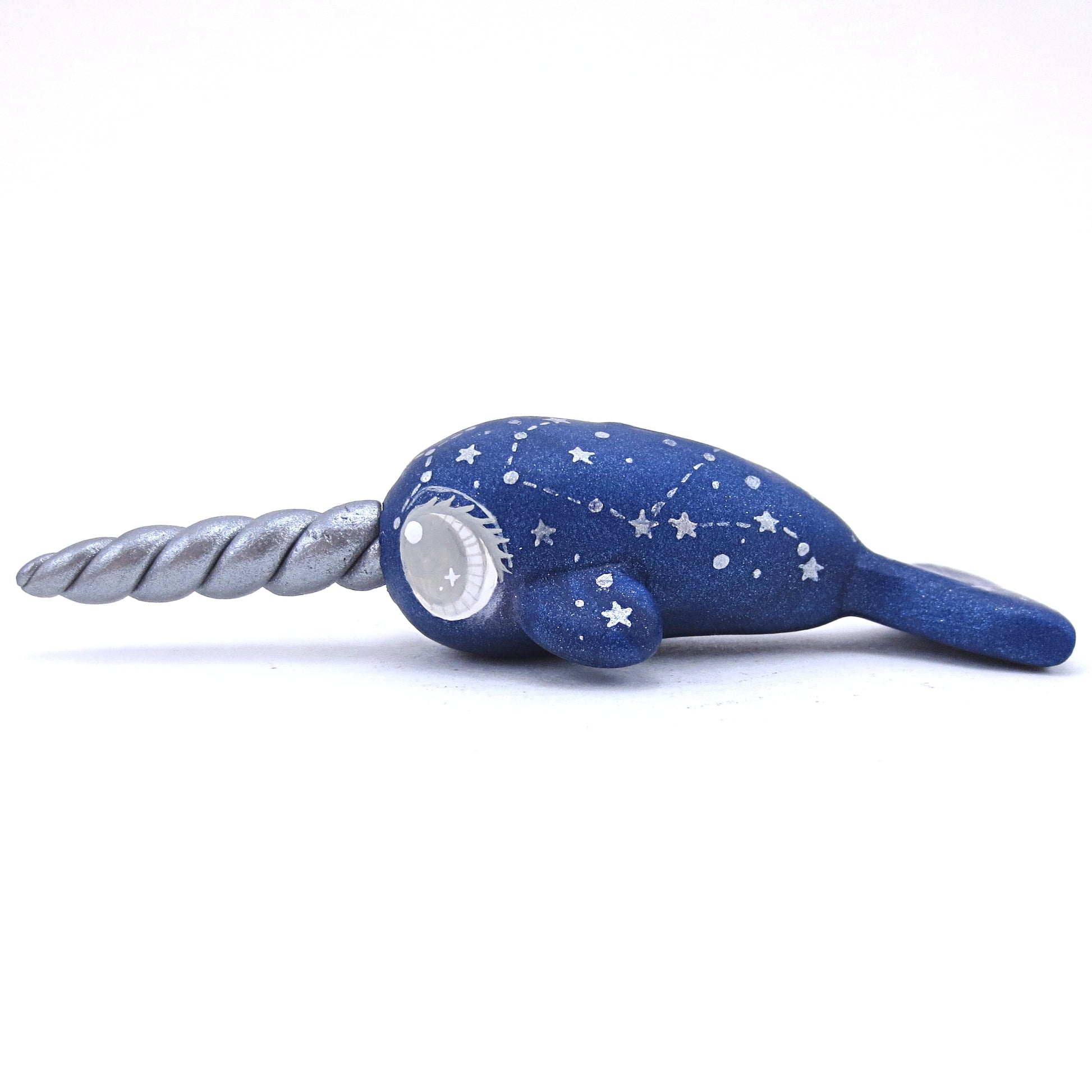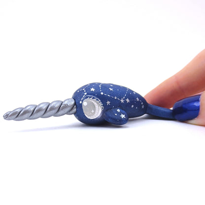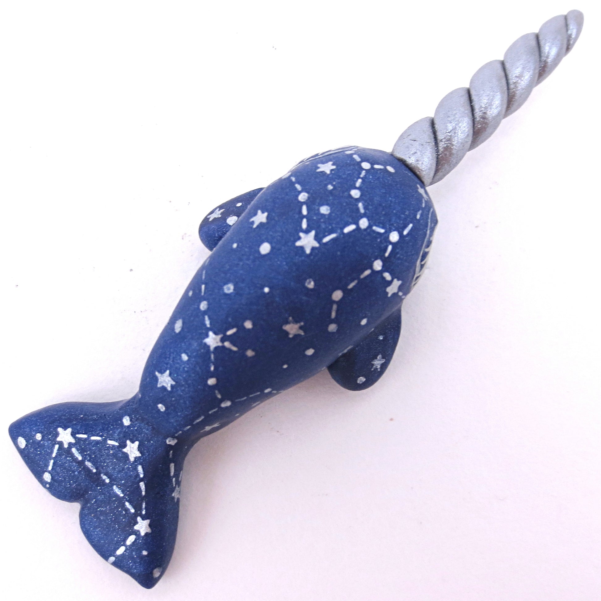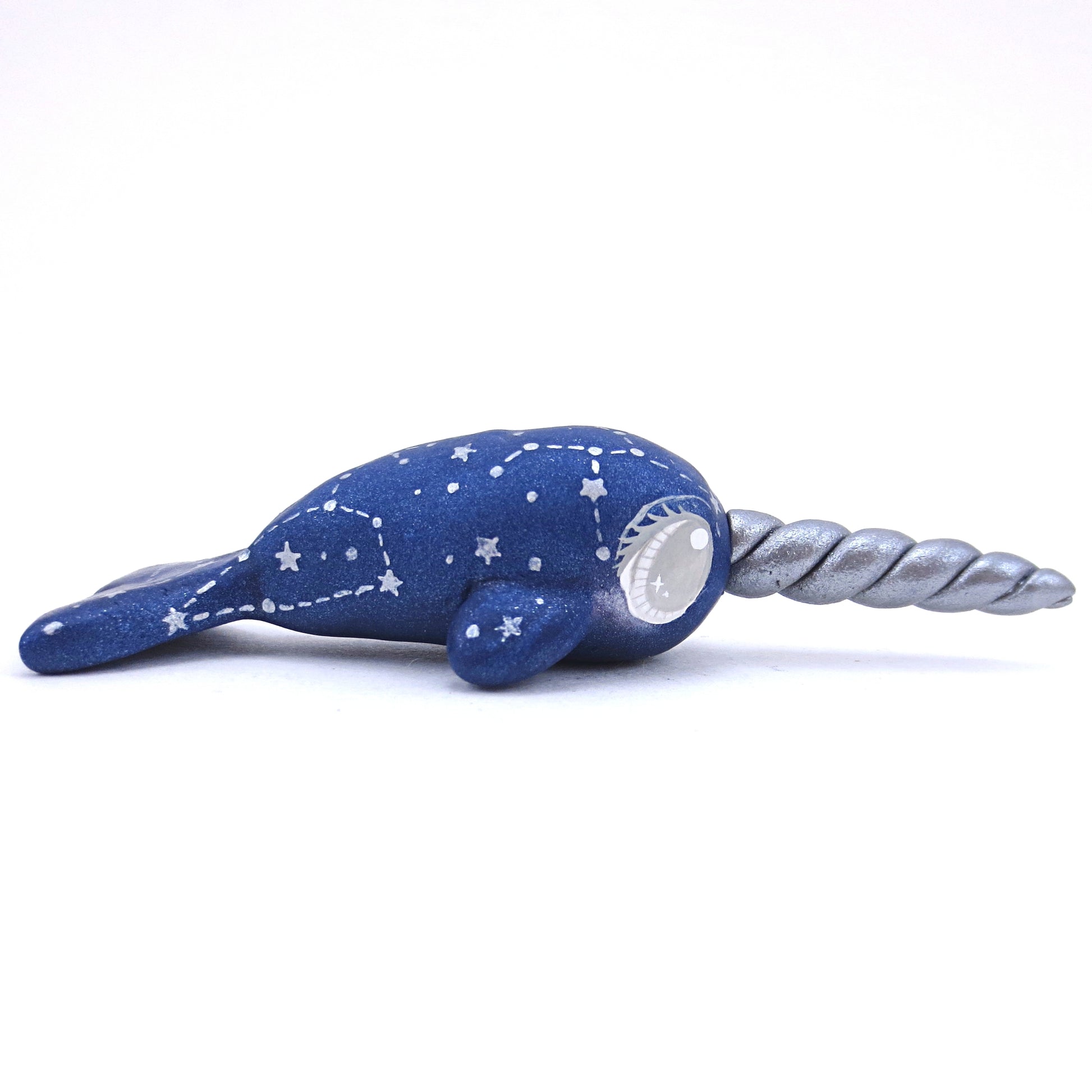 Silver and Blue Constellation Narwhal Figurine - Polymer Clay Animals