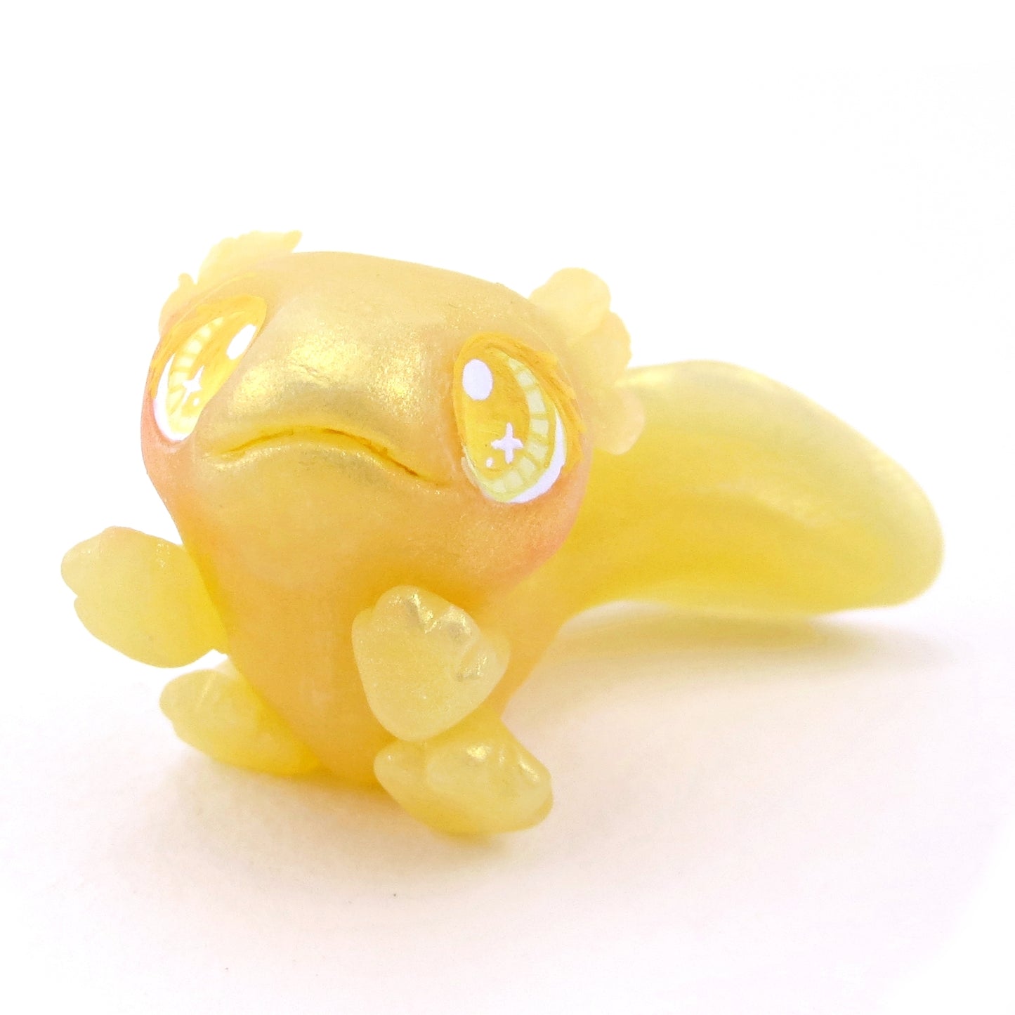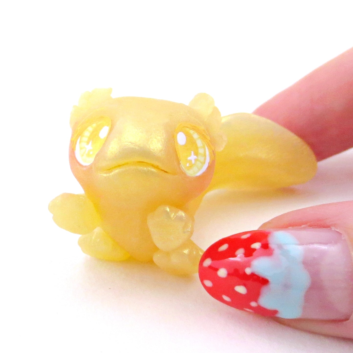 Waving Golden Axolotl Figurine - Polymer Clay Ocean Collection
