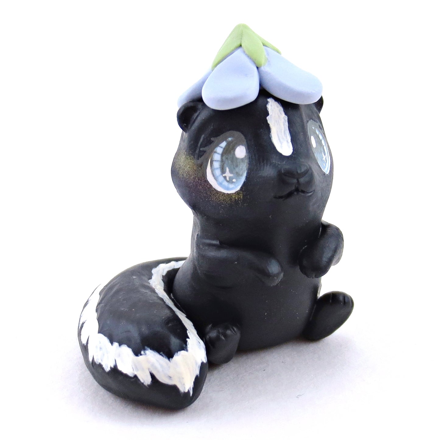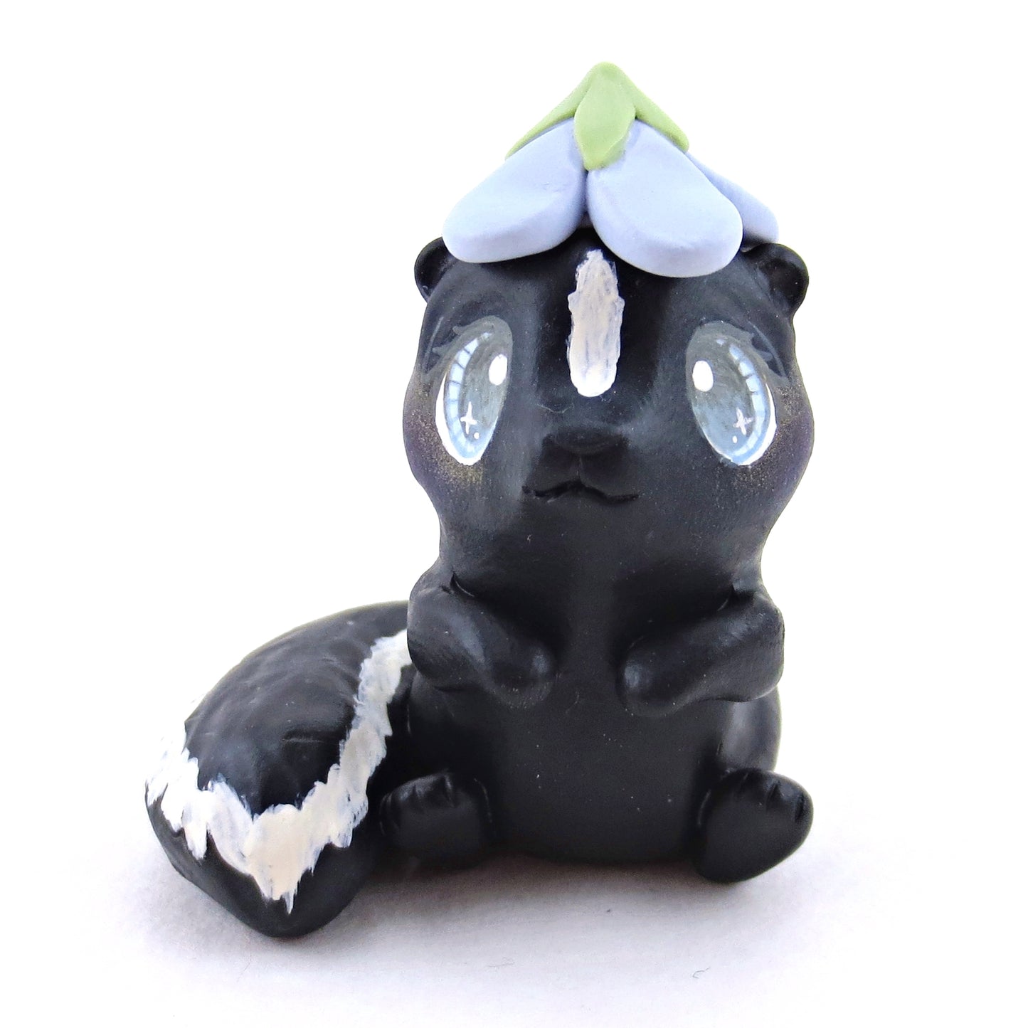 Skunk with a Bluebell Hat Figurine - Polymer Clay Spring Animal Collection