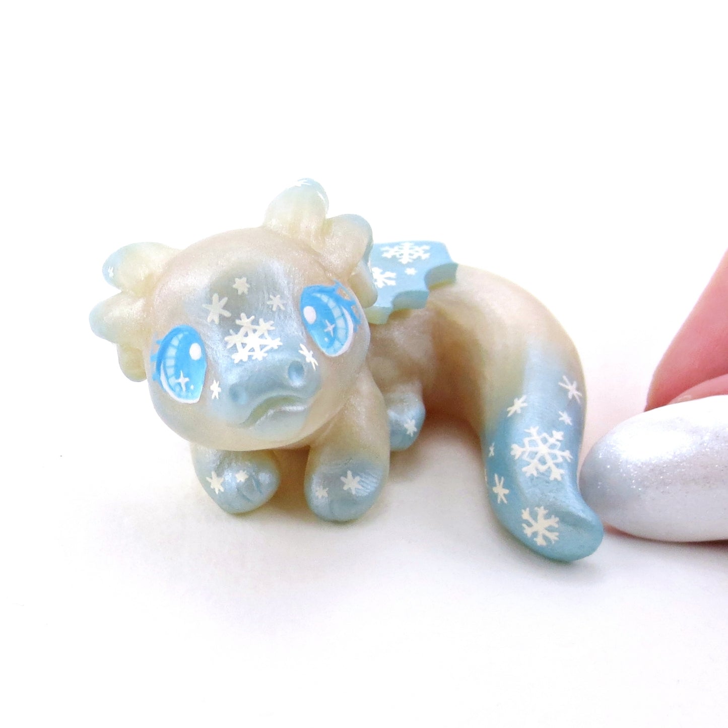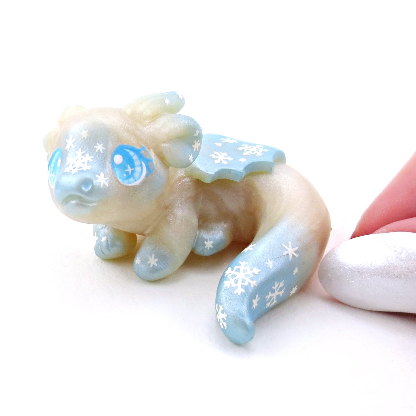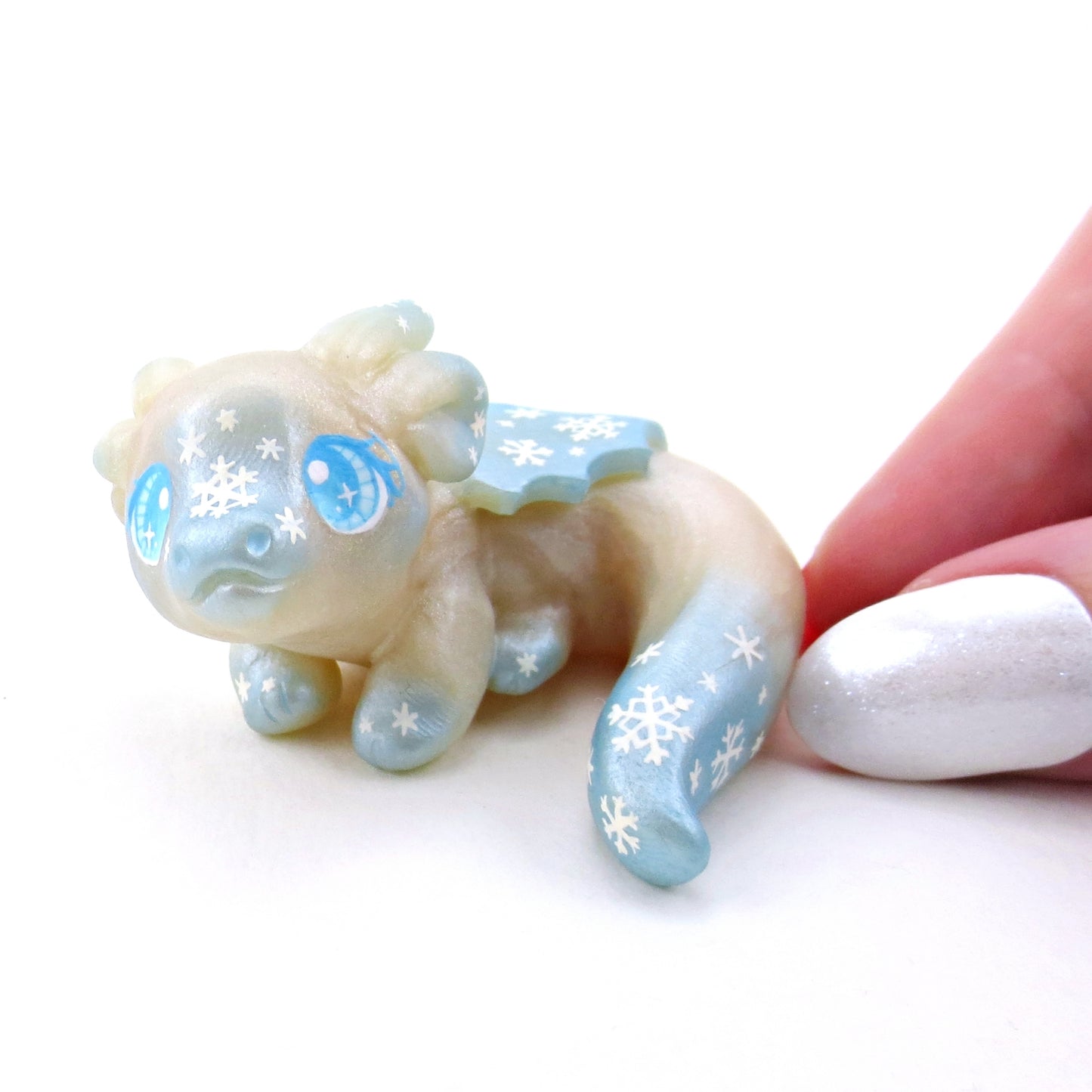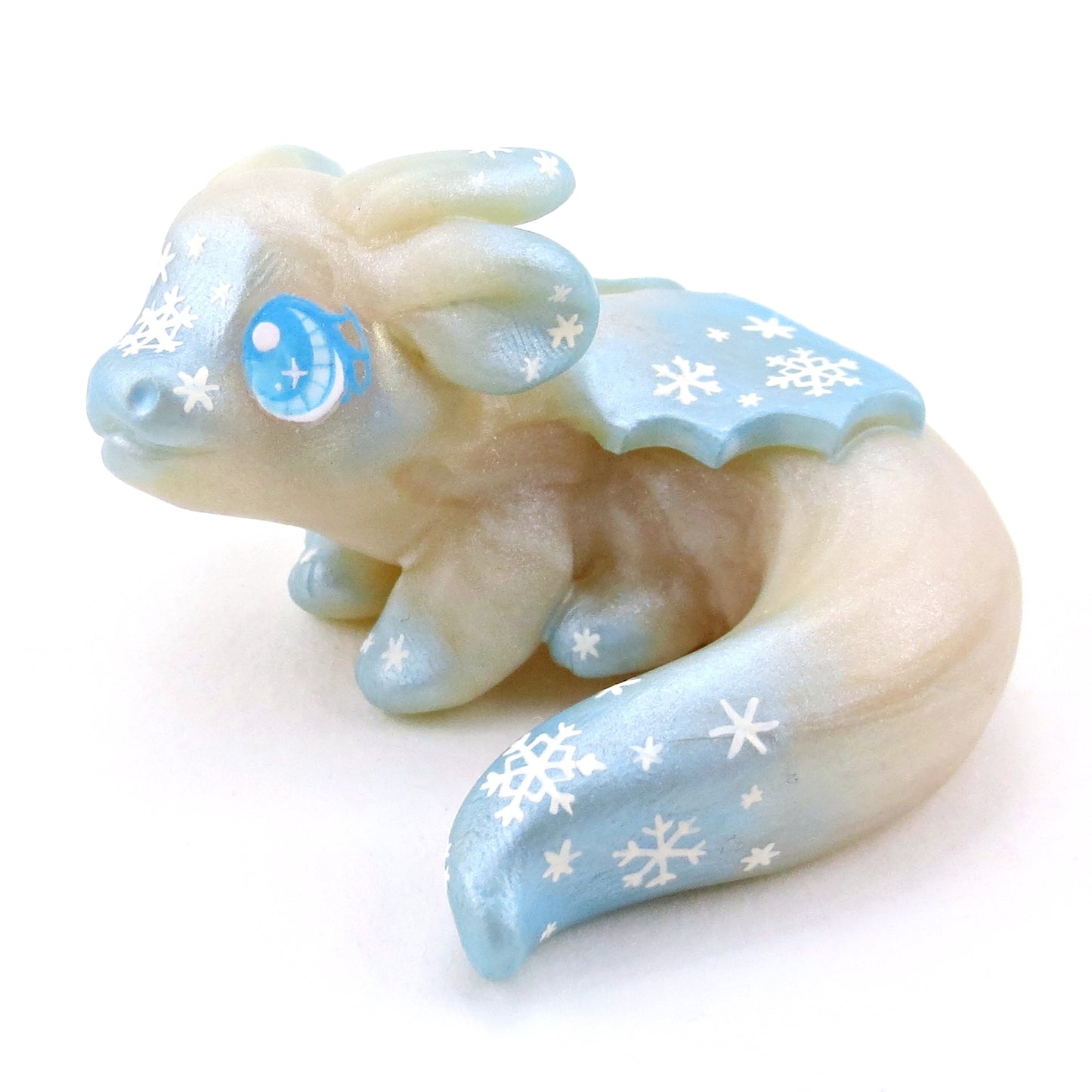 Snowflake Baby Dragon Figurine - Polymer Clay Winter Collection