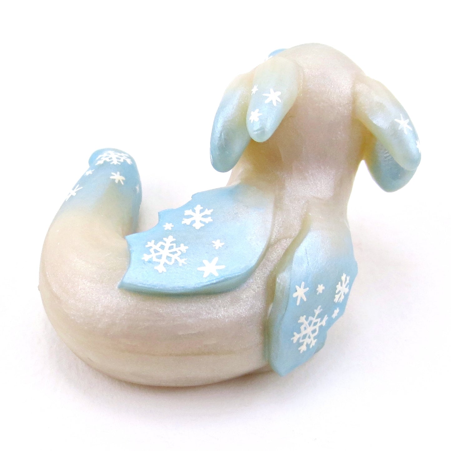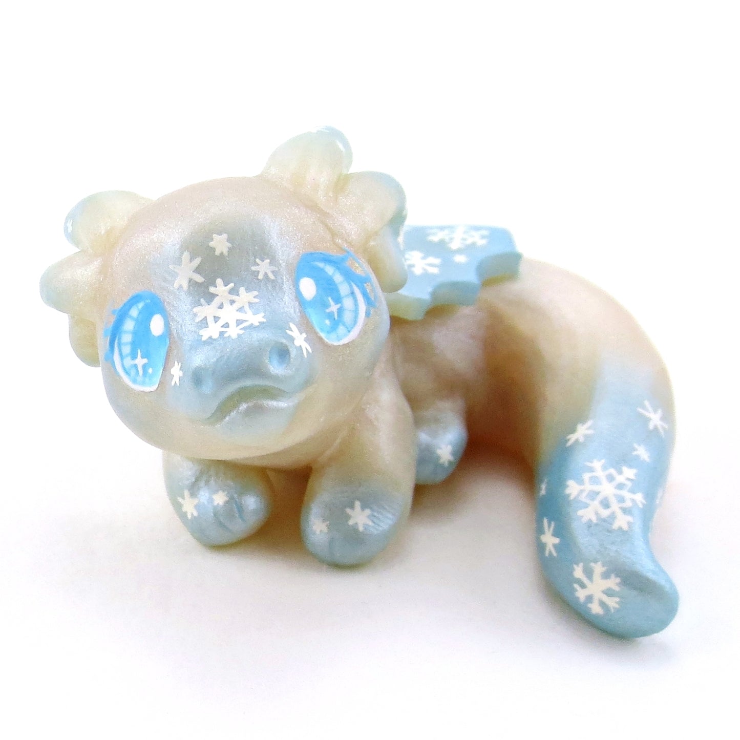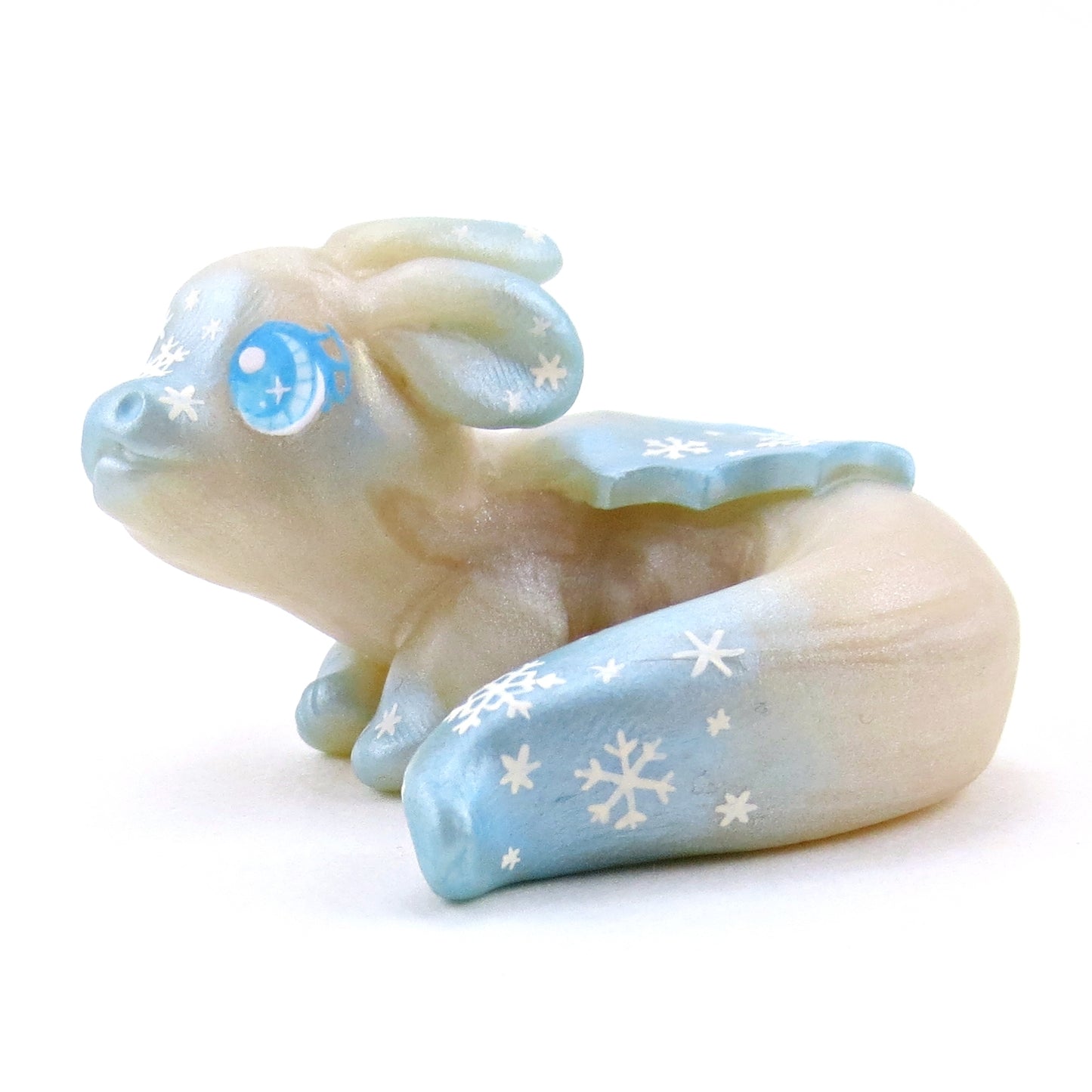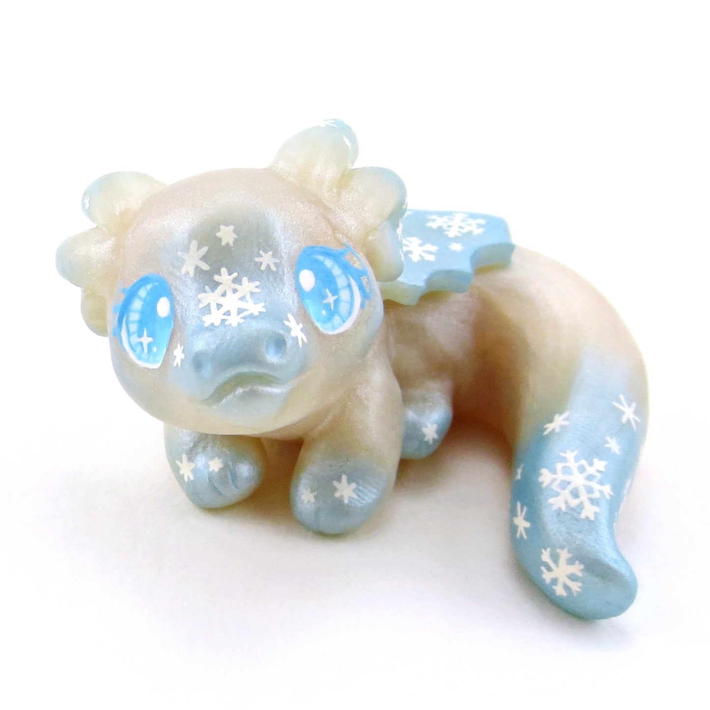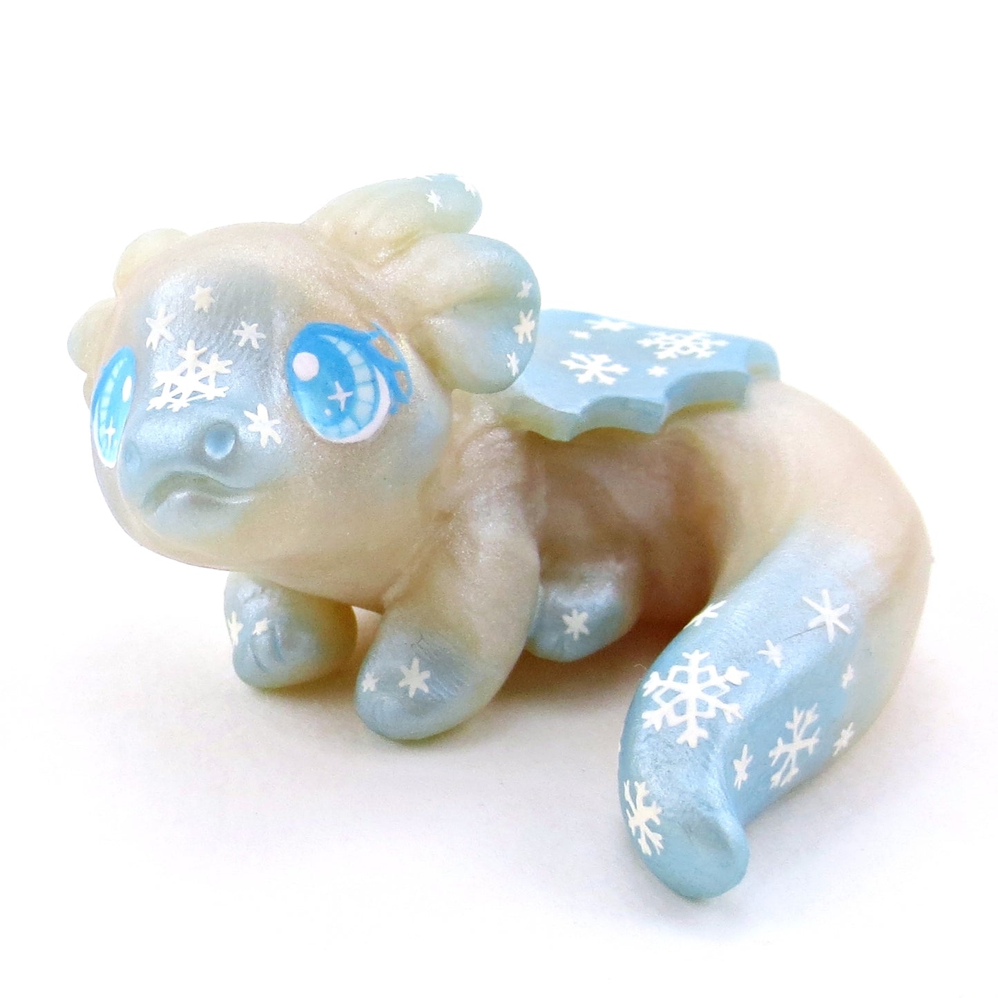 Snowflake Baby Dragon Figurine - Polymer Clay Winter Collection
