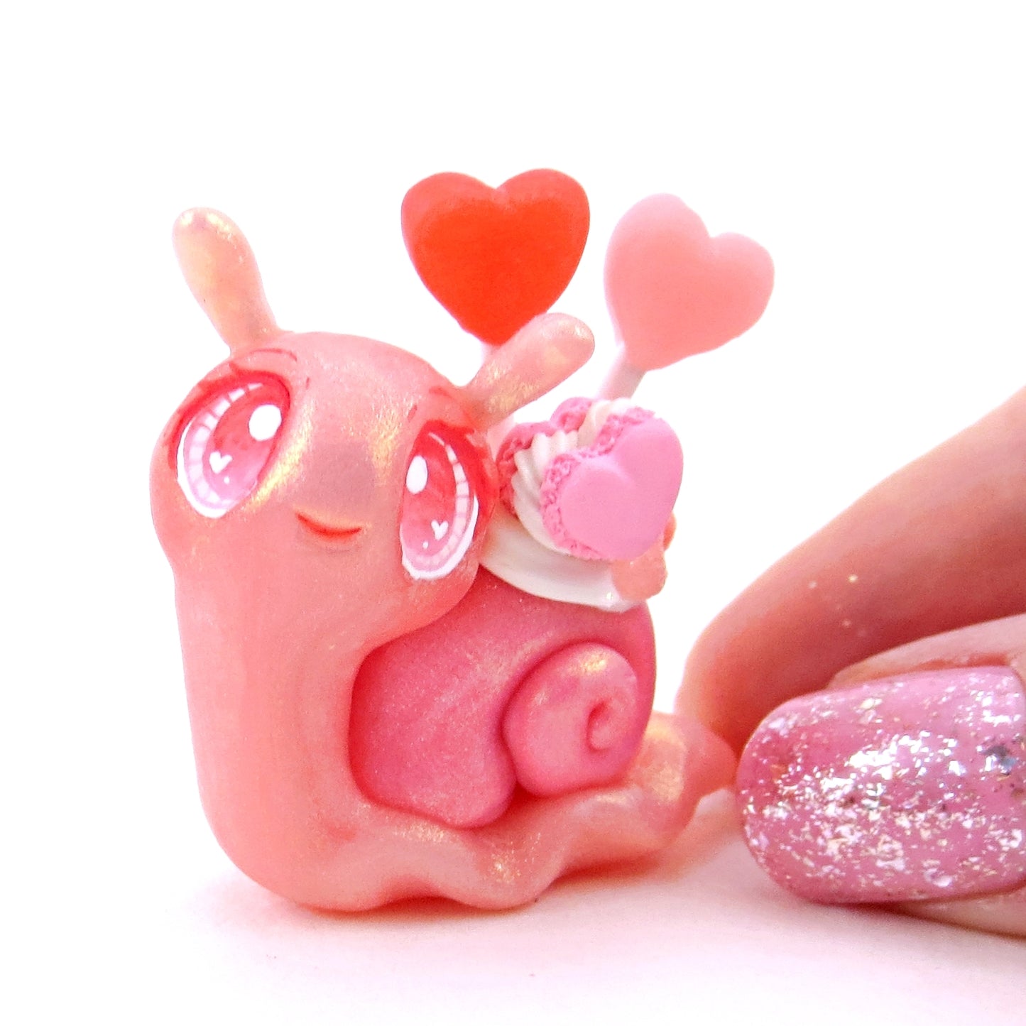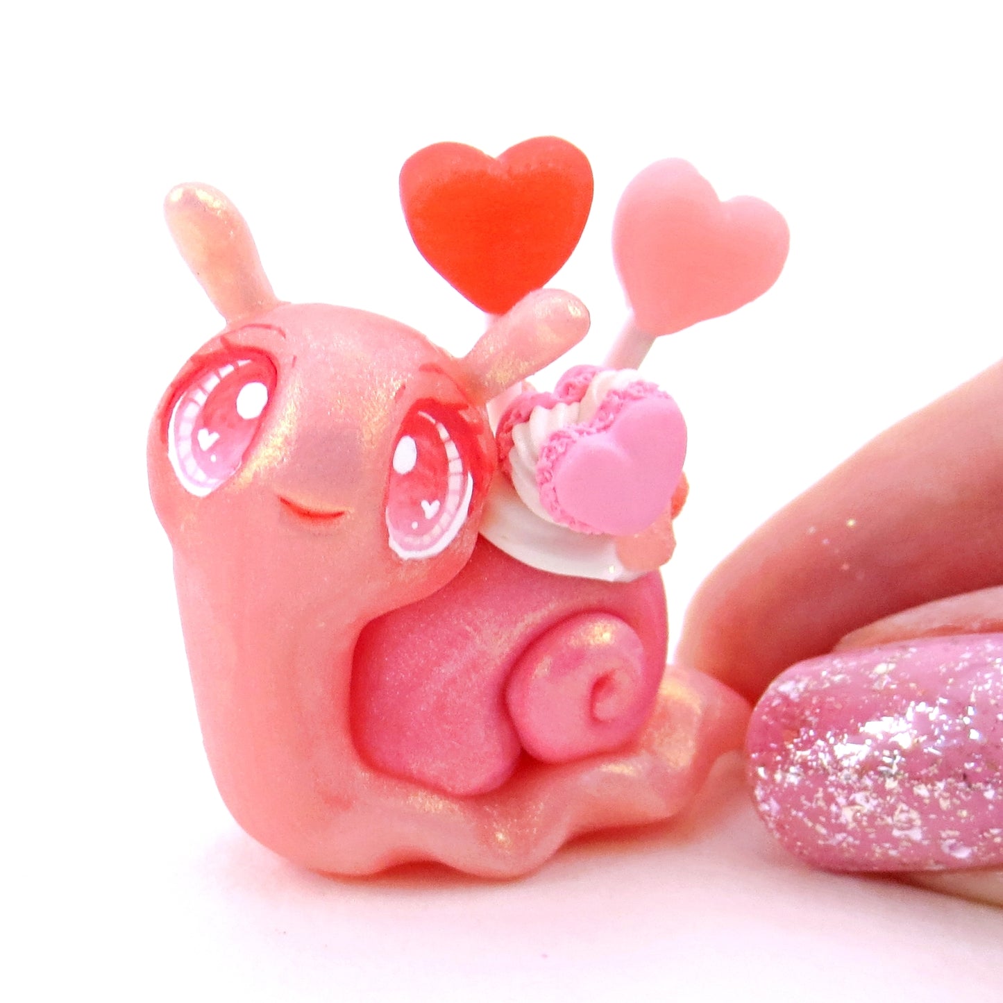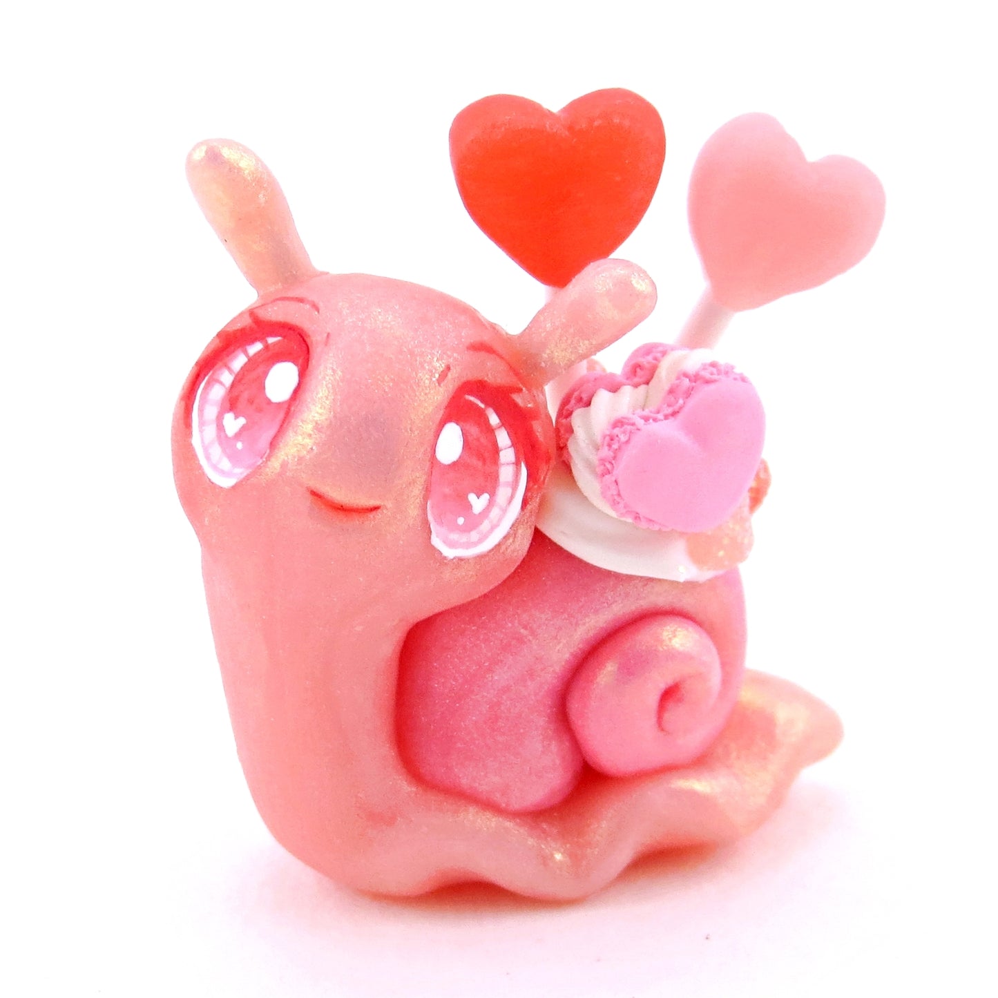 Valentine Macaron Dessert Snail Figurine - Polymer Clay Valentine's Day Animal Collection