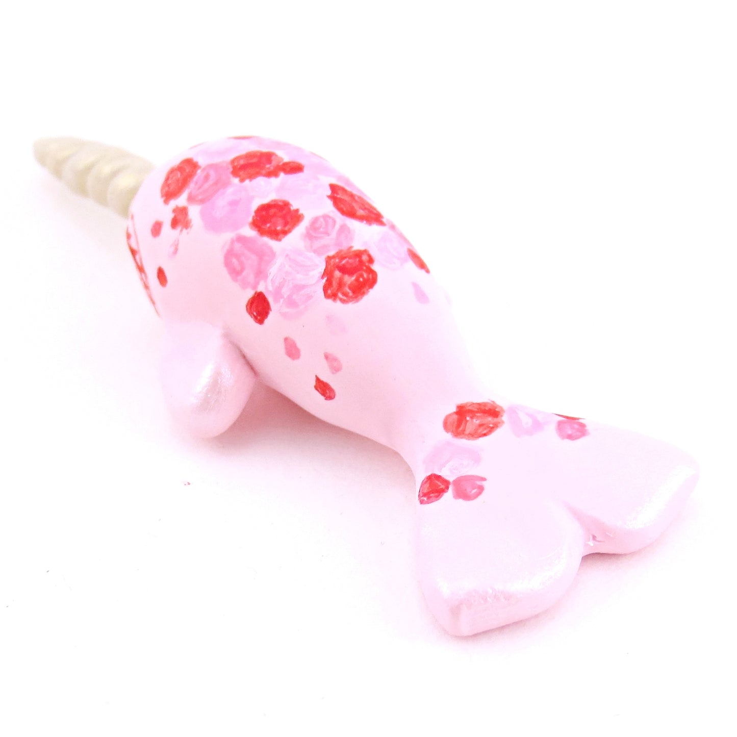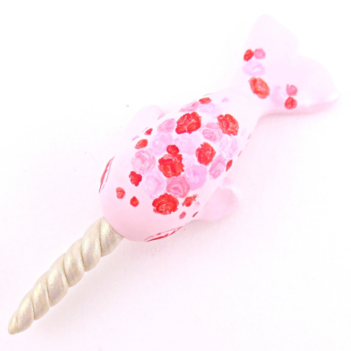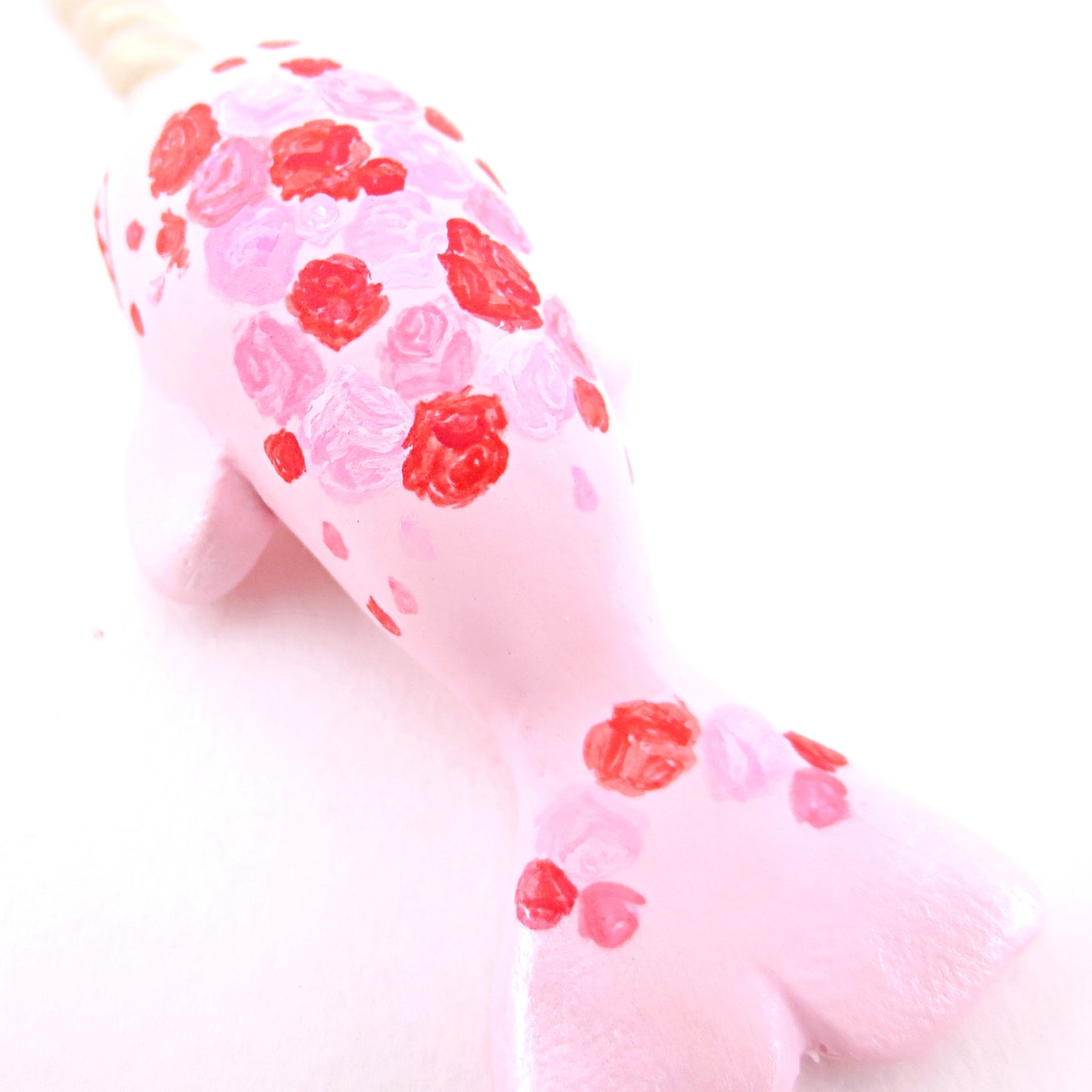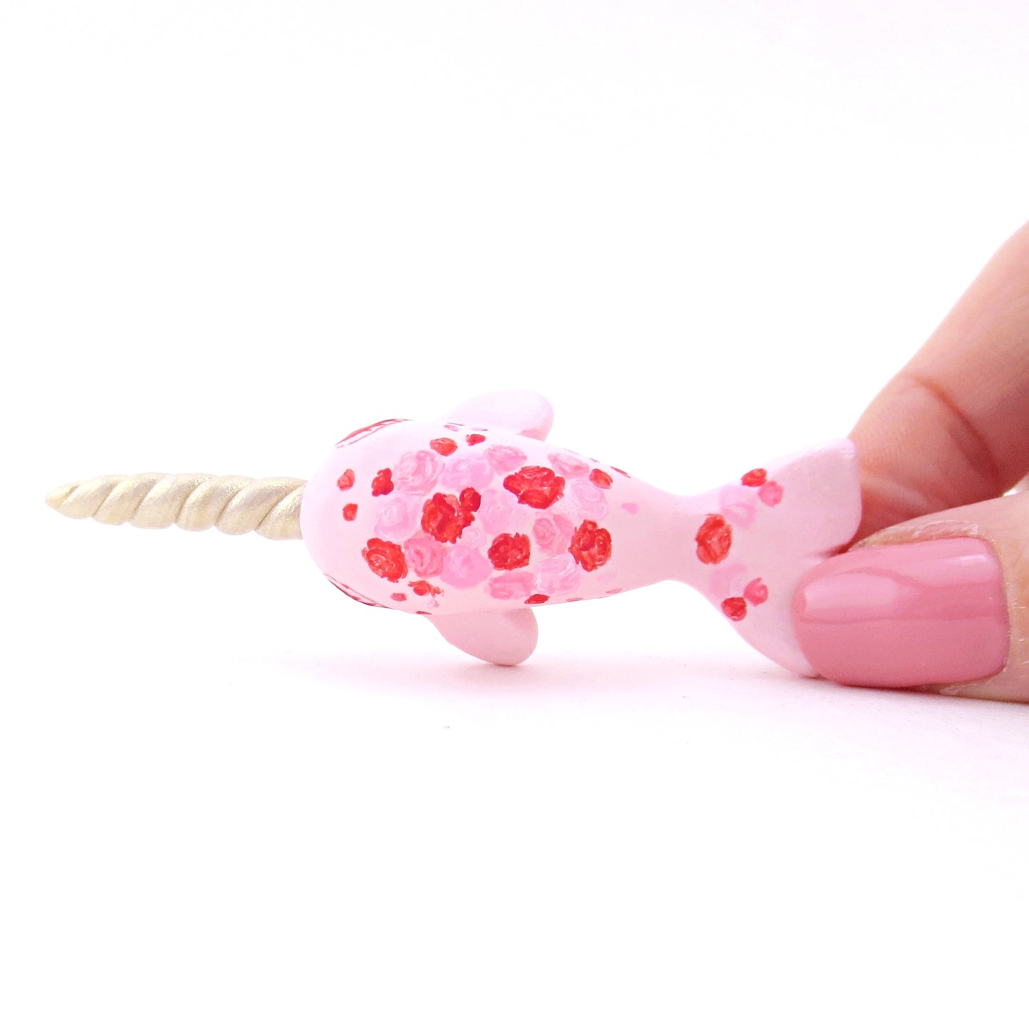 Valentine Roses Narwhal Figurine - Polymer Clay Valentine Animals