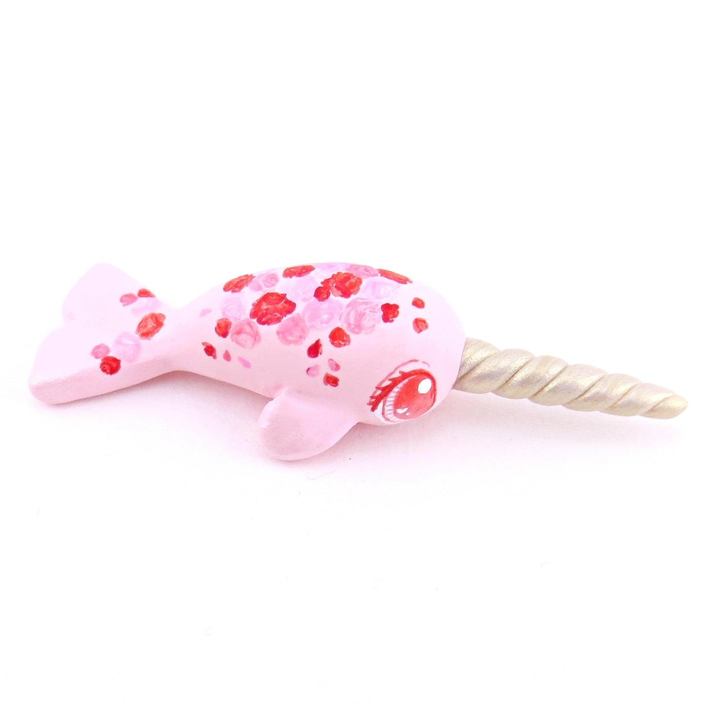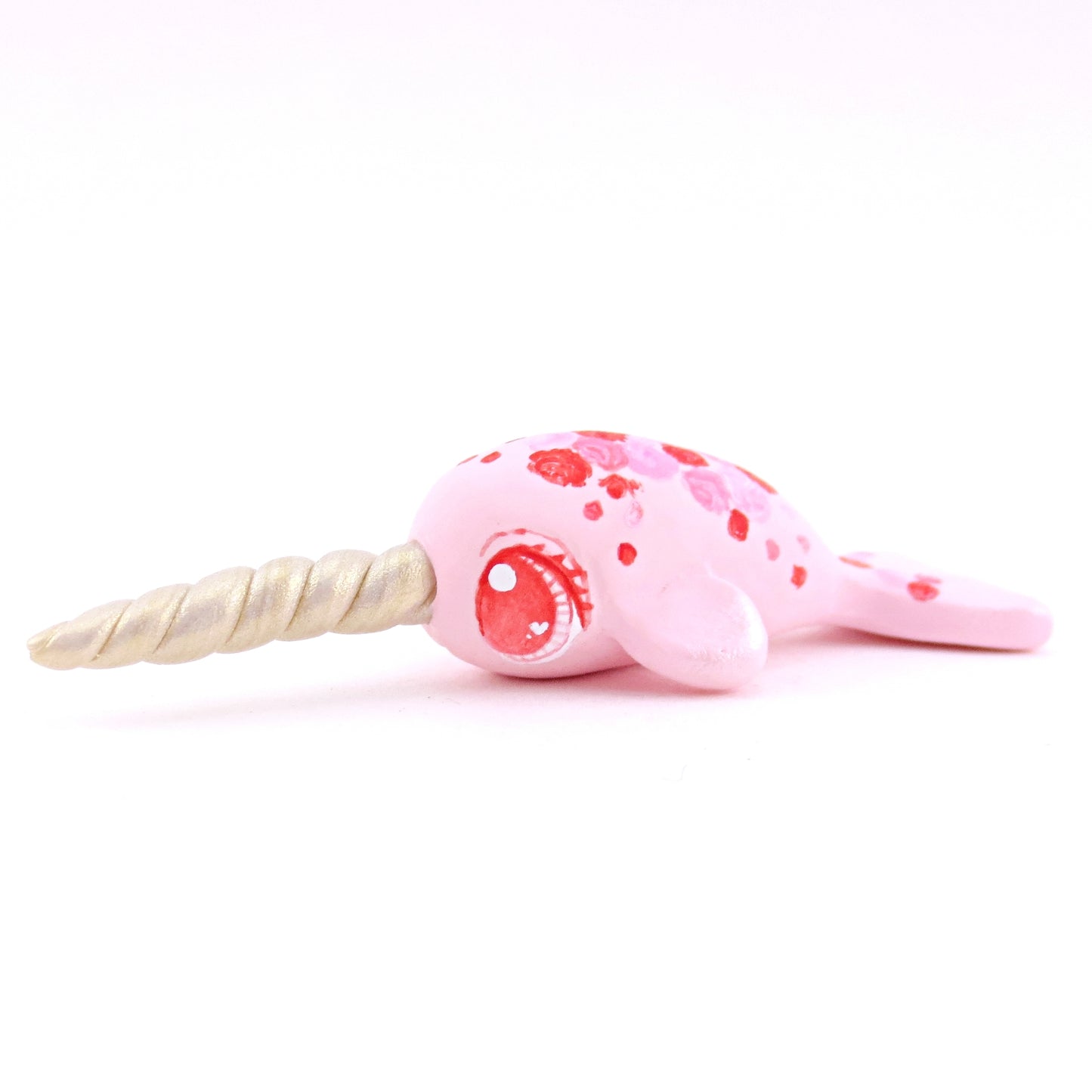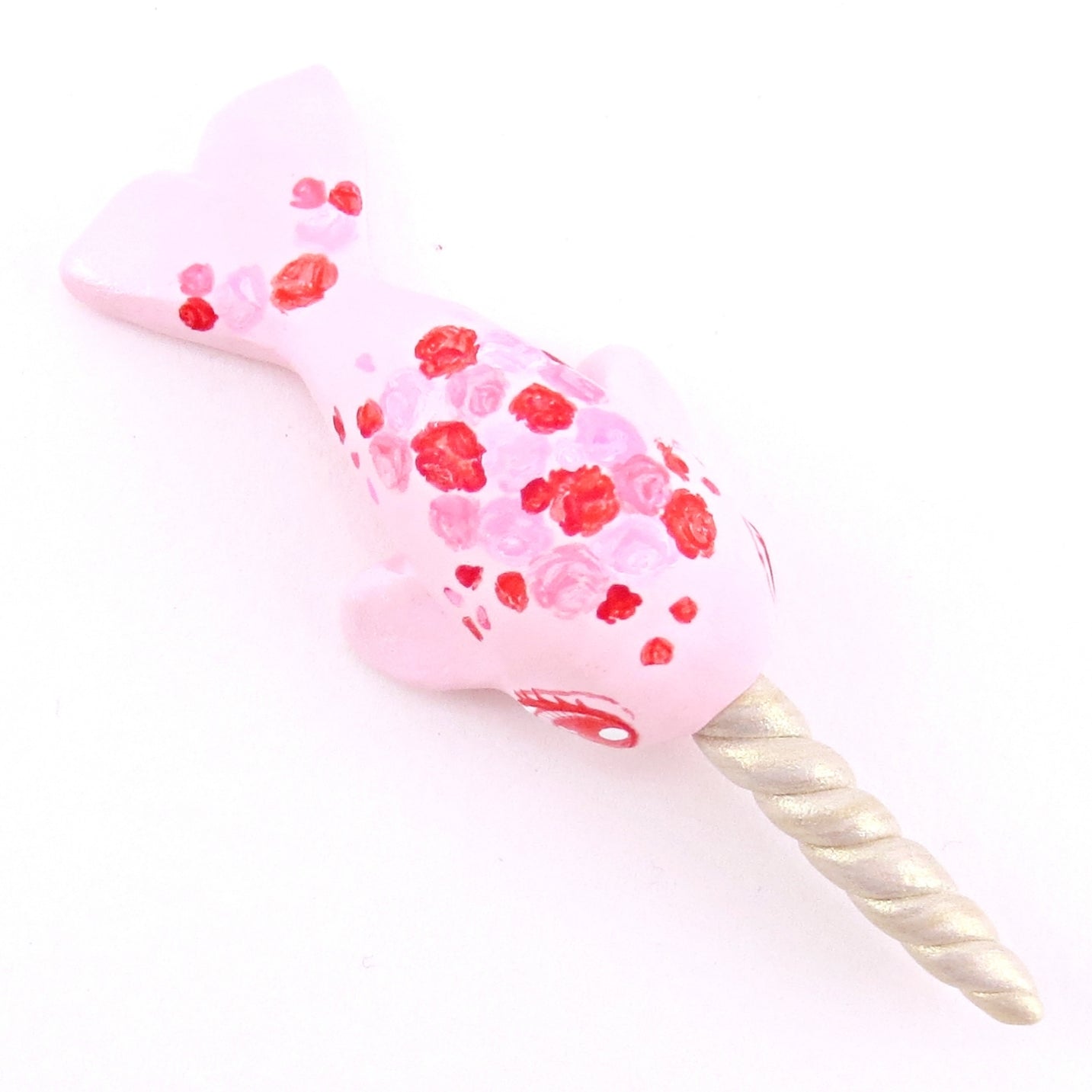 Valentine Roses Narwhal Figurine - Polymer Clay Valentine Animals