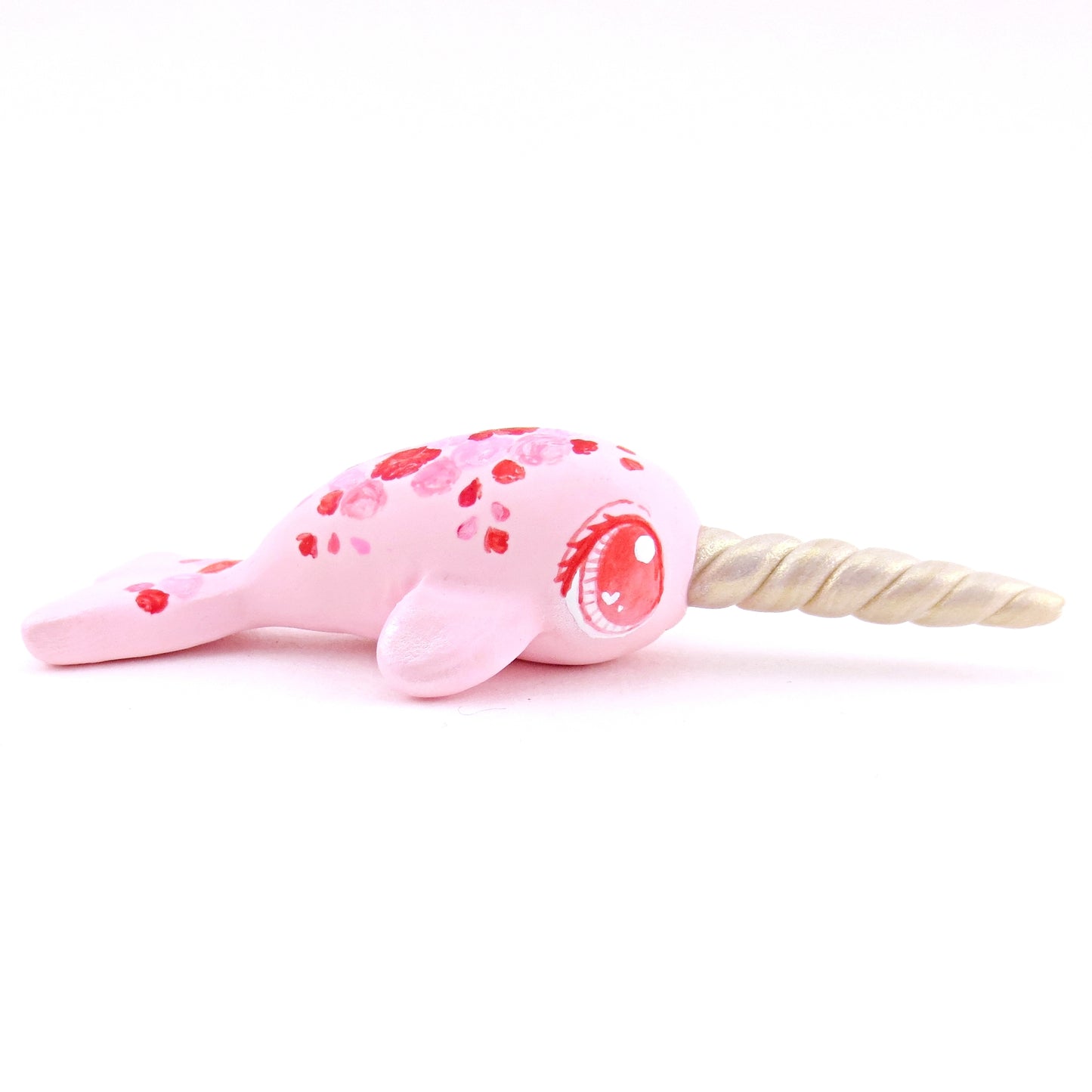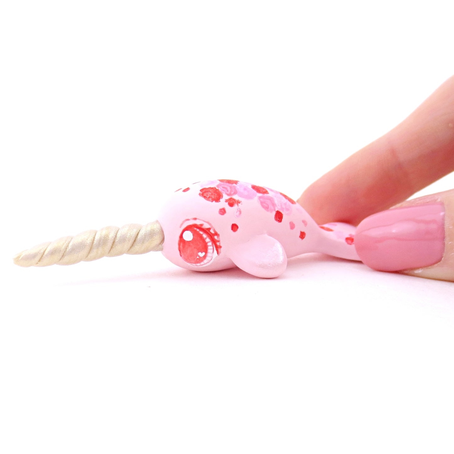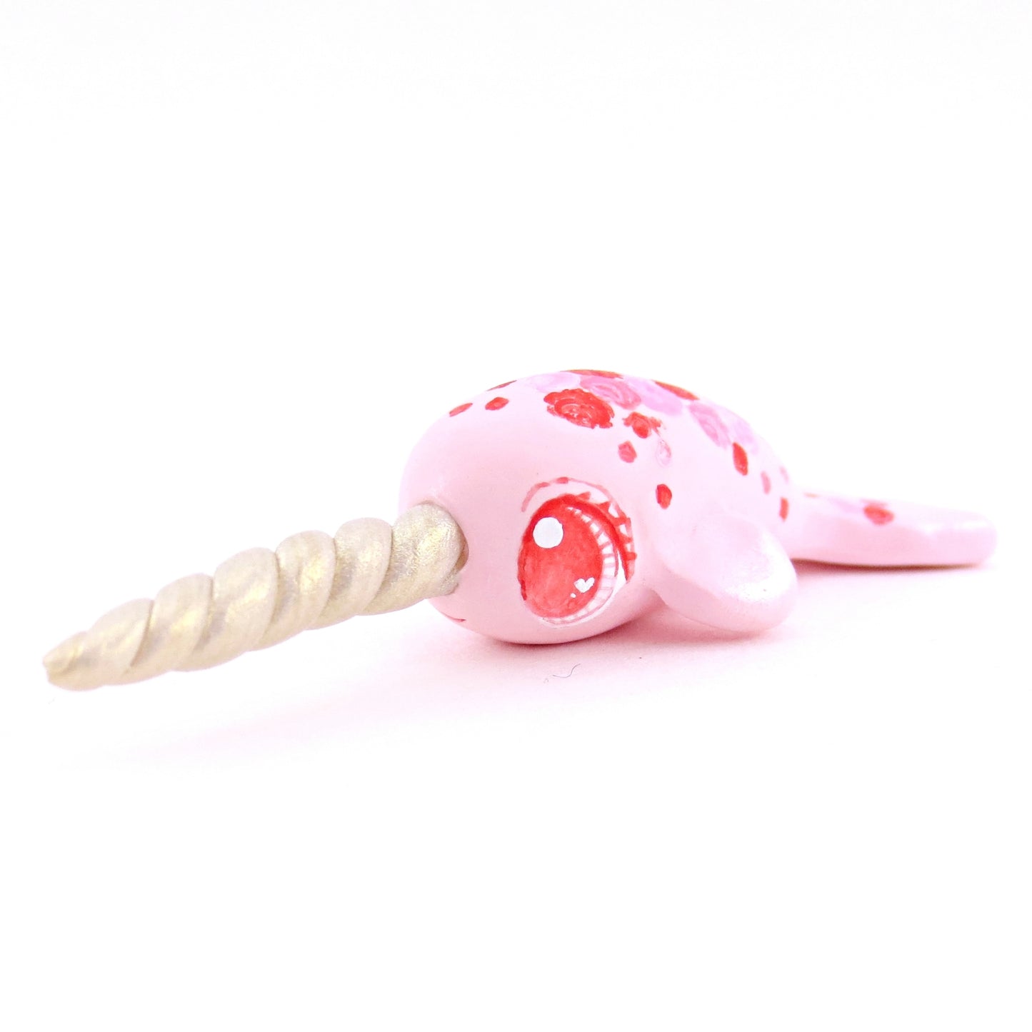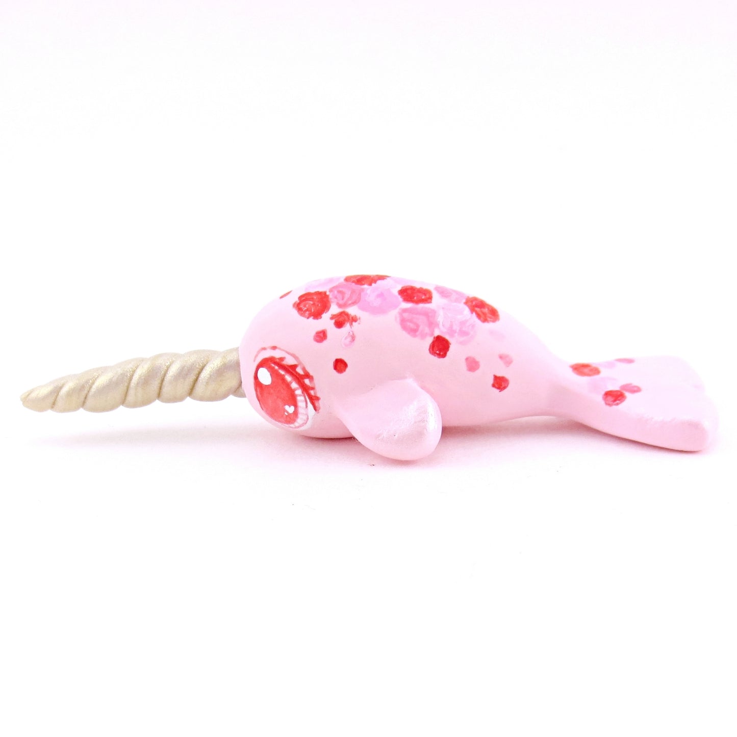 Valentine Roses Narwhal Figurine - Polymer Clay Valentine Animals