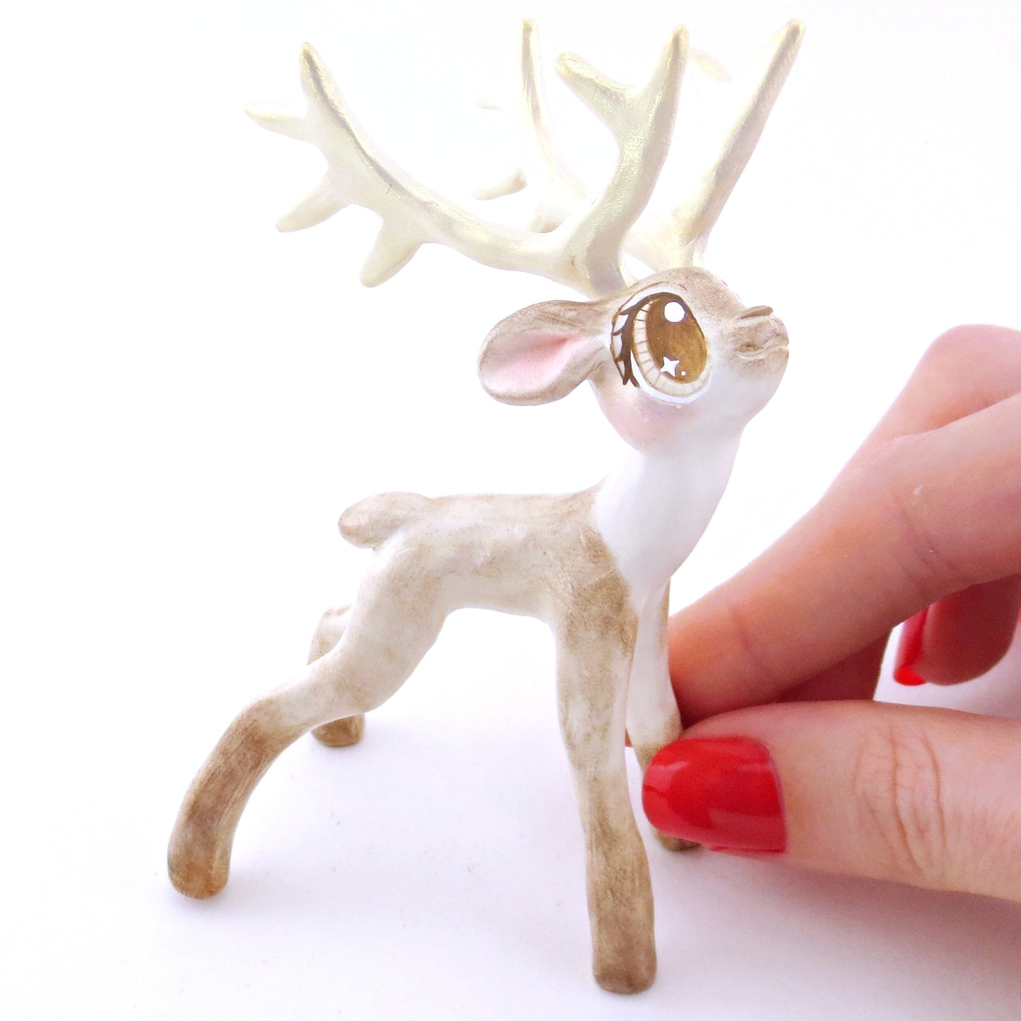 Blitzen - Big-Antlered Reindeer Figurine - Polymer Clay Christmas Animals