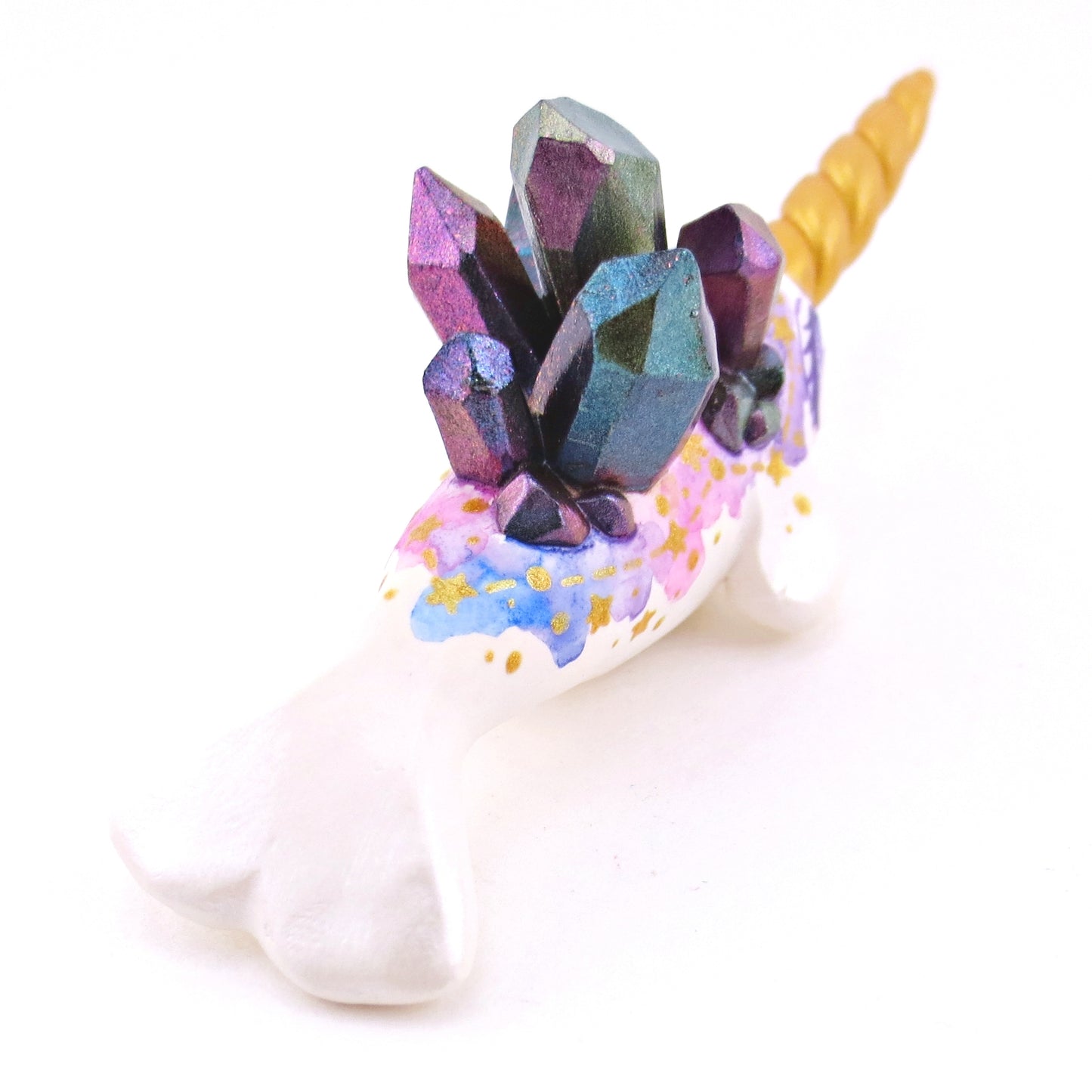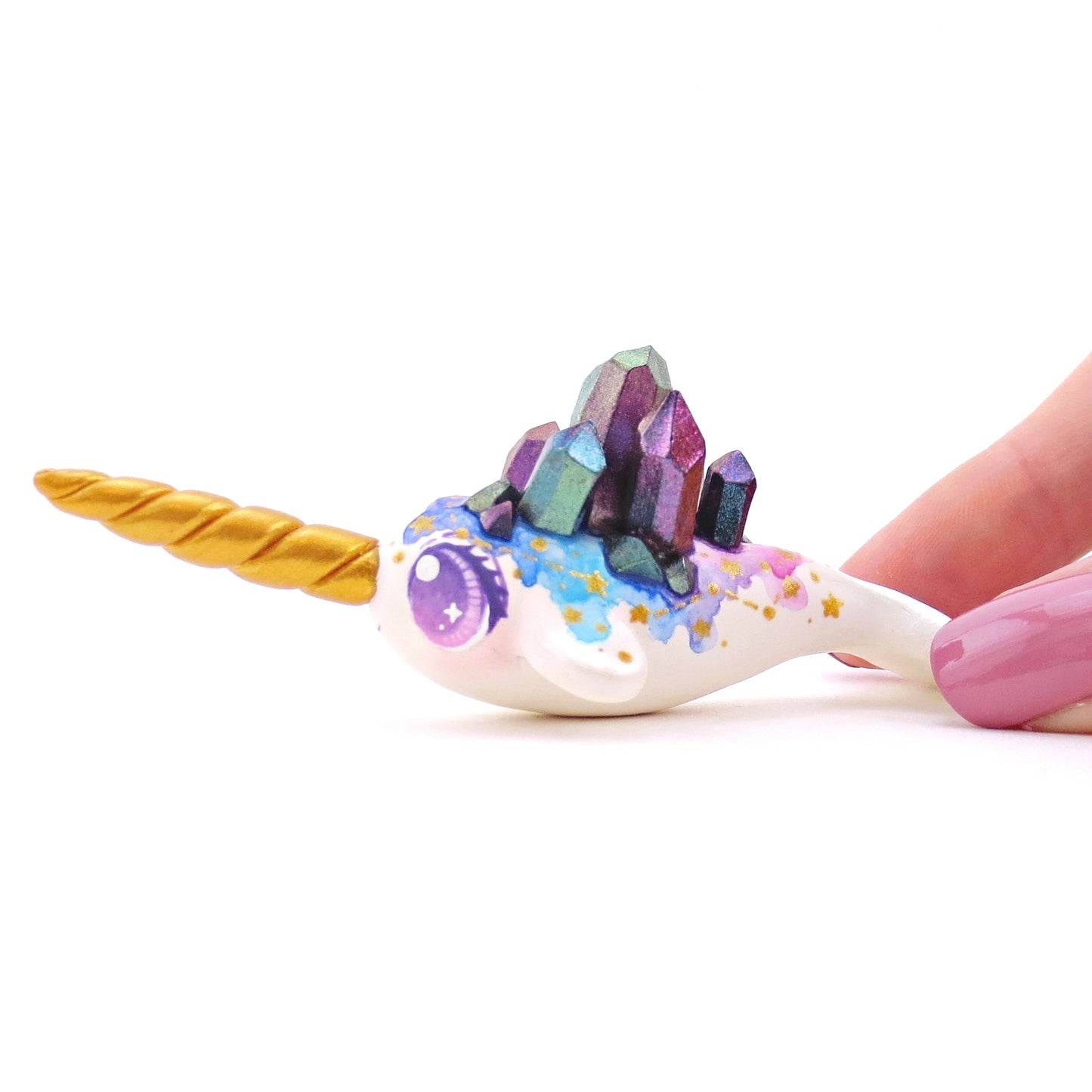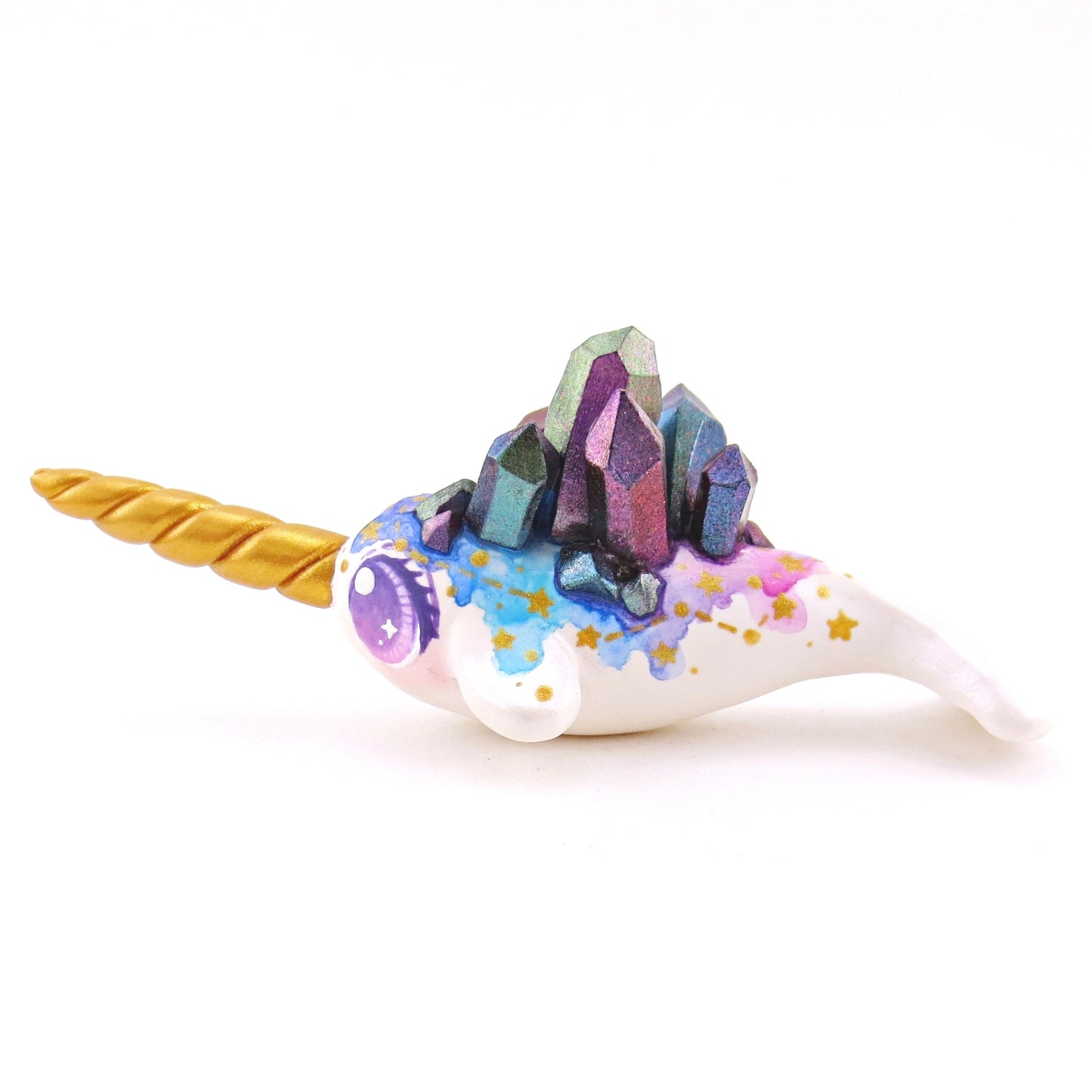 Watercolor Crystal Constellation Narwhal Figurine - Pink/Purple Eyes - Polymer Clay Enchanted Ocean Animals