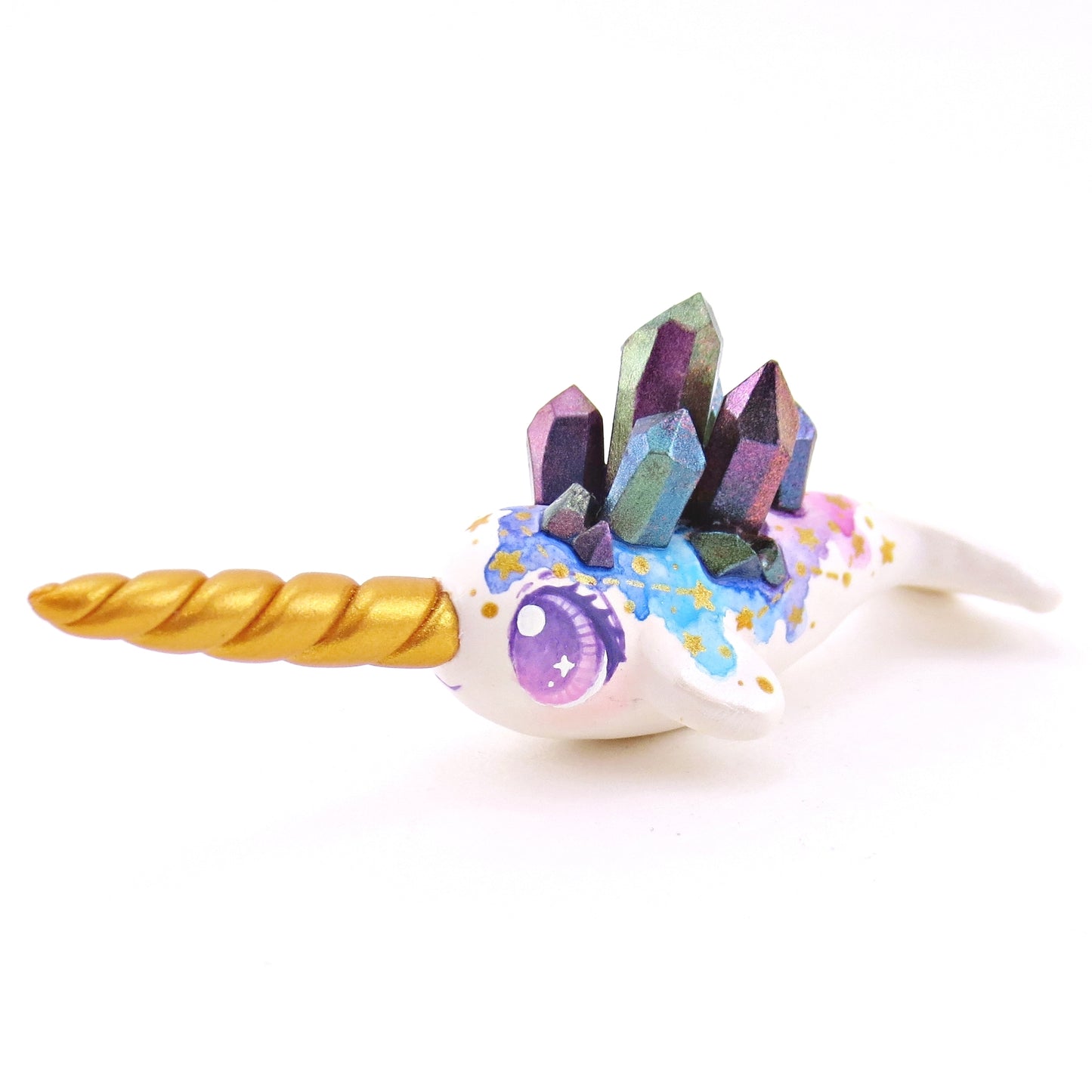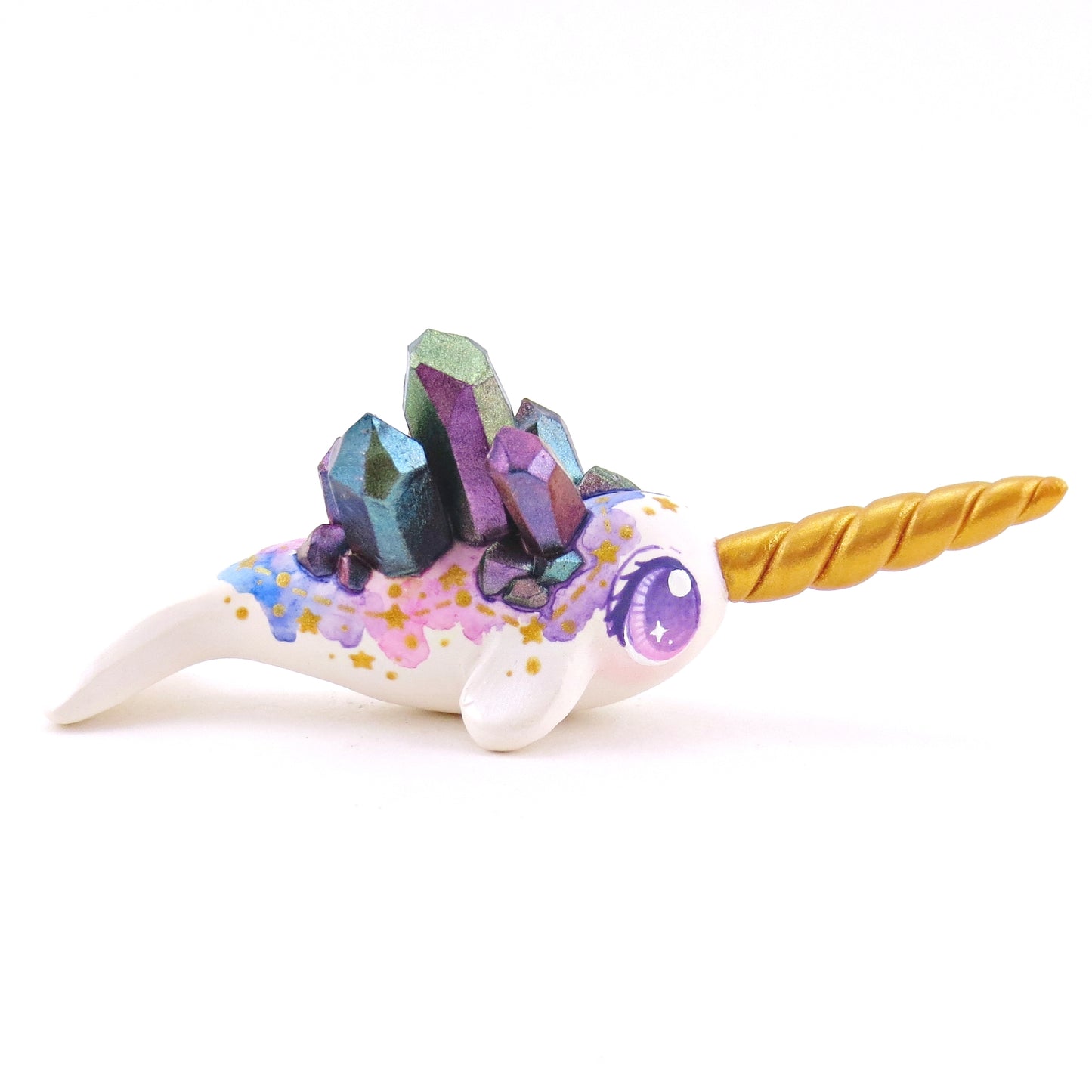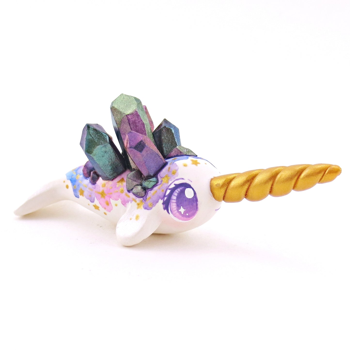 Watercolor Crystal Constellation Narwhal Figurine - Pink/Purple Eyes - Polymer Clay Enchanted Ocean Animals