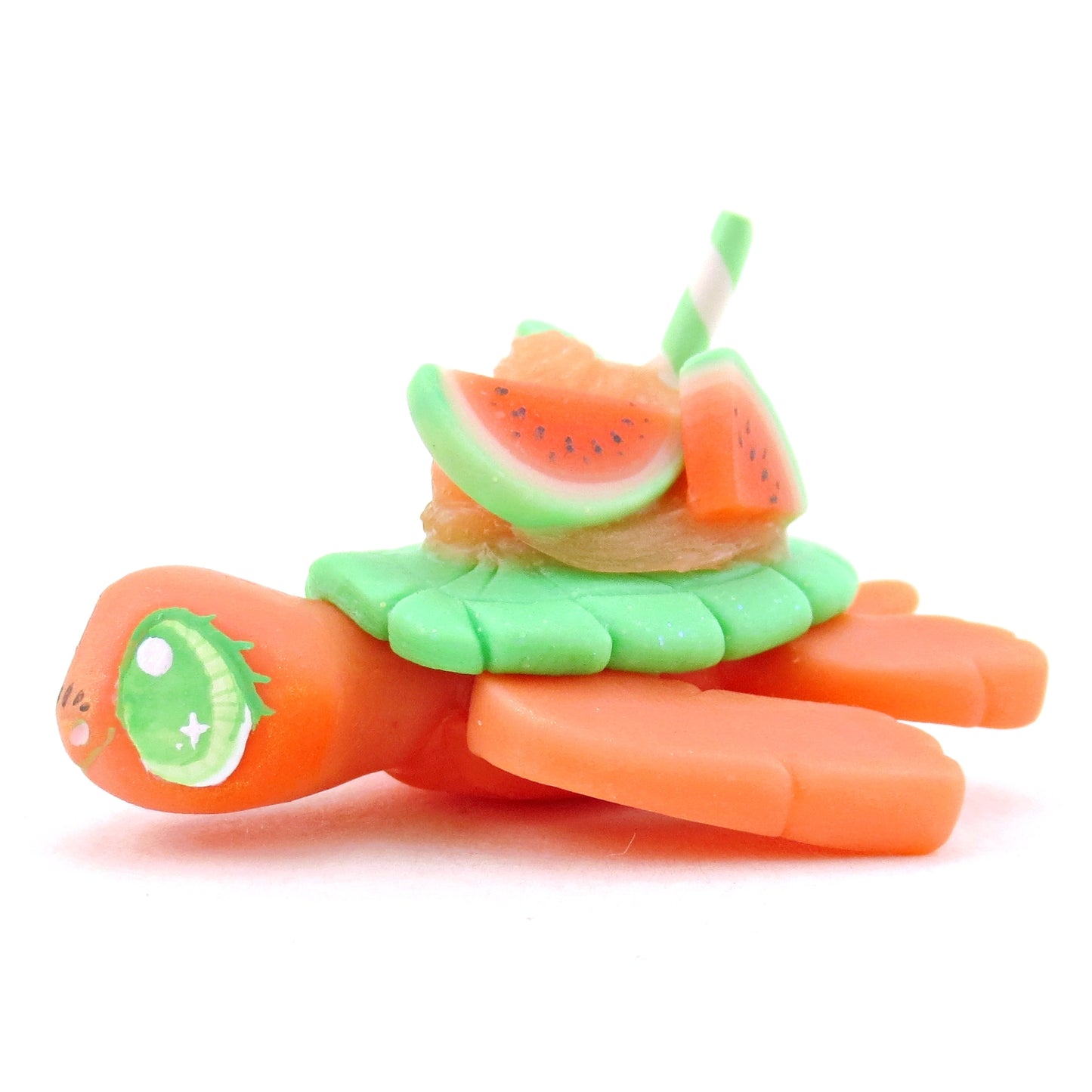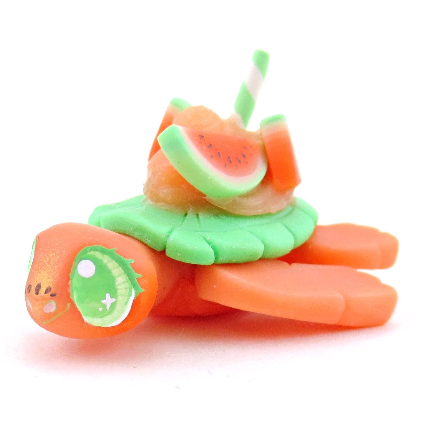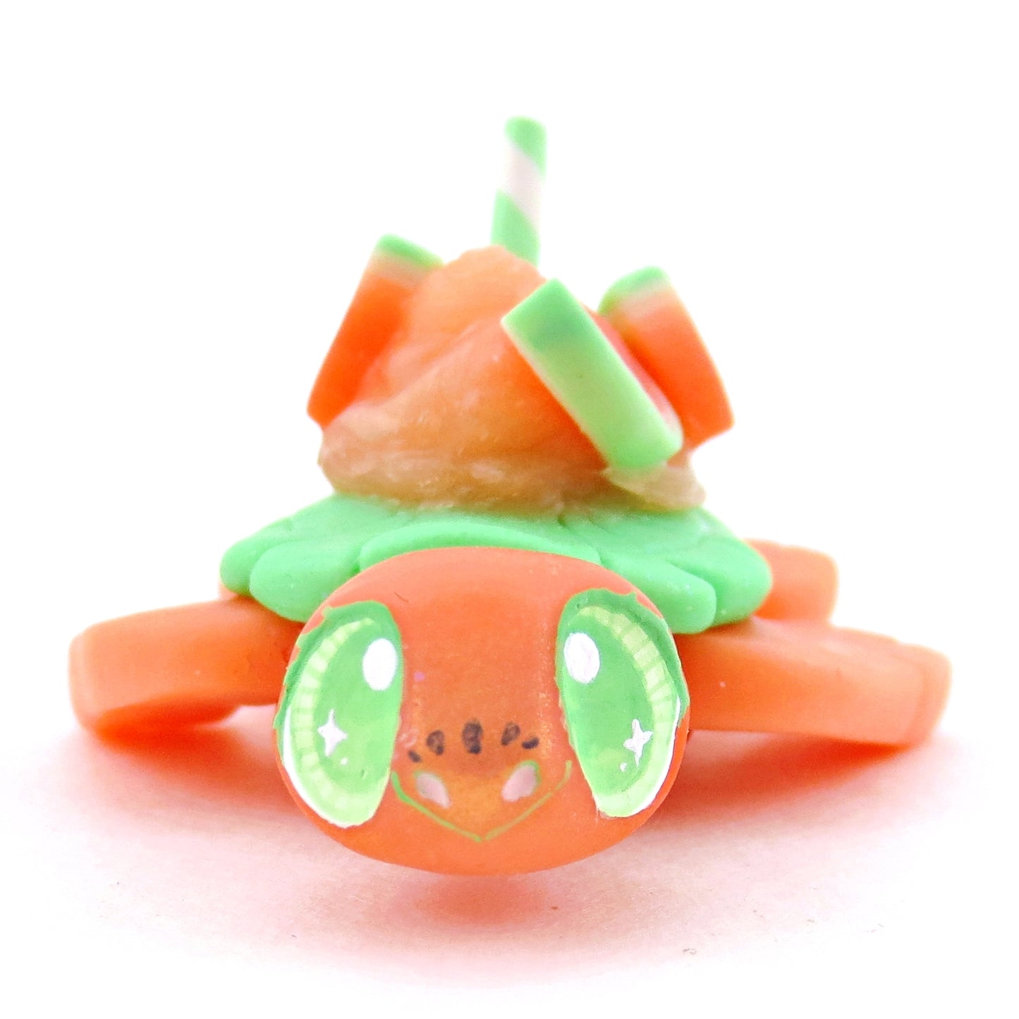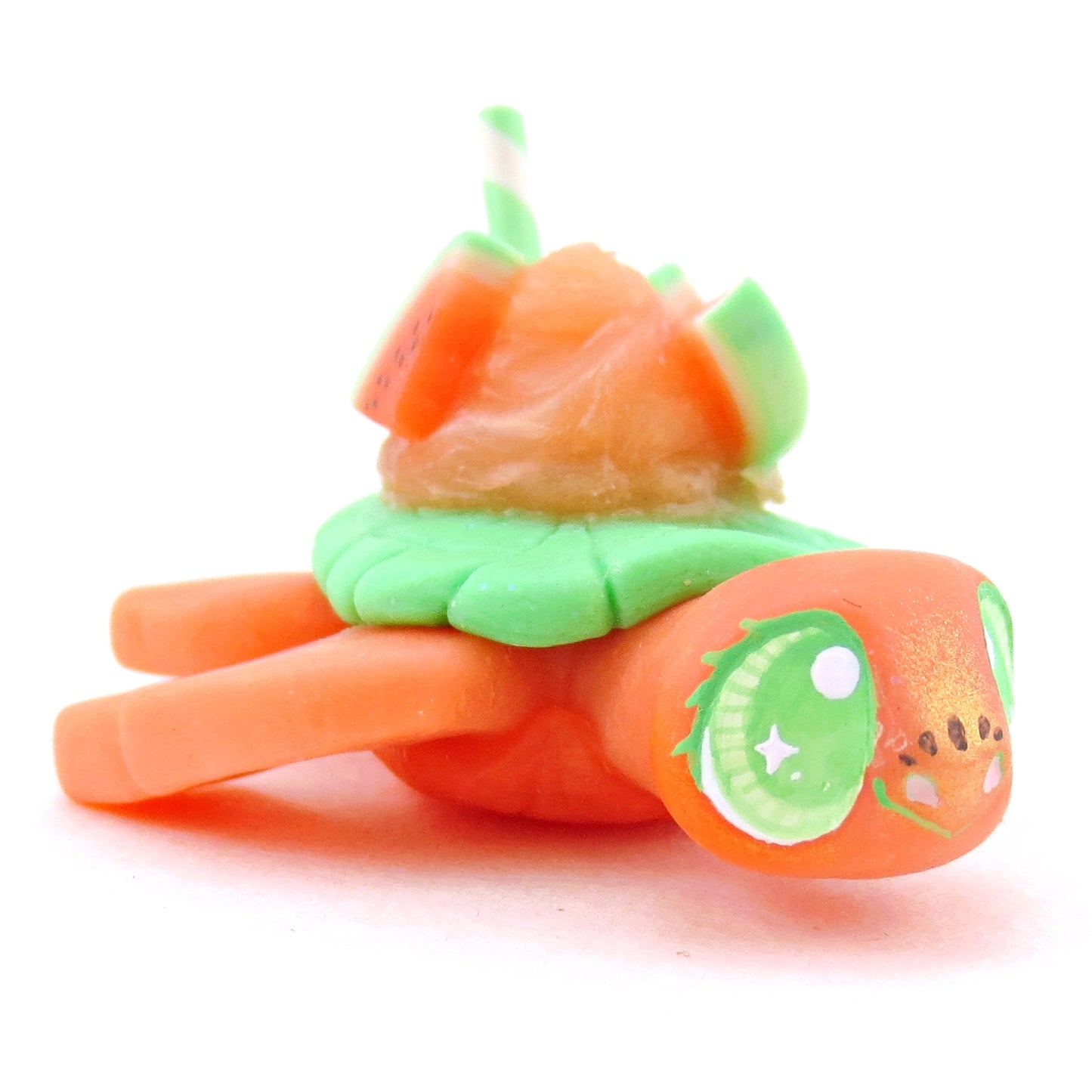Watermelon Smoothie Turtle Figurine - Polymer Clay Food and Dessert Animals